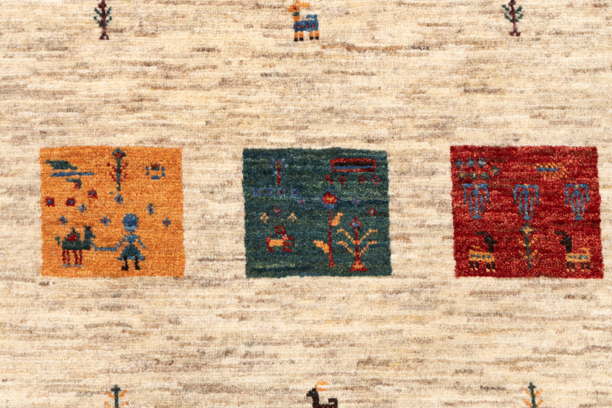 Dit prachtige tapijt is een Perzisch Gabbeh-tapijt en behoort daarom tot de hoogste kwaliteit Gabbeh-tapijten. De tapijten worden geknoopt door nomaden of semi-nomaden in Iran volgens traditioneel vakmanschap. De eenvoudige motieven en patronen zijn vooral geïnspireerd op de directe omgeving van de nomaden. Zo zijn er bijvoorbeeld kamelen, bomen of struiken te vinden op de traditionele tapijten. De Perzische Gabbeh-tapijten zijn gemaakt van wol van lokaal opgefokte kuddes schapen. De wol wordt dus meestal nog met de hand gesponnen. Elk van deze oosterse tapijten belichaamt dus een uniek karakter van de eeuwenoude cultuur.
