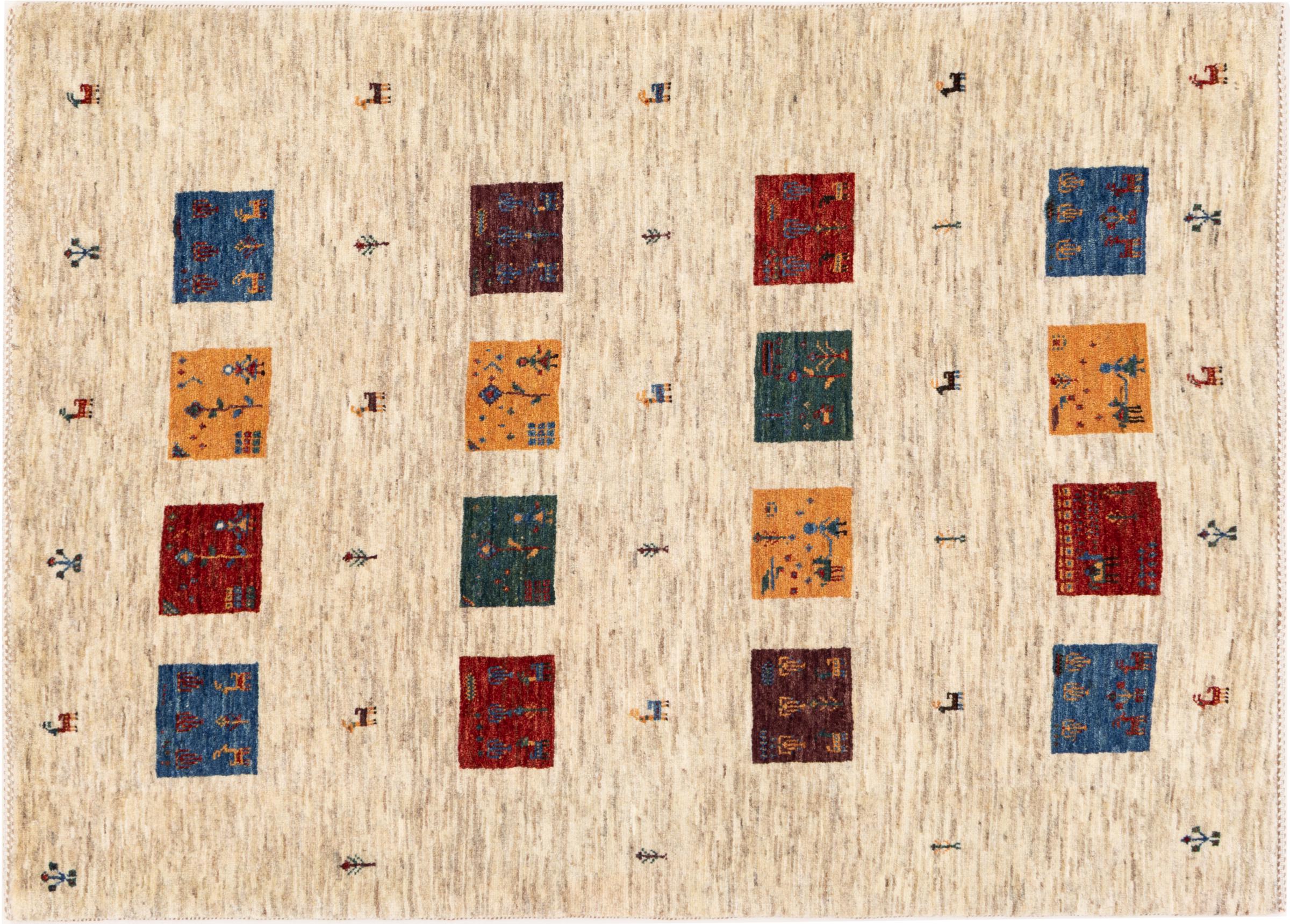 Een verfijning van de al bekende Gabbeh-tapijten: Dit is deze Perzische Gabbeh Loribaft. Het weet indruk te maken met zijn fijnere weefsel en prachtige ontwerp. Het werd door Loren in het zuiden van Perzië met de hand geknoopt van de beste handgesponnen schapenwol. Voor het verven van de wol worden uitsluitend pure plantaardige kleurstoffen gebruikt. Met dit vloerkleed haal je de hoogste standaard van een Gabbeh-tapijt in huis.