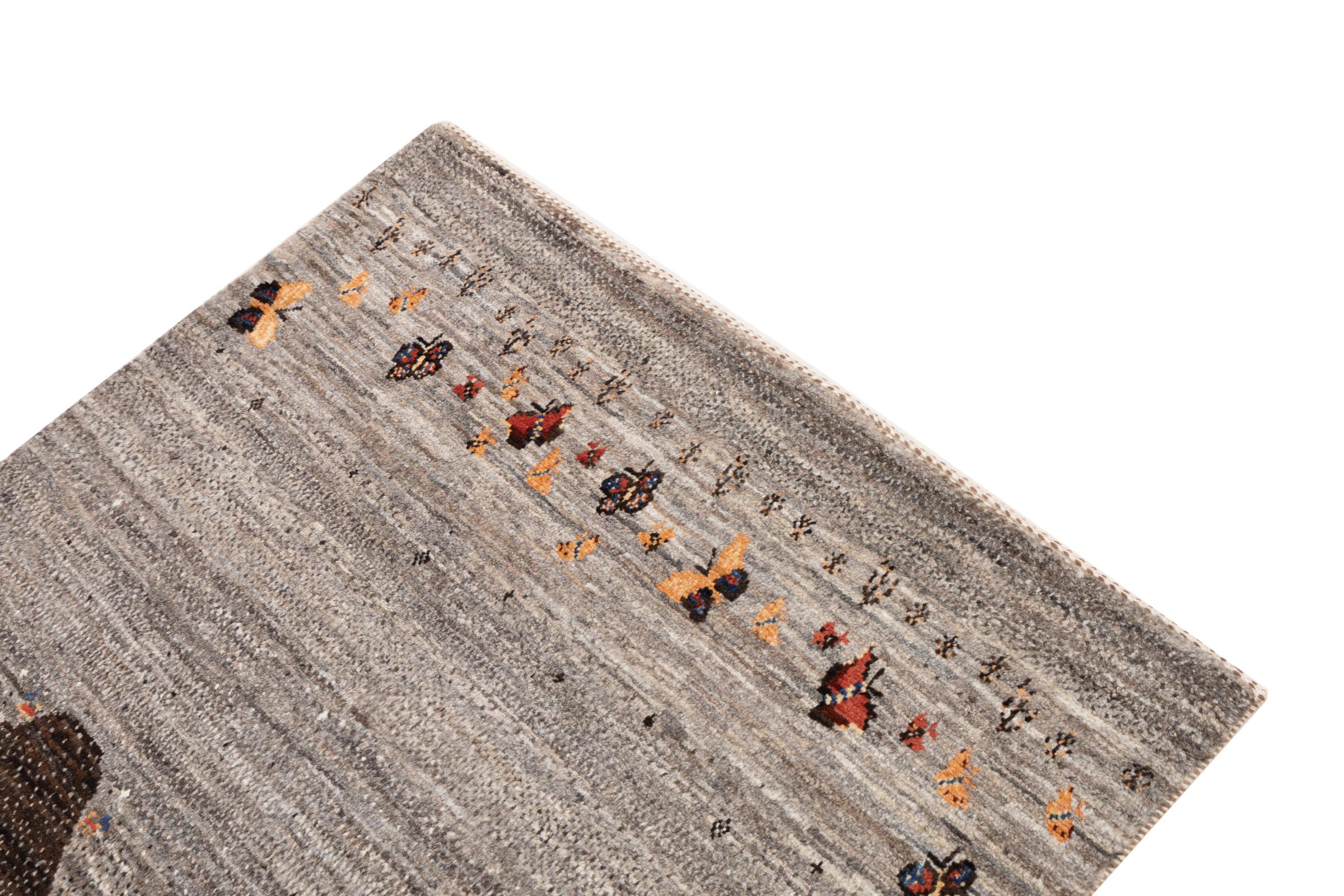 Dit prachtige tapijt is een Perzisch Gabbeh-tapijt en behoort daarom tot de hoogste kwaliteit Gabbeh-tapijten. De tapijten worden geknoopt door nomaden of semi-nomaden in Iran volgens traditioneel vakmanschap. De eenvoudige motieven en patronen zijn vooral geïnspireerd op de directe omgeving van de nomaden. Zo zijn er bijvoorbeeld kamelen, bomen of struiken te vinden op de traditionele tapijten. De Perzische Gabbeh-tapijten zijn gemaakt van wol van lokaal opgefokte kuddes schapen. De wol wordt dus meestal nog met de hand gesponnen. Elk van deze oosterse tapijten belichaamt dus een uniek karakter van de eeuwenoude cultuur.