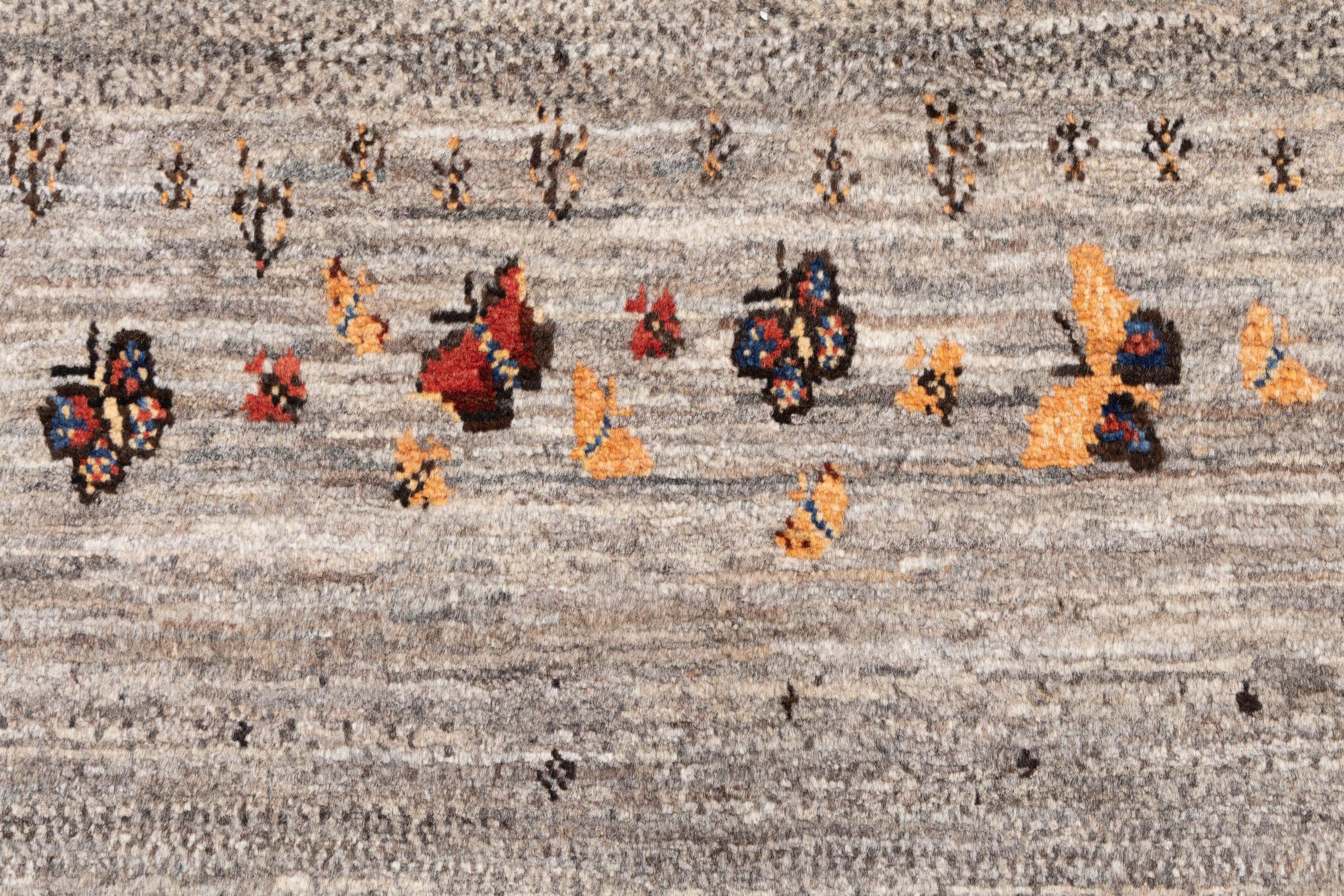 Een verfijning van de al bekende Gabbeh-tapijten: Dit is deze Perzische Gabbeh Loribaft. Het weet indruk te maken met zijn fijnere weefsel en prachtige ontwerp. Het werd door Loren in het zuiden van Perzië met de hand geknoopt van de beste handgesponnen schapenwol. Voor het verven van de wol worden uitsluitend pure plantaardige kleurstoffen gebruikt. Met dit vloerkleed haal je de hoogste standaard van een Gabbeh-tapijt in huis.