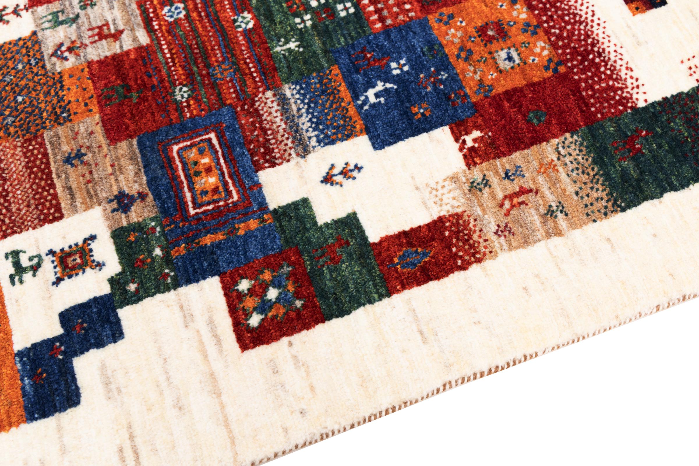 Een verfijning van de al bekende Gabbeh-tapijten: Dit is deze Perzische Gabbeh Loribaft. Het weet indruk te maken met zijn fijnere weefsel en prachtige ontwerp. Het werd door Loren in het zuiden van Perzië met de hand geknoopt van de beste handgesponnen schapenwol. Voor het verven van de wol worden uitsluitend pure plantaardige kleurstoffen gebruikt. Met dit vloerkleed haal je de hoogste standaard van een Gabbeh-tapijt in huis.