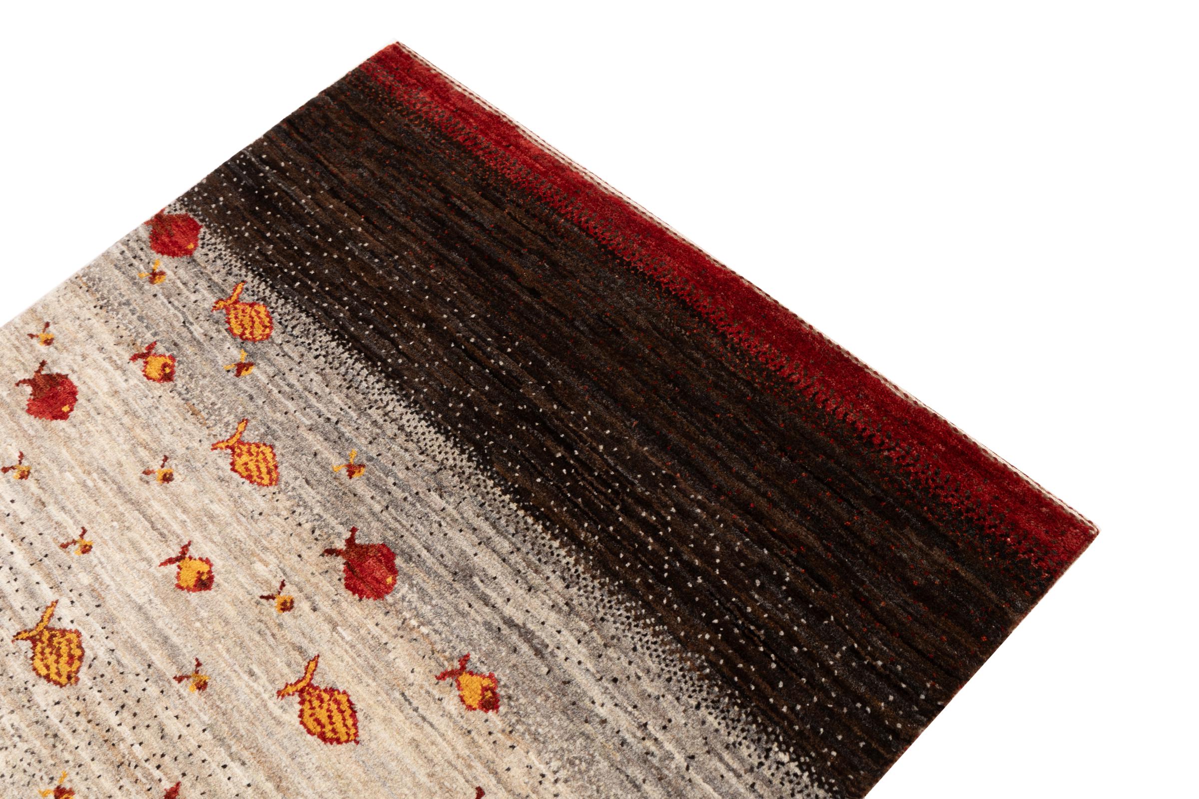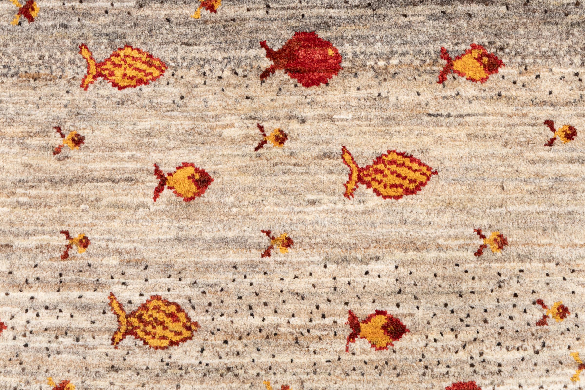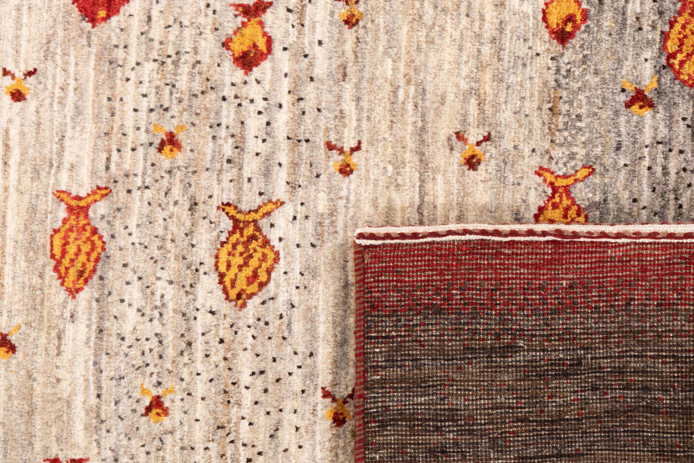 Een verfijning van de al bekende Gabbeh-tapijten: Dit is deze Perzische Gabbeh Loribaft. Het weet indruk te maken met zijn fijnere weefsel en prachtige ontwerp. Het werd door Loren in het zuiden van Perzië met de hand geknoopt van de beste handgesponnen schapenwol. Voor het verven van de wol worden uitsluitend pure plantaardige kleurstoffen gebruikt. Met dit vloerkleed haal je de hoogste standaard van een Gabbeh-tapijt in huis.