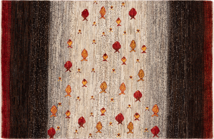 Dit prachtige tapijt is een Perzisch Gabbeh-tapijt en behoort daarom tot de hoogste kwaliteit Gabbeh-tapijten. De tapijten worden geknoopt door nomaden of semi-nomaden in Iran volgens traditioneel vakmanschap. De eenvoudige motieven en patronen zijn vooral geïnspireerd op de directe omgeving van de nomaden. Zo zijn er bijvoorbeeld kamelen, bomen of struiken te vinden op de traditionele tapijten. De Perzische Gabbeh-tapijten zijn gemaakt van wol van lokaal opgefokte kuddes schapen. De wol wordt dus meestal nog met de hand gesponnen. Elk van deze oosterse tapijten belichaamt dus een uniek karakter van de eeuwenoude cultuur.