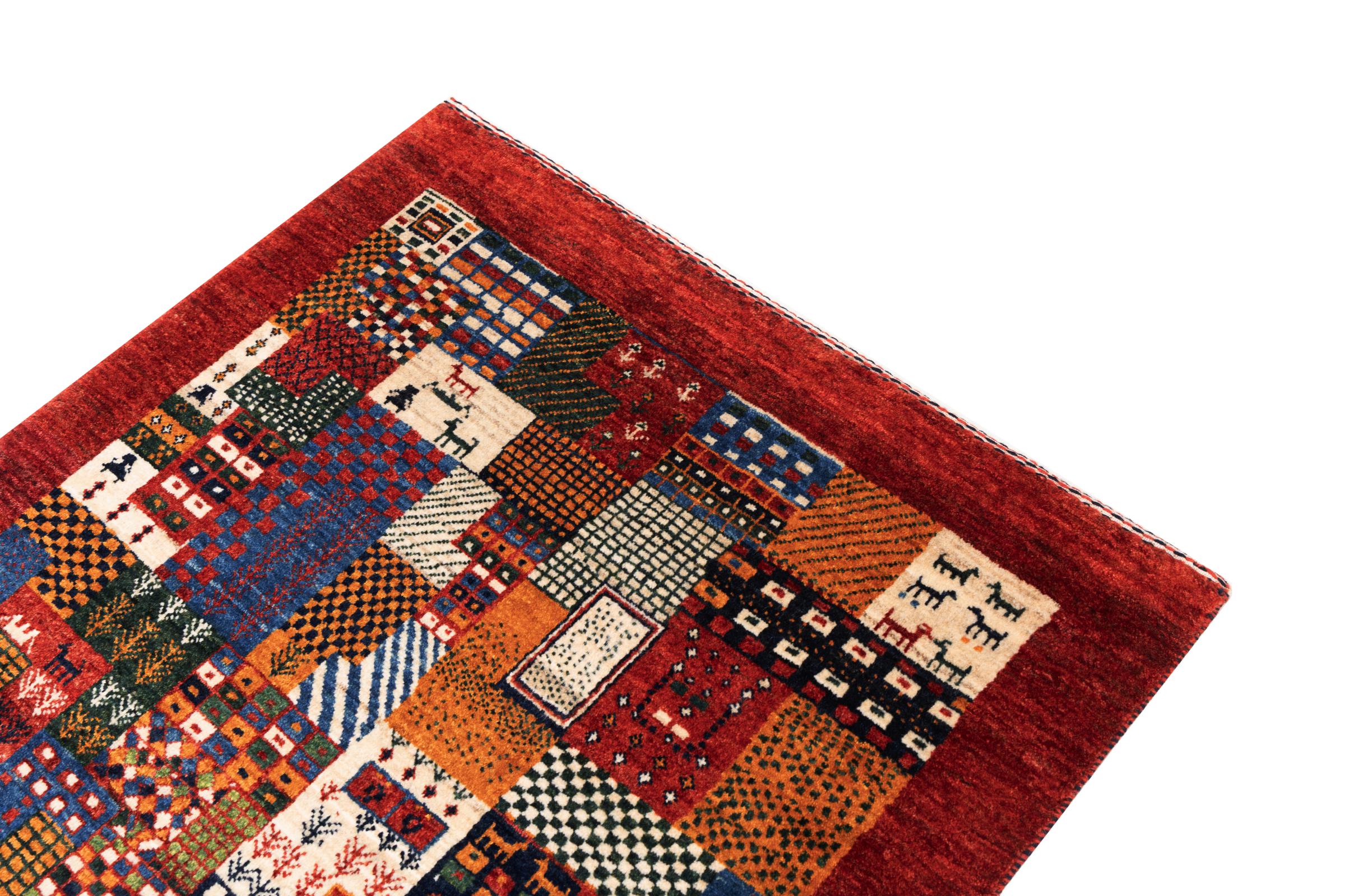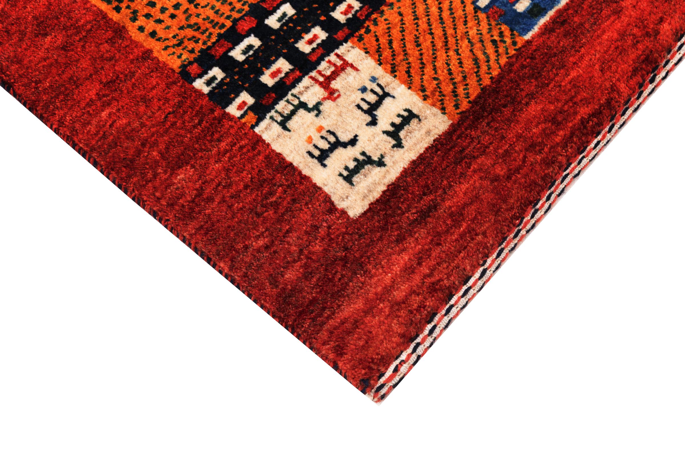 Een verfijning van de al bekende Gabbeh-tapijten: Dit is deze Perzische Gabbeh Loribaft. Het weet indruk te maken met zijn fijnere weefsel en prachtige ontwerp. Het werd door Loren in het zuiden van Perzië met de hand geknoopt van de beste handgesponnen schapenwol. Voor het verven van de wol worden uitsluitend pure plantaardige kleurstoffen gebruikt. Met dit vloerkleed haal je de hoogste standaard van een Gabbeh-tapijt in huis.