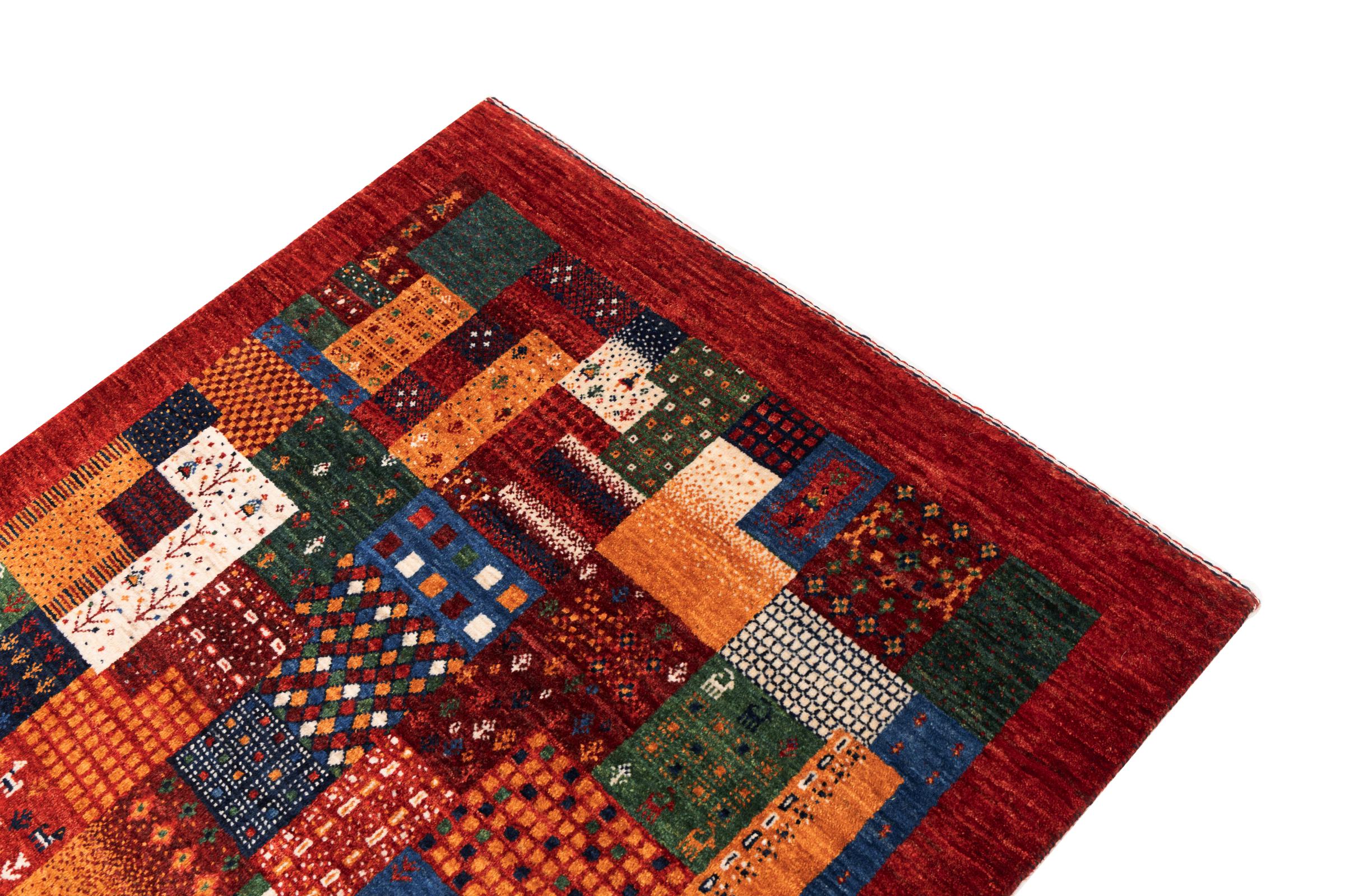 Een verfijning van de al bekende Gabbeh-tapijten: Dit is deze Perzische Gabbeh Loribaft. Het weet indruk te maken met zijn fijnere weefsel en prachtige ontwerp. Het werd door Loren in het zuiden van Perzië met de hand geknoopt van de beste handgesponnen schapenwol. Voor het verven van de wol worden uitsluitend pure plantaardige kleurstoffen gebruikt. Met dit vloerkleed haal je de hoogste standaard van een Gabbeh-tapijt in huis.