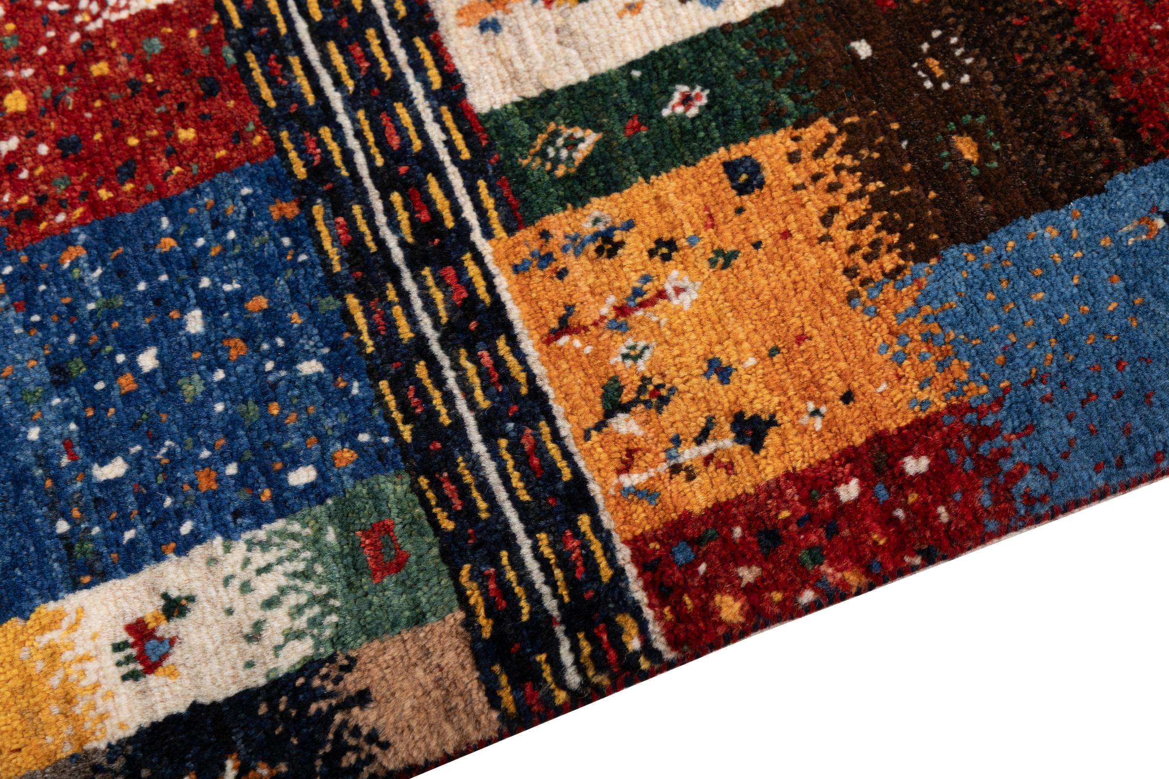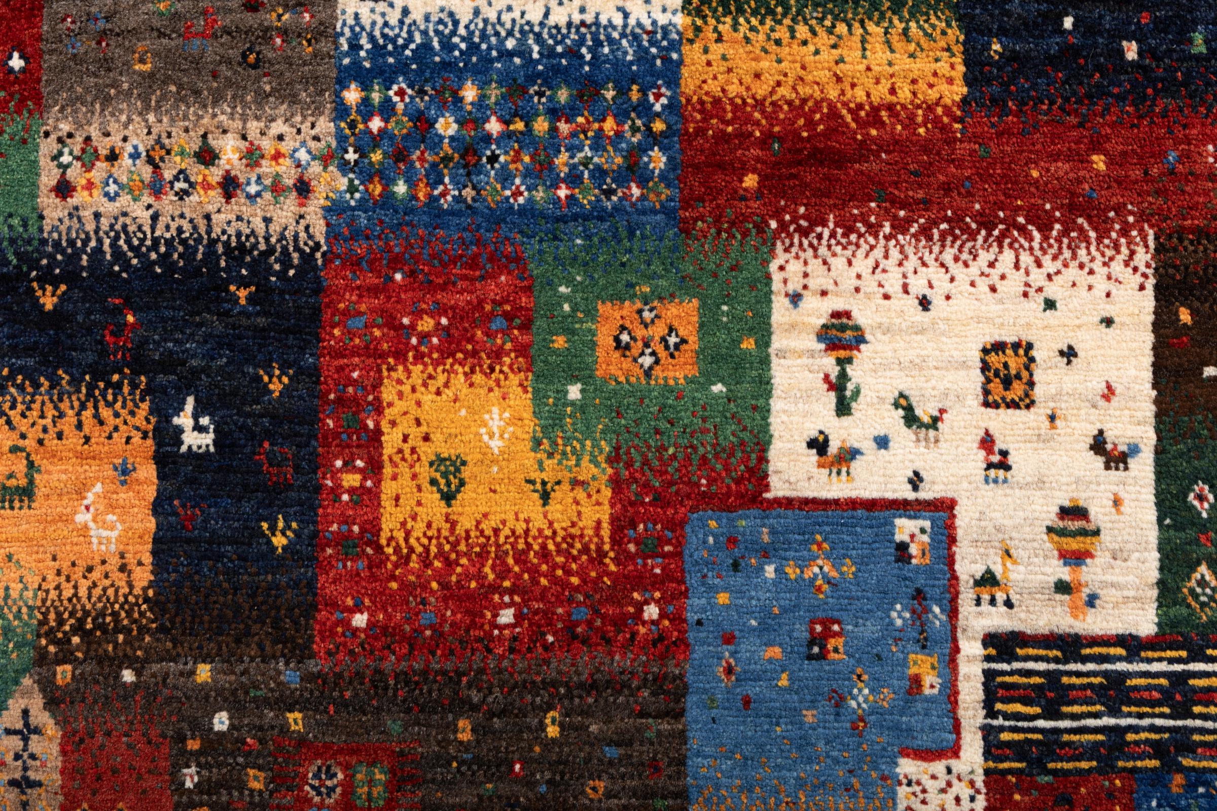 Dit prachtige tapijt is een Perzisch Gabbeh-tapijt en behoort daarom tot de hoogste kwaliteit Gabbeh-tapijten. De tapijten worden geknoopt door nomaden of semi-nomaden in Iran volgens traditioneel vakmanschap. De eenvoudige motieven en patronen zijn vooral geïnspireerd op de directe omgeving van de nomaden. Zo zijn er bijvoorbeeld kamelen, bomen of struiken te vinden op de traditionele tapijten. De Perzische Gabbeh-tapijten zijn gemaakt van wol van lokaal opgefokte kuddes schapen. De wol wordt dus meestal nog met de hand gesponnen. Elk van deze oosterse tapijten belichaamt dus een uniek karakter van de eeuwenoude cultuur.