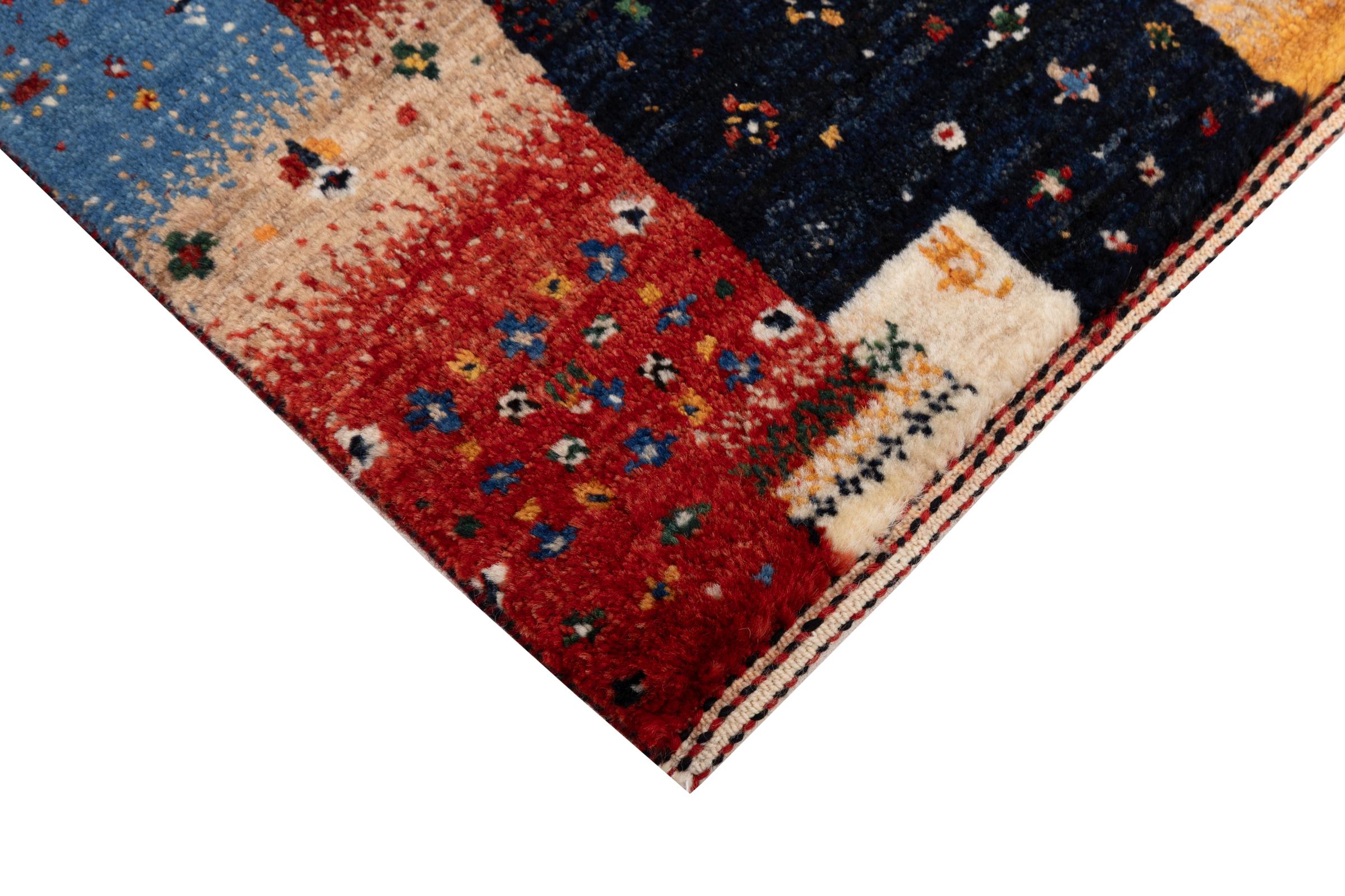 Een verfijning van de al bekende Gabbeh-tapijten: Dit is deze Perzische Gabbeh Loribaft. Het weet indruk te maken met zijn fijnere weefsel en prachtige ontwerp. Het werd door Loren in het zuiden van Perzië met de hand geknoopt van de beste handgesponnen schapenwol. Voor het verven van de wol worden uitsluitend pure plantaardige kleurstoffen gebruikt. Met dit vloerkleed haal je de hoogste standaard van een Gabbeh-tapijt in huis.