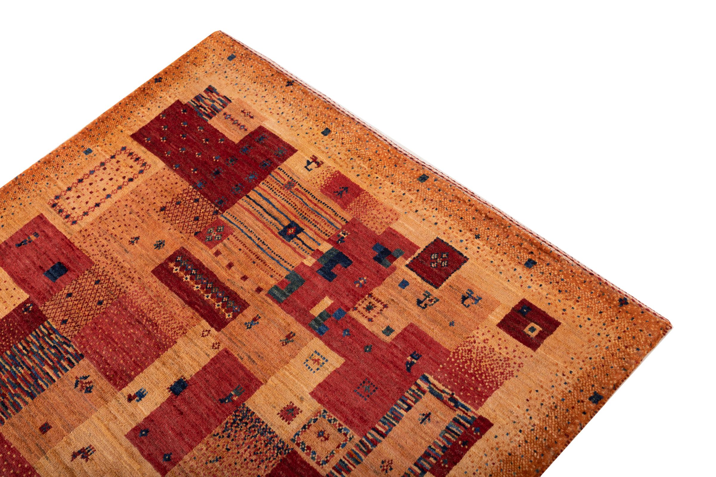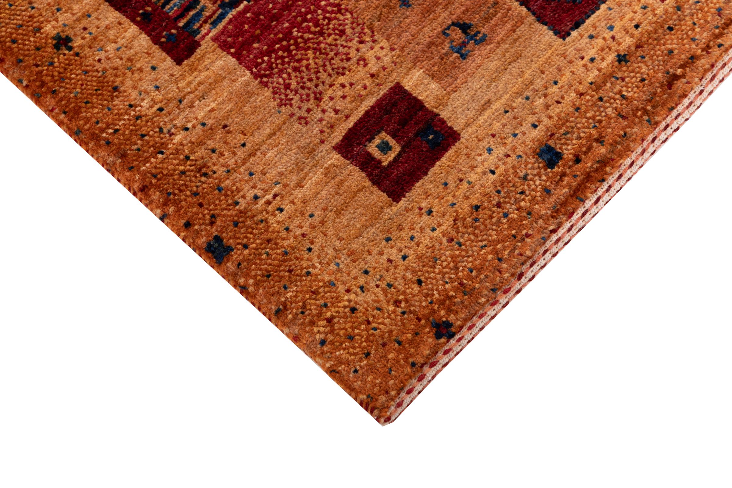 Een verfijning van de al bekende Gabbeh-tapijten: Dit is deze Perzische Gabbeh Loribaft. Het weet indruk te maken met zijn fijnere weefsel en prachtige ontwerp. Het werd door Loren in het zuiden van Perzië met de hand geknoopt van de beste handgesponnen schapenwol. Voor het verven van de wol worden uitsluitend pure plantaardige kleurstoffen gebruikt. Met dit vloerkleed haal je de hoogste standaard van een Gabbeh-tapijt in huis.