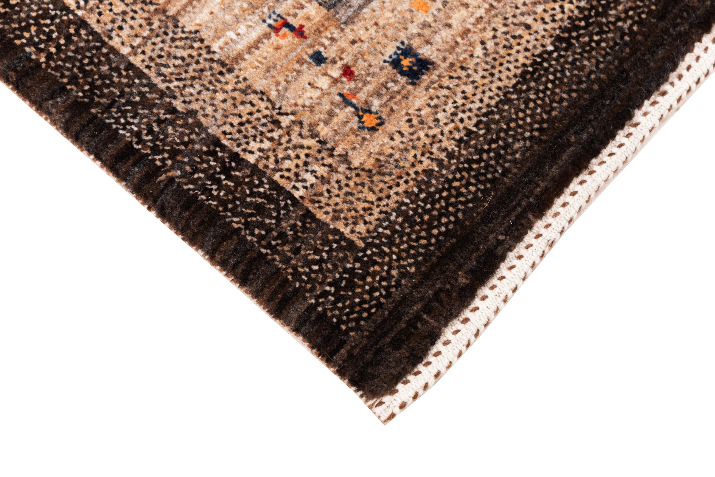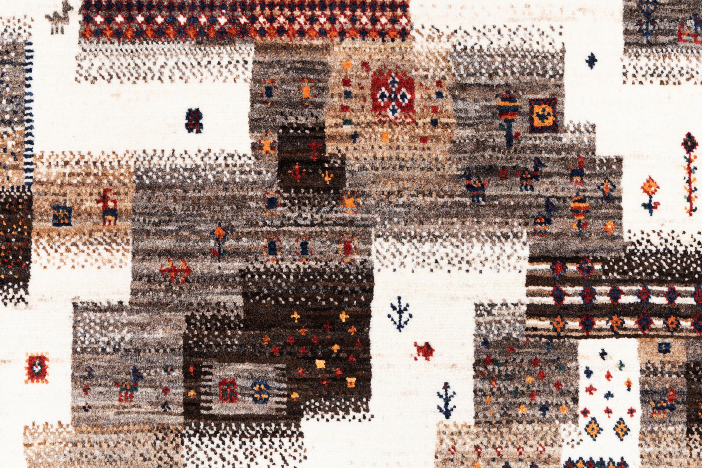 Een verfijning van de al bekende Gabbeh-tapijten: Dit is deze Perzische Gabbeh Loribaft. Het weet indruk te maken met zijn fijnere weefsel en prachtige ontwerp. Het werd door Loren in het zuiden van Perzië met de hand geknoopt van de beste handgesponnen schapenwol. Voor het verven van de wol worden uitsluitend pure plantaardige kleurstoffen gebruikt. Met dit vloerkleed haal je de hoogste standaard van een Gabbeh-tapijt in huis.