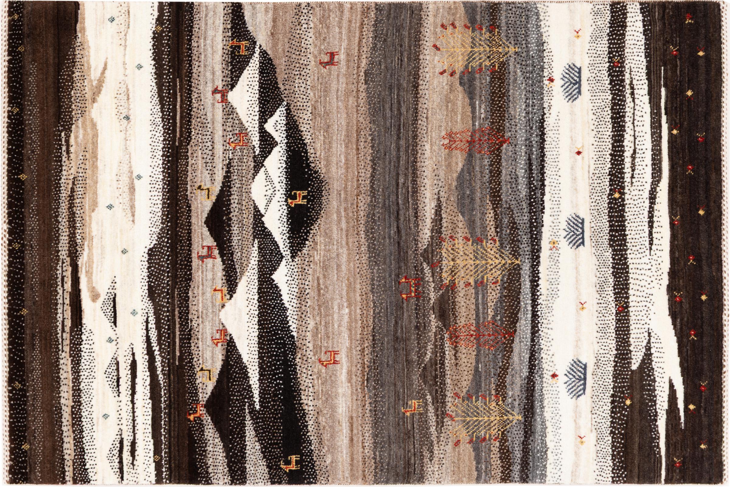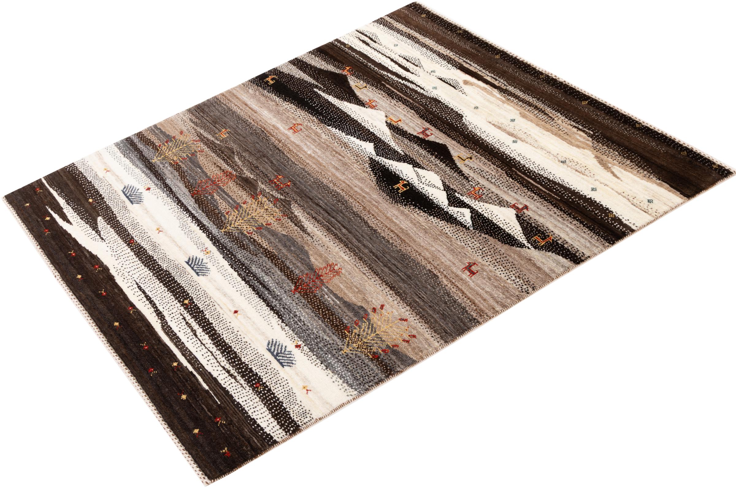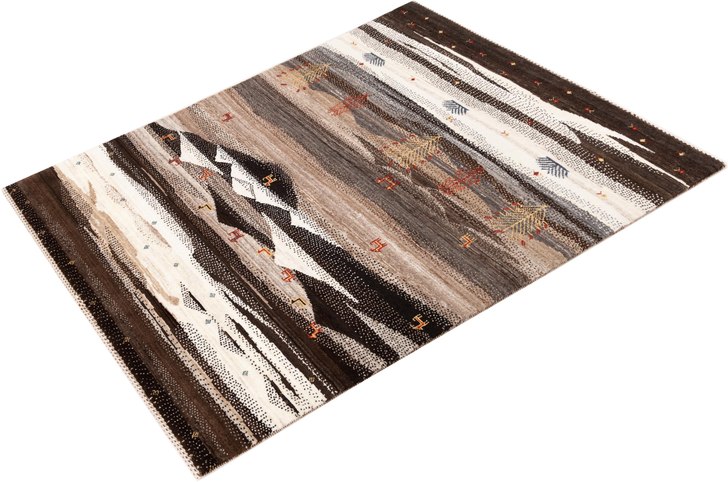 Dit prachtige tapijt is een Perzisch Gabbeh-tapijt en behoort daarom tot de hoogste kwaliteit Gabbeh-tapijten. De tapijten worden geknoopt door nomaden of semi-nomaden in Iran volgens traditioneel vakmanschap. De eenvoudige motieven en patronen zijn vooral geïnspireerd op de directe omgeving van de nomaden. Zo zijn er bijvoorbeeld kamelen, bomen of struiken te vinden op de traditionele tapijten. De Perzische Gabbeh-tapijten zijn gemaakt van wol van lokaal opgefokte kuddes schapen. De wol wordt dus meestal nog met de hand gesponnen. Elk van deze oosterse tapijten belichaamt dus een uniek karakter van de eeuwenoude cultuur.