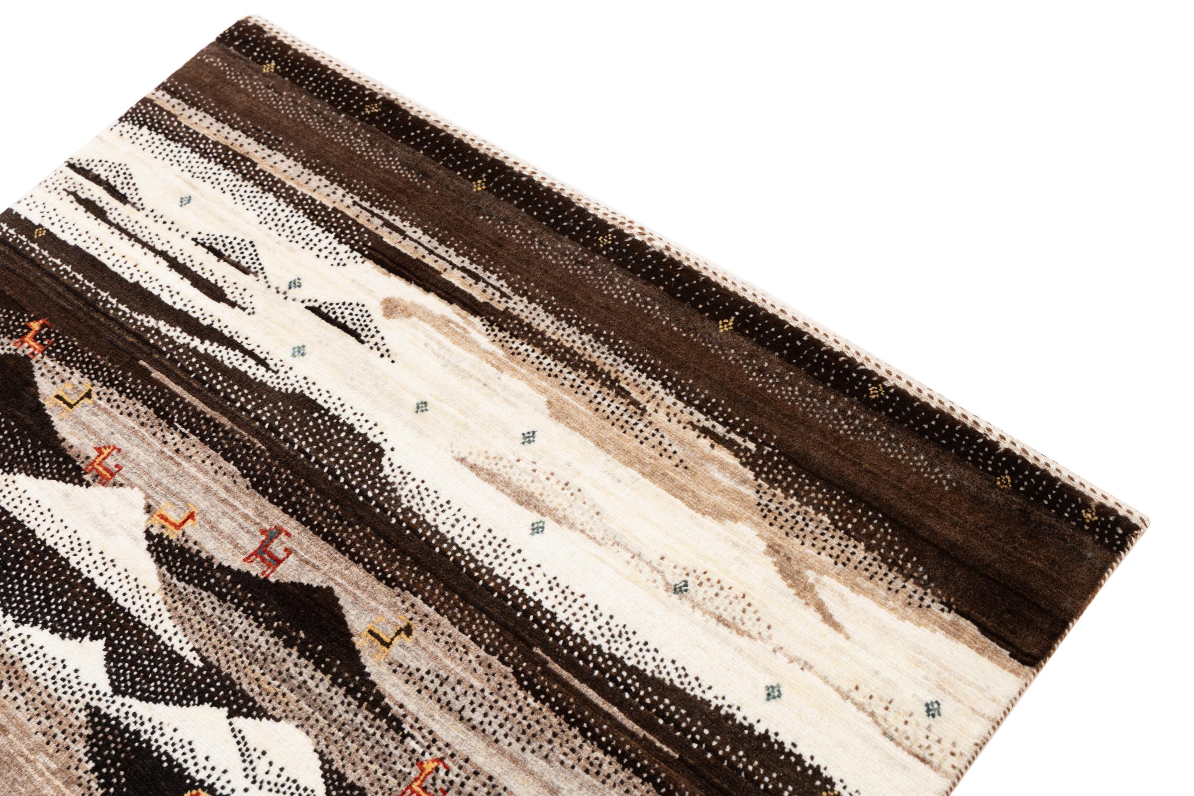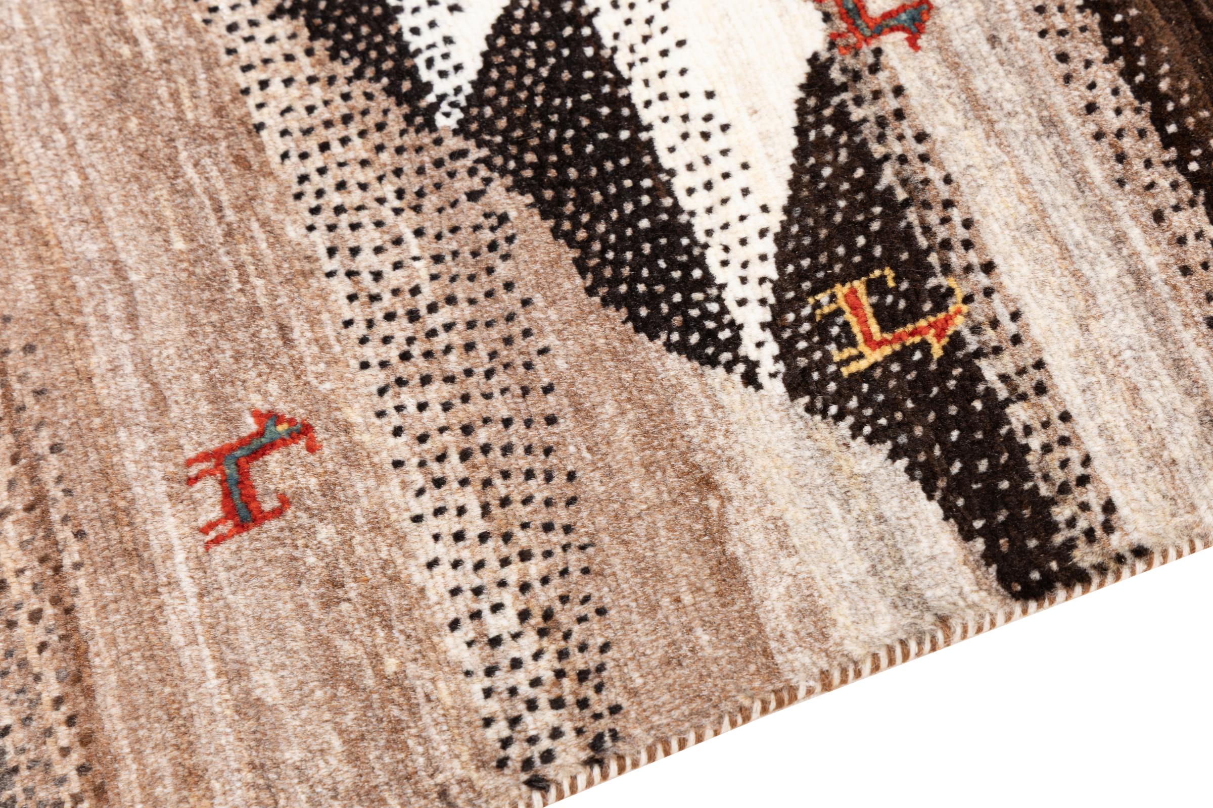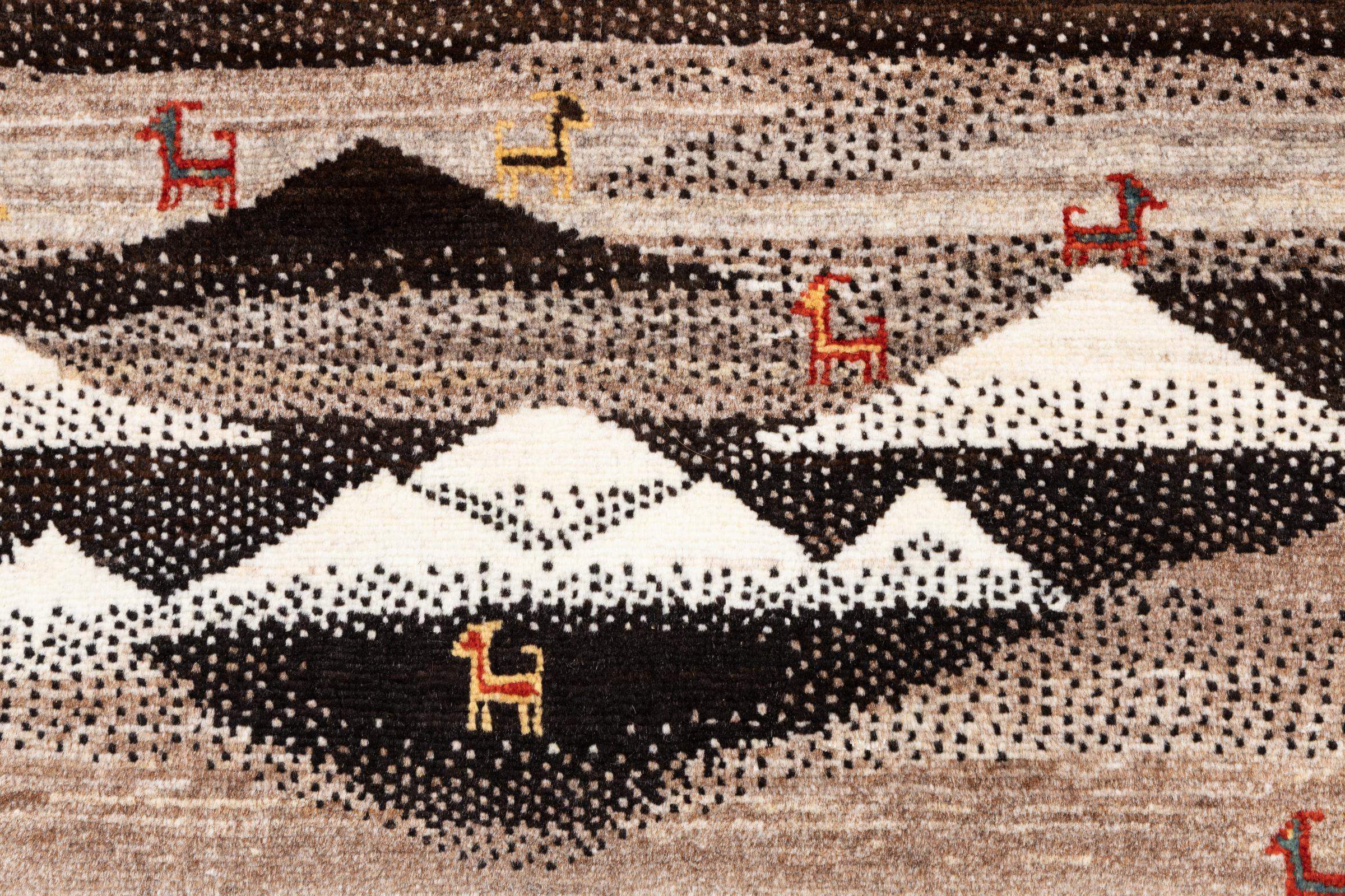 Dit prachtige tapijt is een Perzisch Gabbeh-tapijt en behoort daarom tot de hoogste kwaliteit Gabbeh-tapijten. De tapijten worden geknoopt door nomaden of semi-nomaden in Iran volgens traditioneel vakmanschap. De eenvoudige motieven en patronen zijn vooral geïnspireerd op de directe omgeving van de nomaden. Zo zijn er bijvoorbeeld kamelen, bomen of struiken te vinden op de traditionele tapijten. De Perzische Gabbeh-tapijten zijn gemaakt van wol van lokaal opgefokte kuddes schapen. De wol wordt dus meestal nog met de hand gesponnen. Elk van deze oosterse tapijten belichaamt dus een uniek karakter van de eeuwenoude cultuur.
