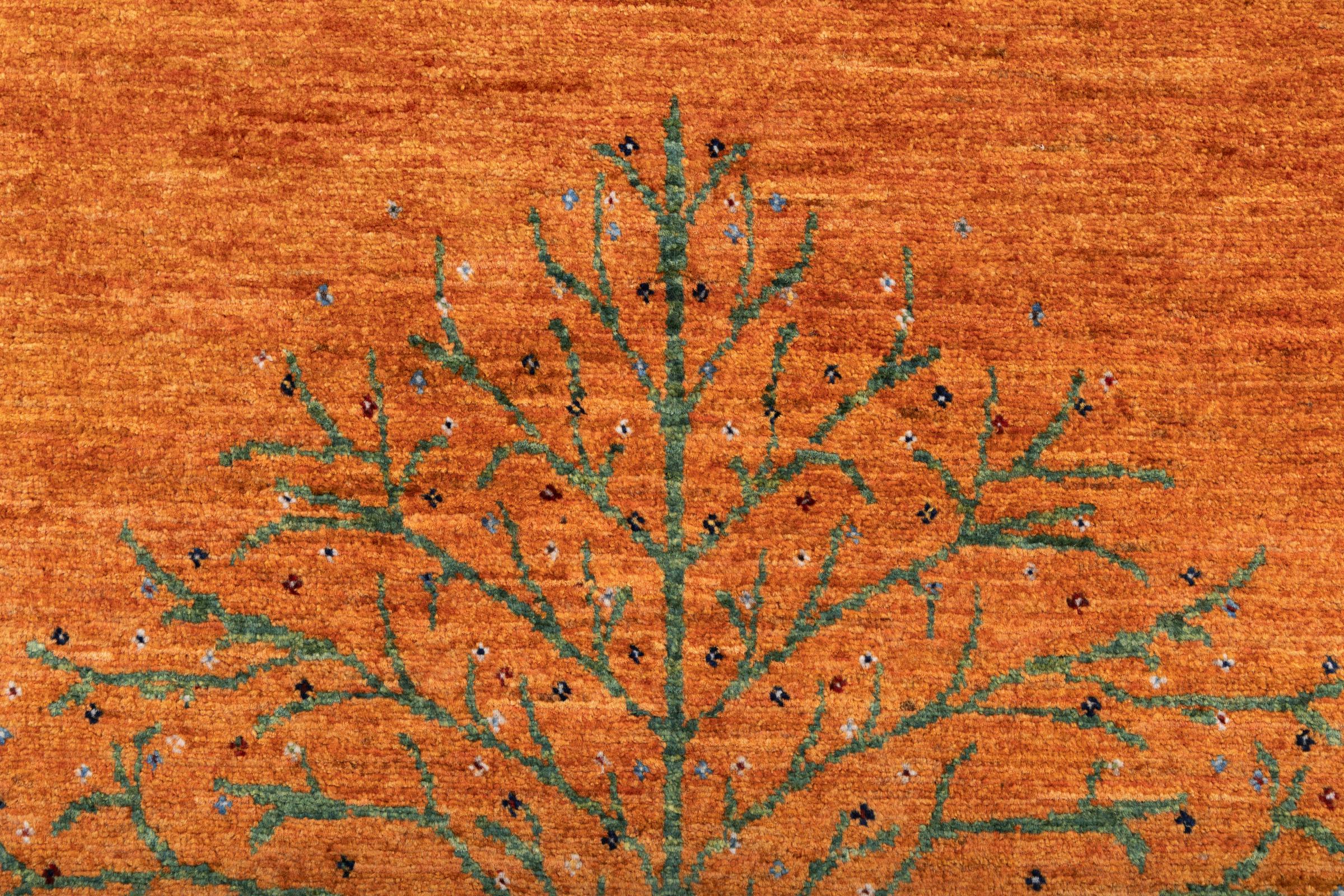 Dit prachtige tapijt is een Perzisch Gabbeh-tapijt en behoort daarom tot de hoogste kwaliteit Gabbeh-tapijten. De tapijten worden geknoopt door nomaden of semi-nomaden in Iran volgens traditioneel vakmanschap. De eenvoudige motieven en patronen zijn vooral geïnspireerd op de directe omgeving van de nomaden. Zo zijn er bijvoorbeeld kamelen, bomen of struiken te vinden op de traditionele tapijten. De Perzische Gabbeh-tapijten zijn gemaakt van wol van lokaal opgefokte kuddes schapen. De wol wordt dus meestal nog met de hand gesponnen. Elk van deze oosterse tapijten belichaamt dus een uniek karakter van de eeuwenoude cultuur.