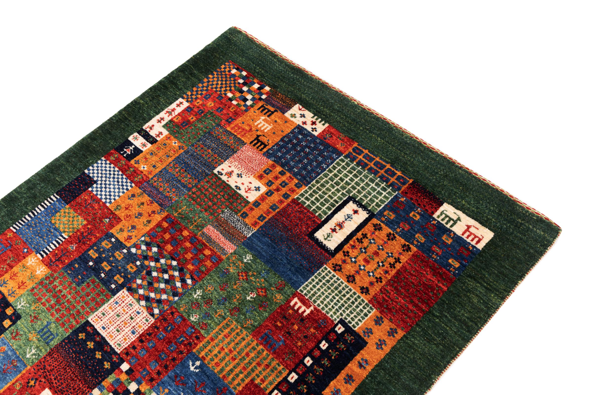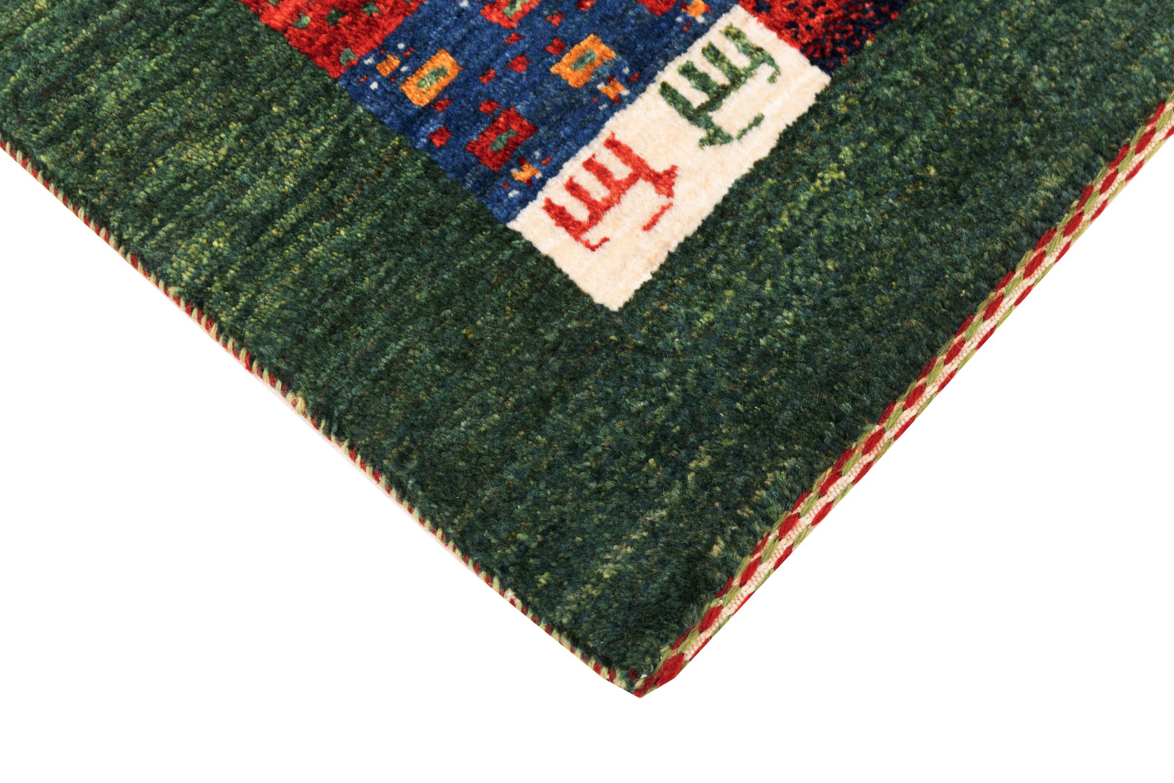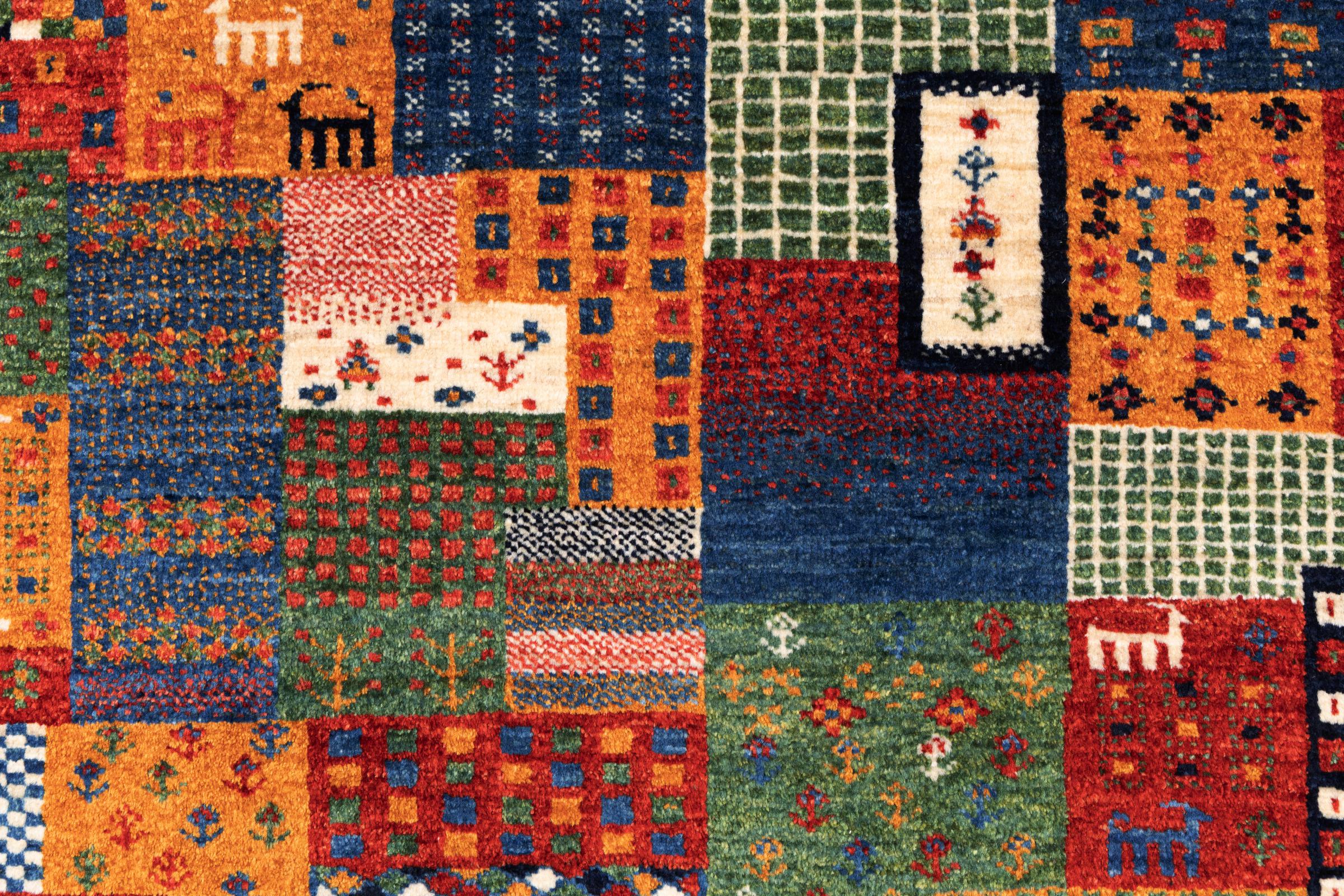 Een verfijning van de al bekende Gabbeh-tapijten: Dit is deze Perzische Gabbeh Loribaft. Het weet indruk te maken met zijn fijnere weefsel en prachtige ontwerp. Het werd door Loren in het zuiden van Perzië met de hand geknoopt van de beste handgesponnen schapenwol. Voor het verven van de wol worden uitsluitend pure plantaardige kleurstoffen gebruikt. Met dit vloerkleed haal je de hoogste standaard van een Gabbeh-tapijt in huis.