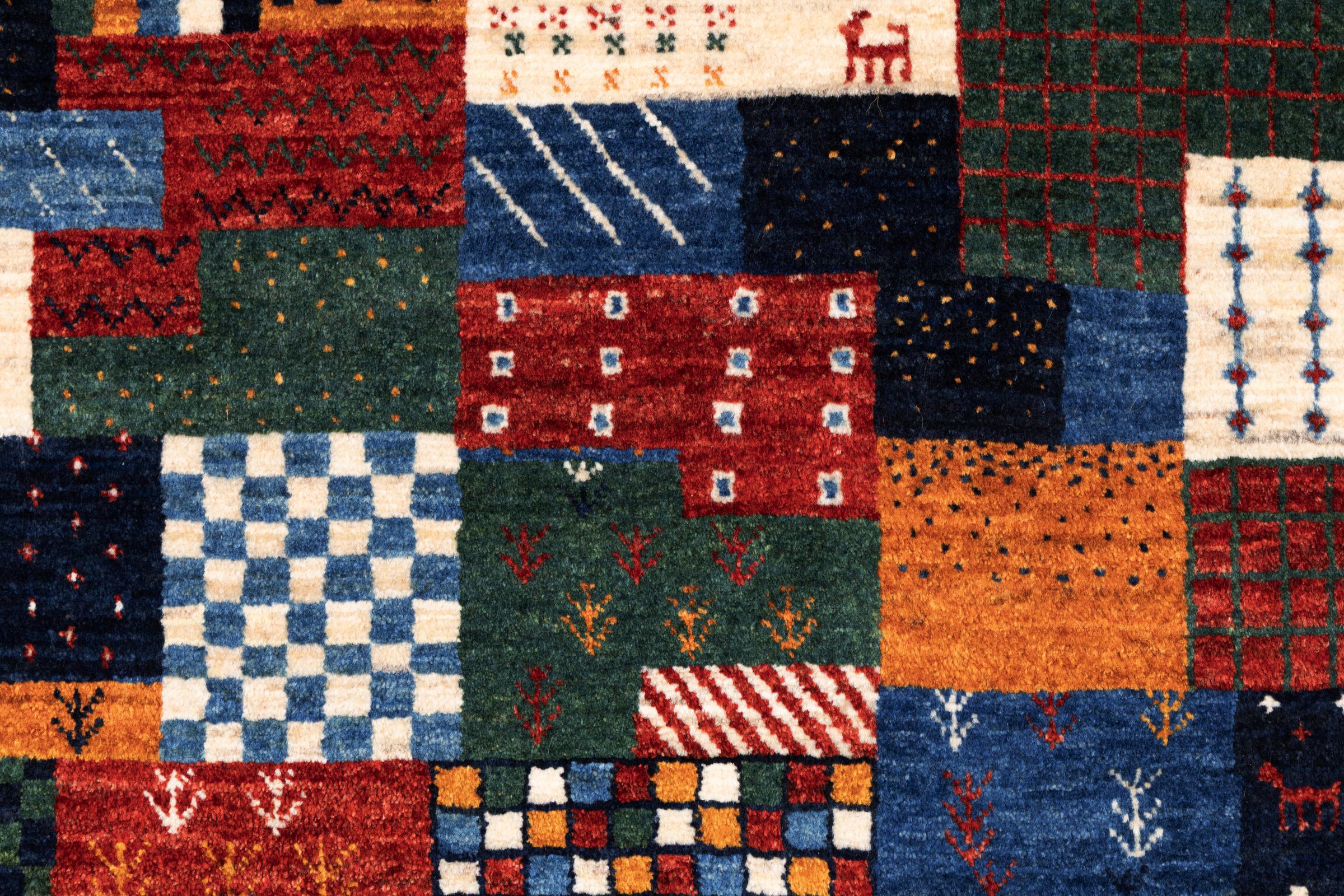 Een verfijning van de al bekende Gabbeh-tapijten: Dit is deze Perzische Gabbeh Loribaft. Het weet indruk te maken met zijn fijnere weefsel en prachtige ontwerp. Het werd door Loren in het zuiden van Perzië met de hand geknoopt van de beste handgesponnen schapenwol. Voor het verven van de wol worden uitsluitend pure plantaardige kleurstoffen gebruikt. Met dit vloerkleed haal je de hoogste standaard van een Gabbeh-tapijt in huis.
