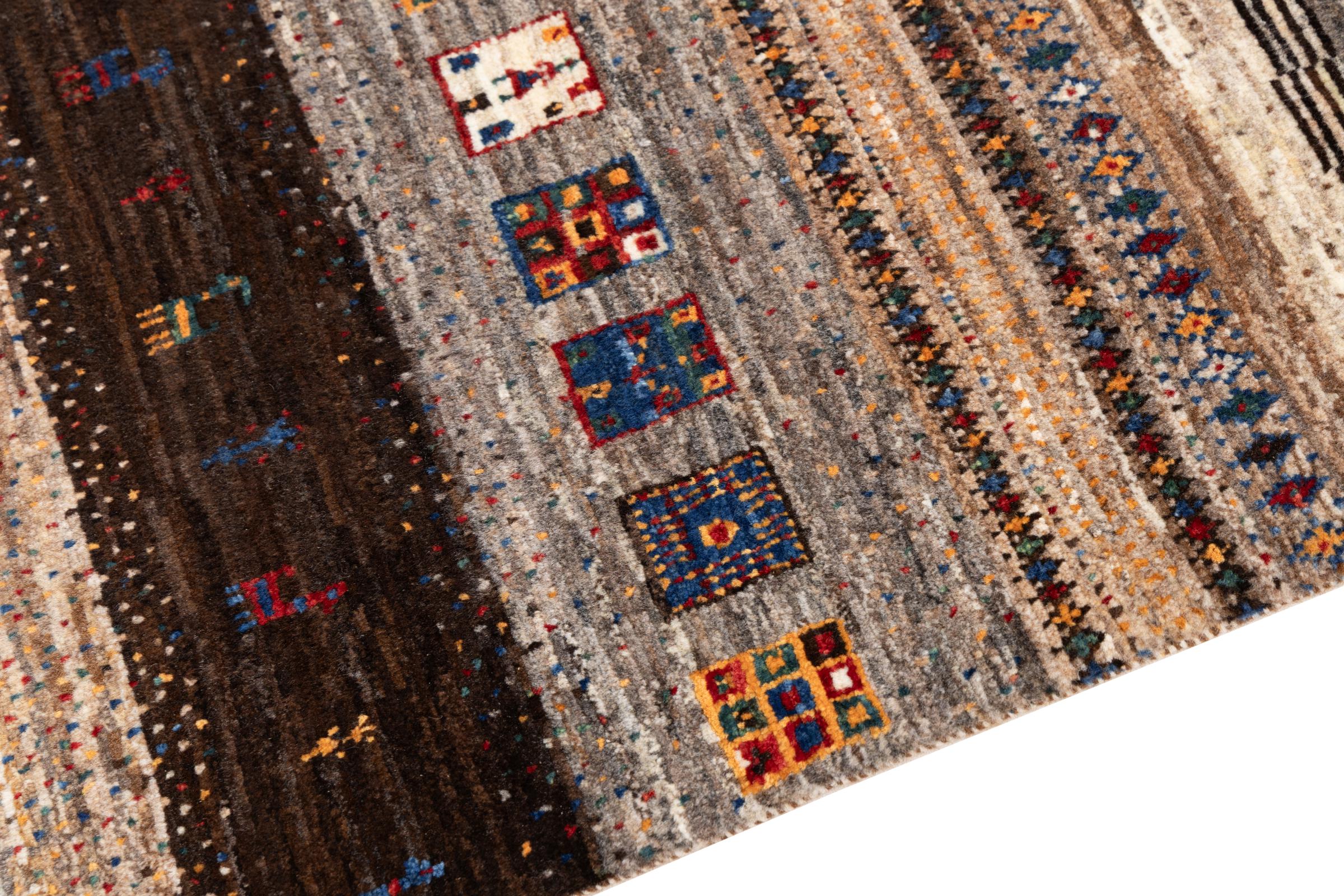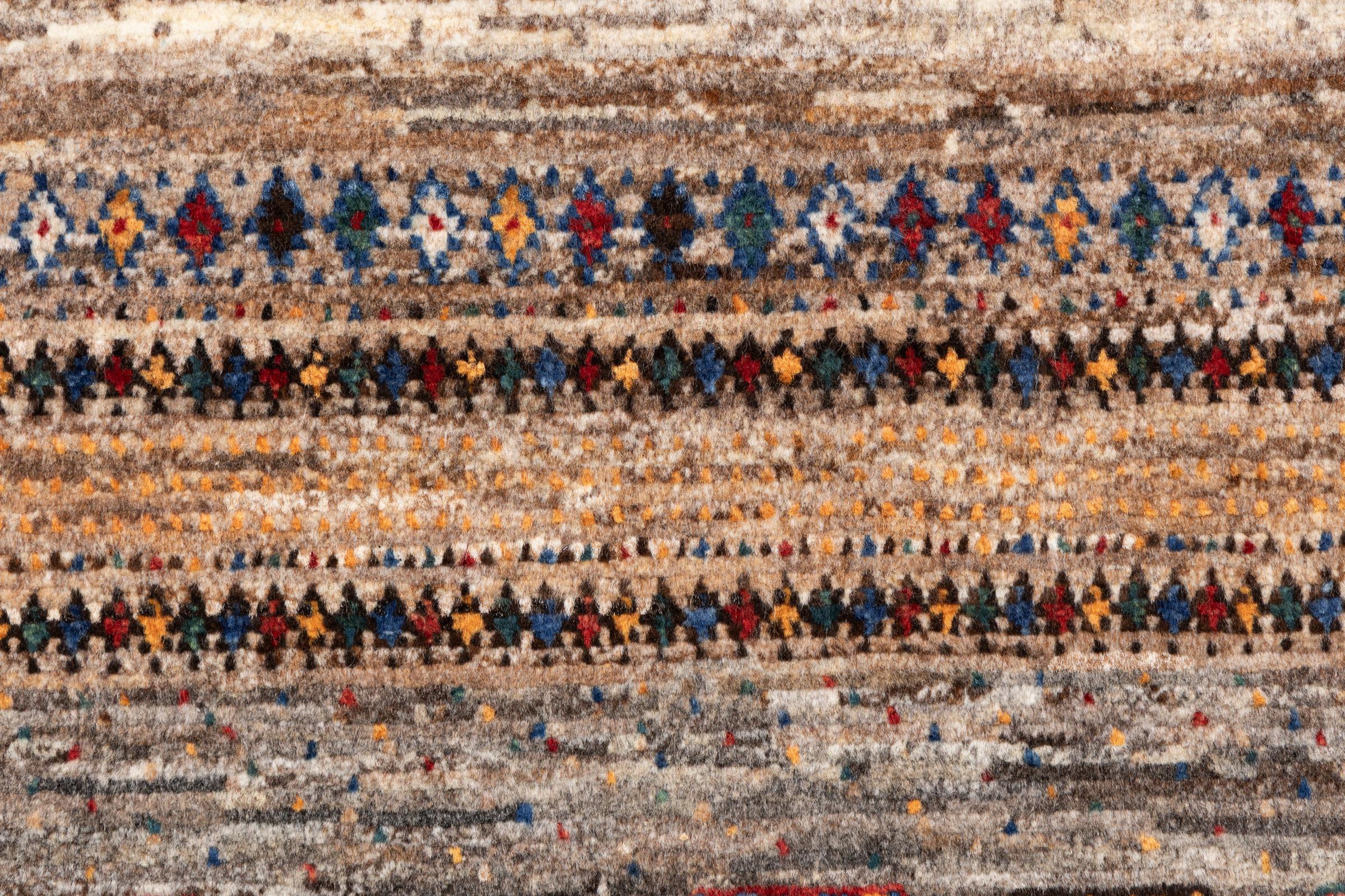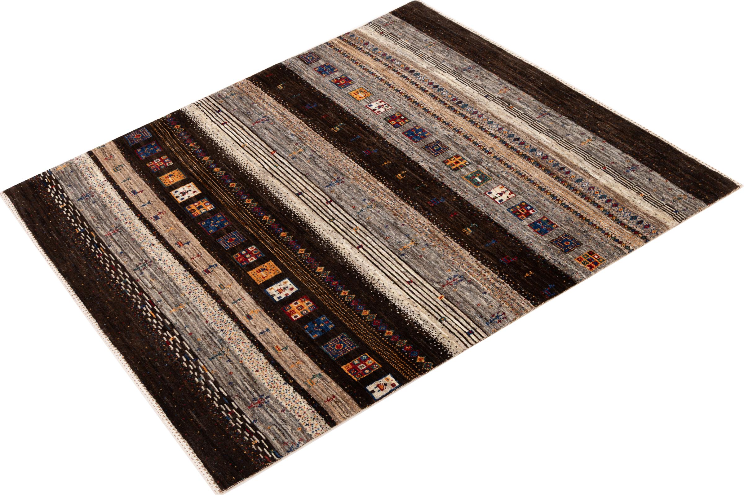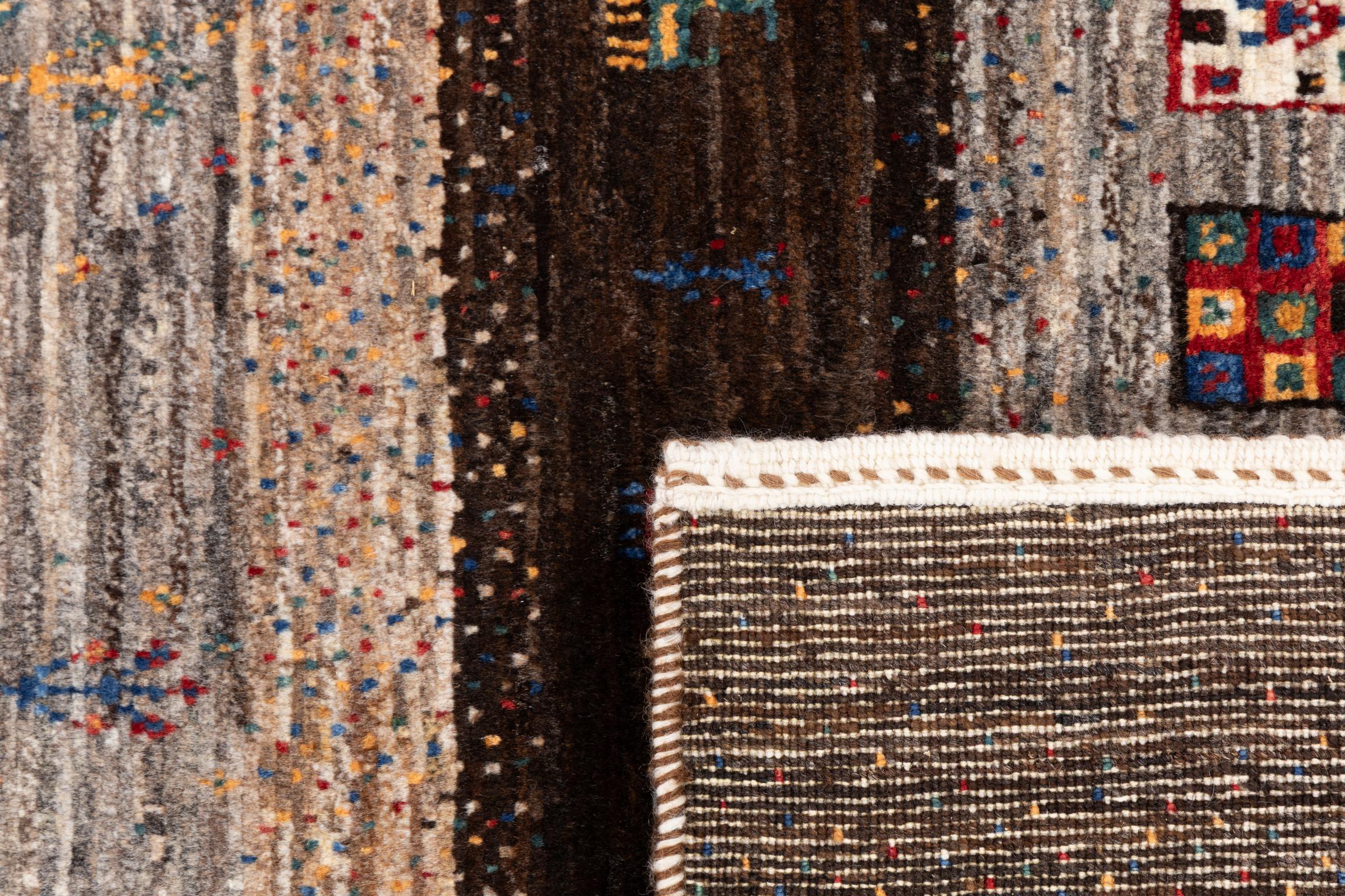Een verfijning van de al bekende Gabbeh-tapijten: Dit is deze Perzische Gabbeh Loribaft. Het weet indruk te maken met zijn fijnere weefsel en prachtige ontwerp. Het werd door Loren in het zuiden van Perzië met de hand geknoopt van de beste handgesponnen schapenwol. Voor het verven van de wol worden uitsluitend pure plantaardige kleurstoffen gebruikt. Met dit vloerkleed haal je de hoogste standaard van een Gabbeh-tapijt in huis.