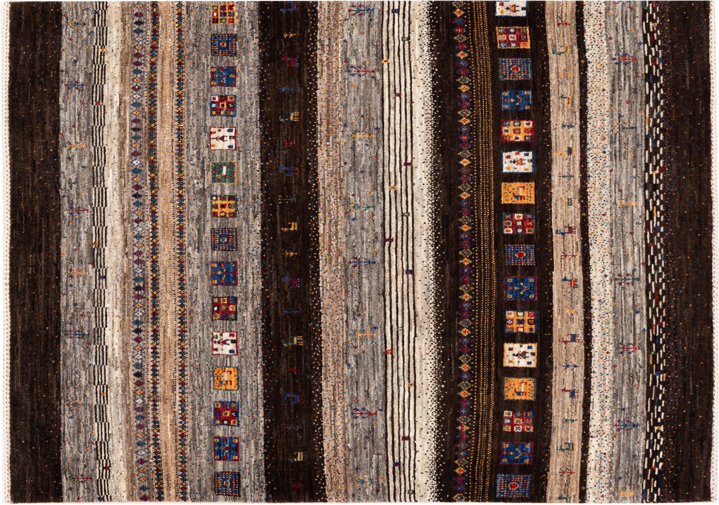 Dit prachtige tapijt is een Perzisch Gabbeh-tapijt en behoort daarom tot de hoogste kwaliteit Gabbeh-tapijten. De tapijten worden geknoopt door nomaden of semi-nomaden in Iran volgens traditioneel vakmanschap. De eenvoudige motieven en patronen zijn vooral geïnspireerd op de directe omgeving van de nomaden. Zo zijn er bijvoorbeeld kamelen, bomen of struiken te vinden op de traditionele tapijten. De Perzische Gabbeh-tapijten zijn gemaakt van wol van lokaal opgefokte kuddes schapen. De wol wordt dus meestal nog met de hand gesponnen. Elk van deze oosterse tapijten belichaamt dus een uniek karakter van de eeuwenoude cultuur.