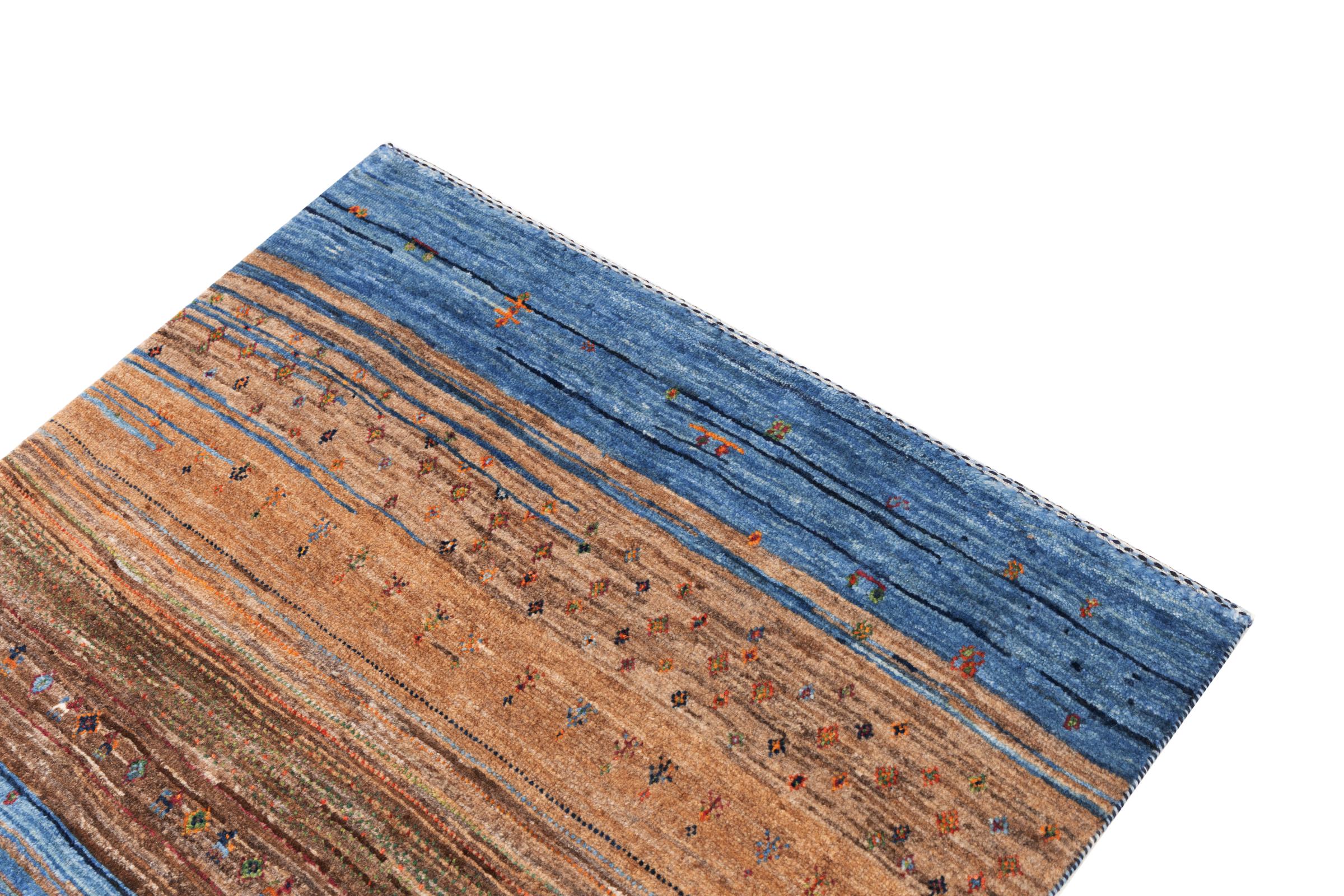 Een verfijning van de al bekende Gabbeh-tapijten: Dit is deze Perzische Gabbeh Loribaft. Het weet indruk te maken met zijn fijnere weefsel en prachtige ontwerp. Het werd door Loren in het zuiden van Perzië met de hand geknoopt van de beste handgesponnen schapenwol. Voor het verven van de wol worden uitsluitend pure plantaardige kleurstoffen gebruikt. Met dit vloerkleed haal je de hoogste standaard van een Gabbeh-tapijt in huis.