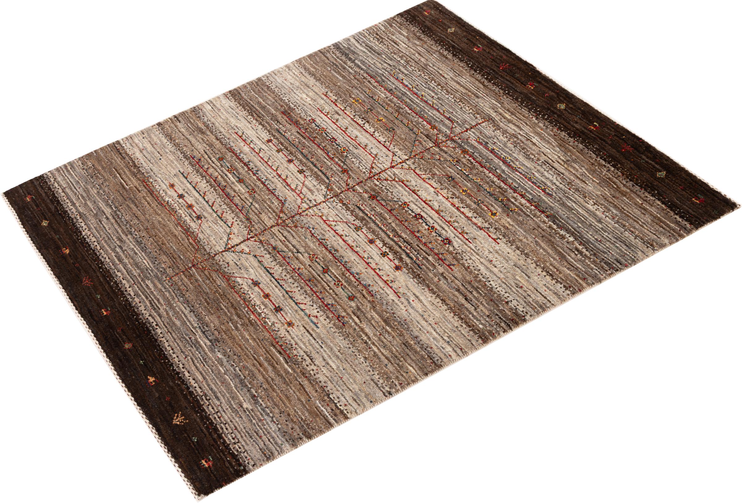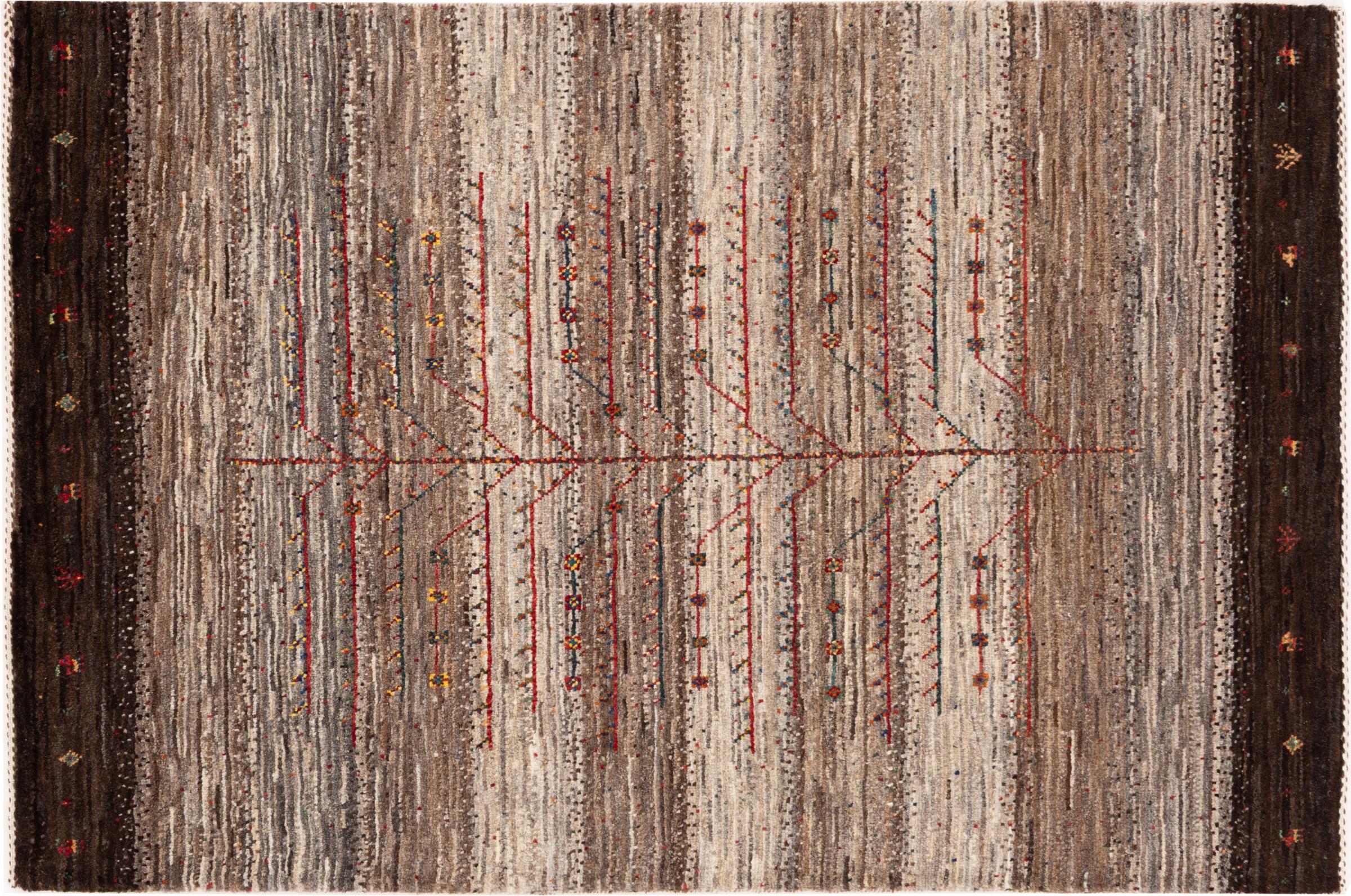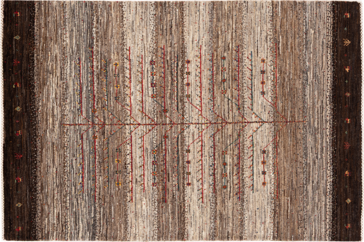Dit prachtige tapijt is een Perzisch Gabbeh-tapijt en behoort daarom tot de hoogste kwaliteit Gabbeh-tapijten. De tapijten worden geknoopt door nomaden of semi-nomaden in Iran volgens traditioneel vakmanschap. De eenvoudige motieven en patronen zijn vooral geïnspireerd op de directe omgeving van de nomaden. Zo zijn er bijvoorbeeld kamelen, bomen of struiken te vinden op de traditionele tapijten. De Perzische Gabbeh-tapijten zijn gemaakt van wol van lokaal opgefokte kuddes schapen. De wol wordt dus meestal nog met de hand gesponnen. Elk van deze oosterse tapijten belichaamt dus een uniek karakter van de eeuwenoude cultuur.