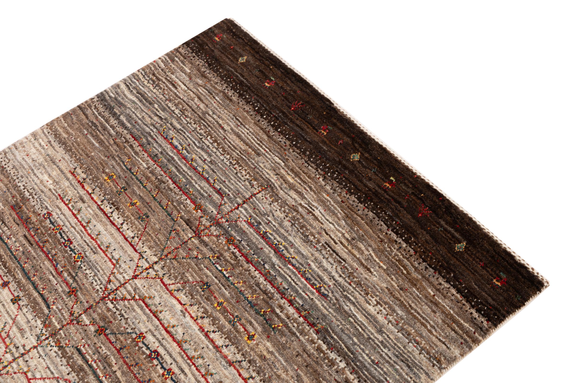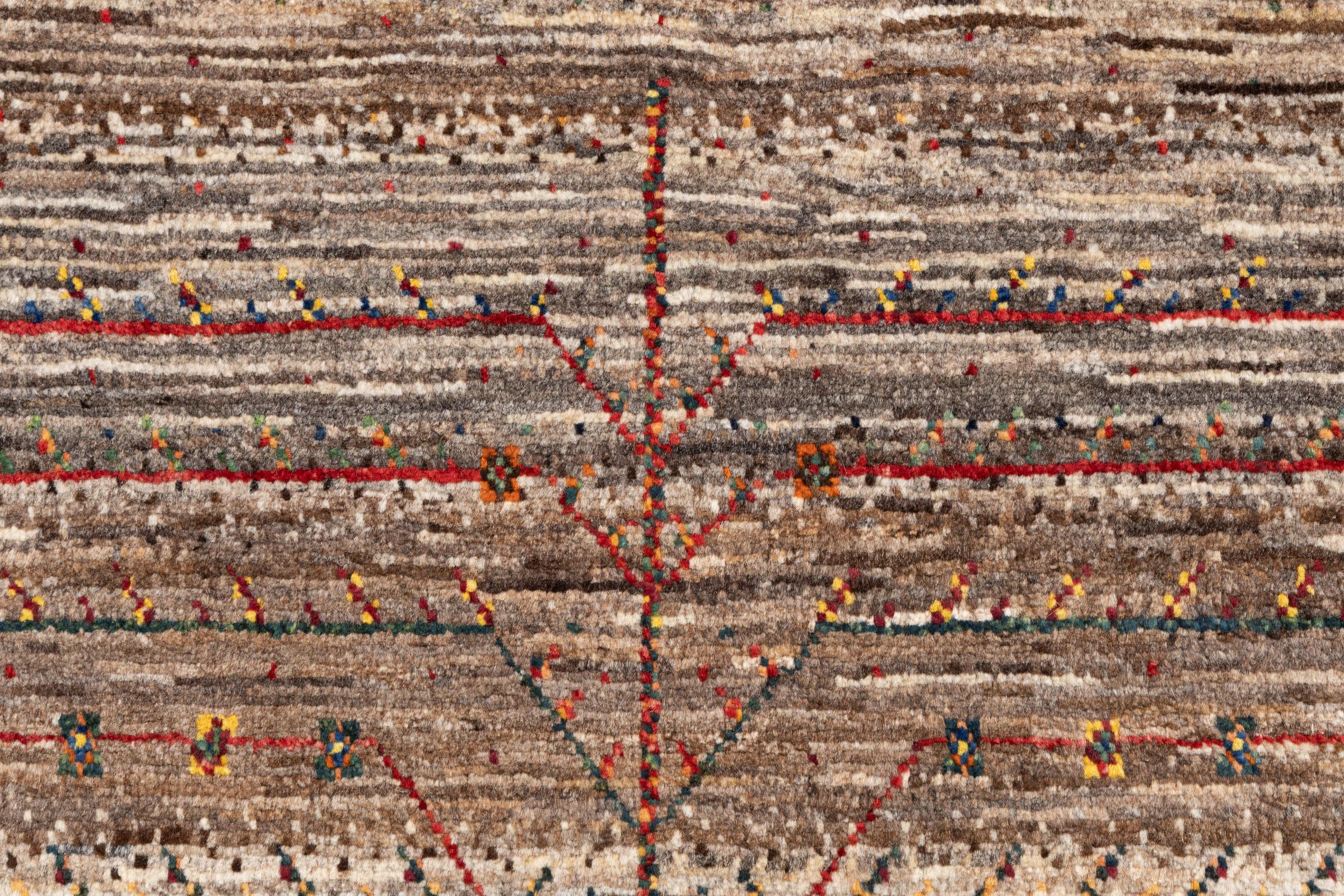 Een verfijning van de al bekende Gabbeh-tapijten: Dit is deze Perzische Gabbeh Loribaft. Het weet indruk te maken met zijn fijnere weefsel en prachtige ontwerp. Het werd door Loren in het zuiden van Perzië met de hand geknoopt van de beste handgesponnen schapenwol. Voor het verven van de wol worden uitsluitend pure plantaardige kleurstoffen gebruikt. Met dit vloerkleed haal je de hoogste standaard van een Gabbeh-tapijt in huis.