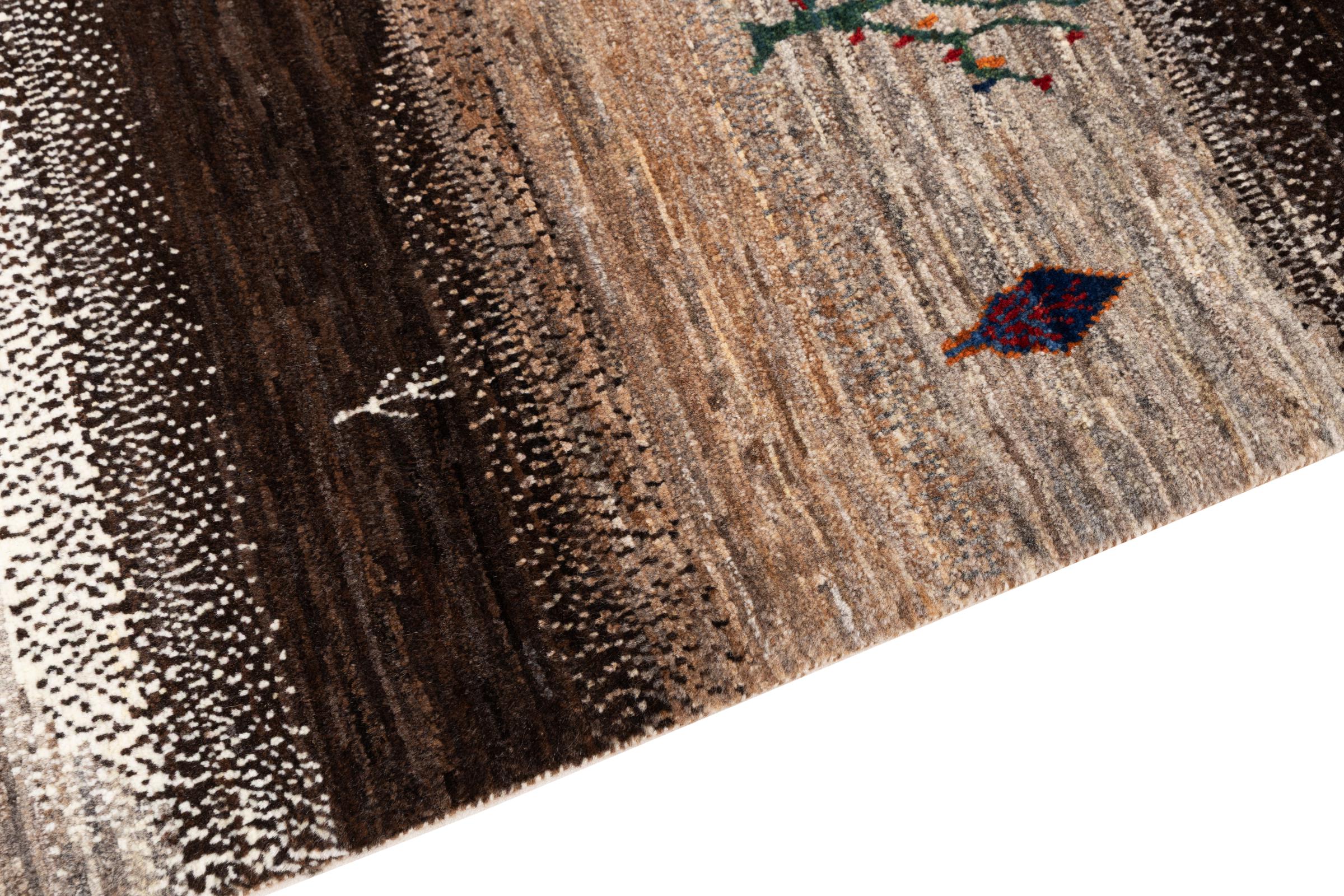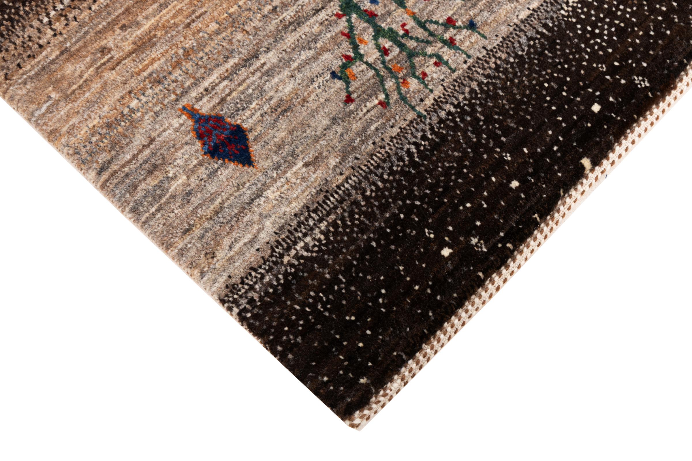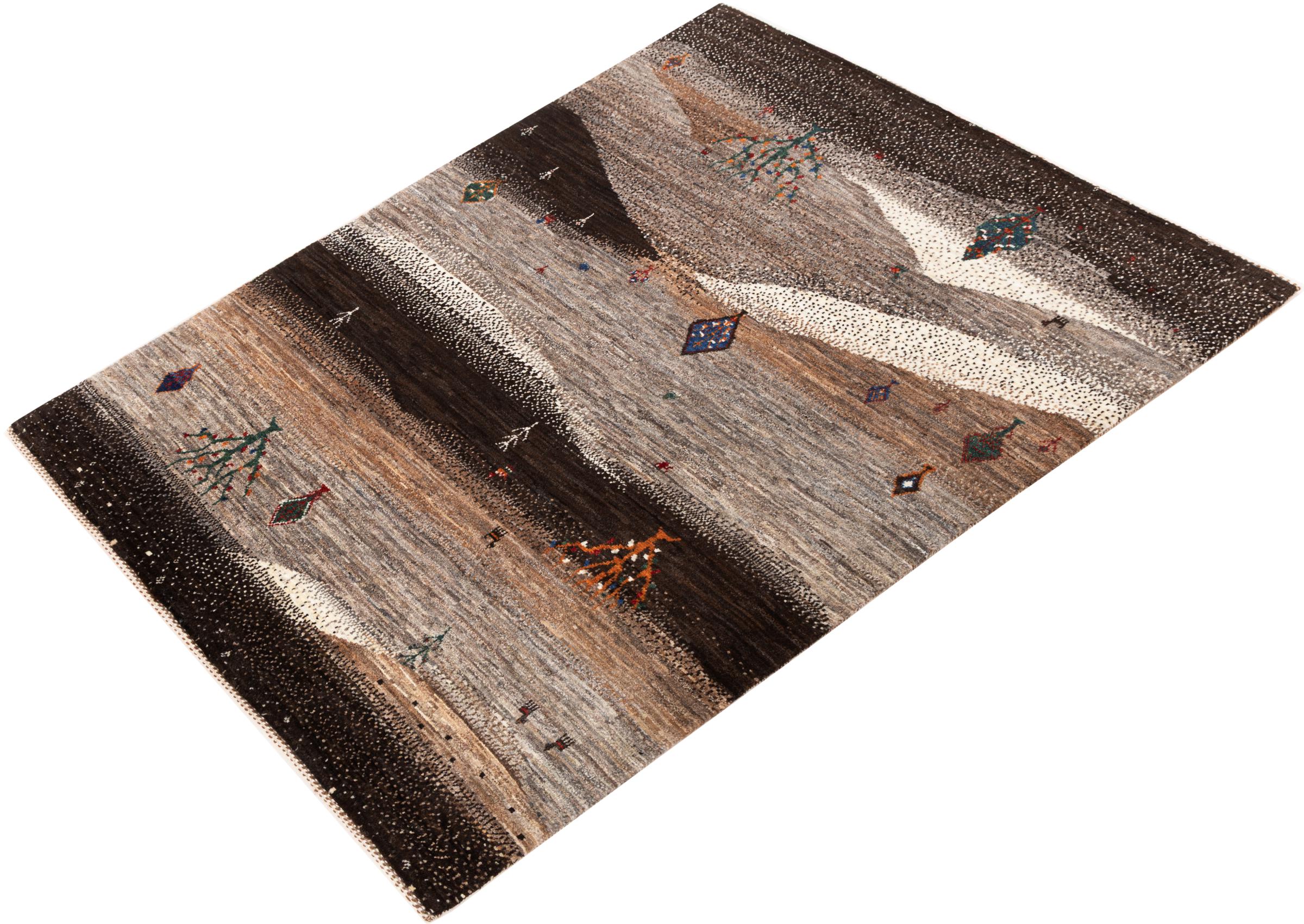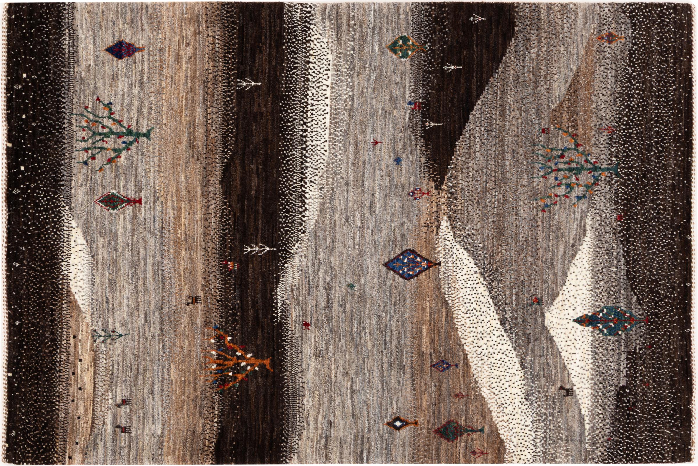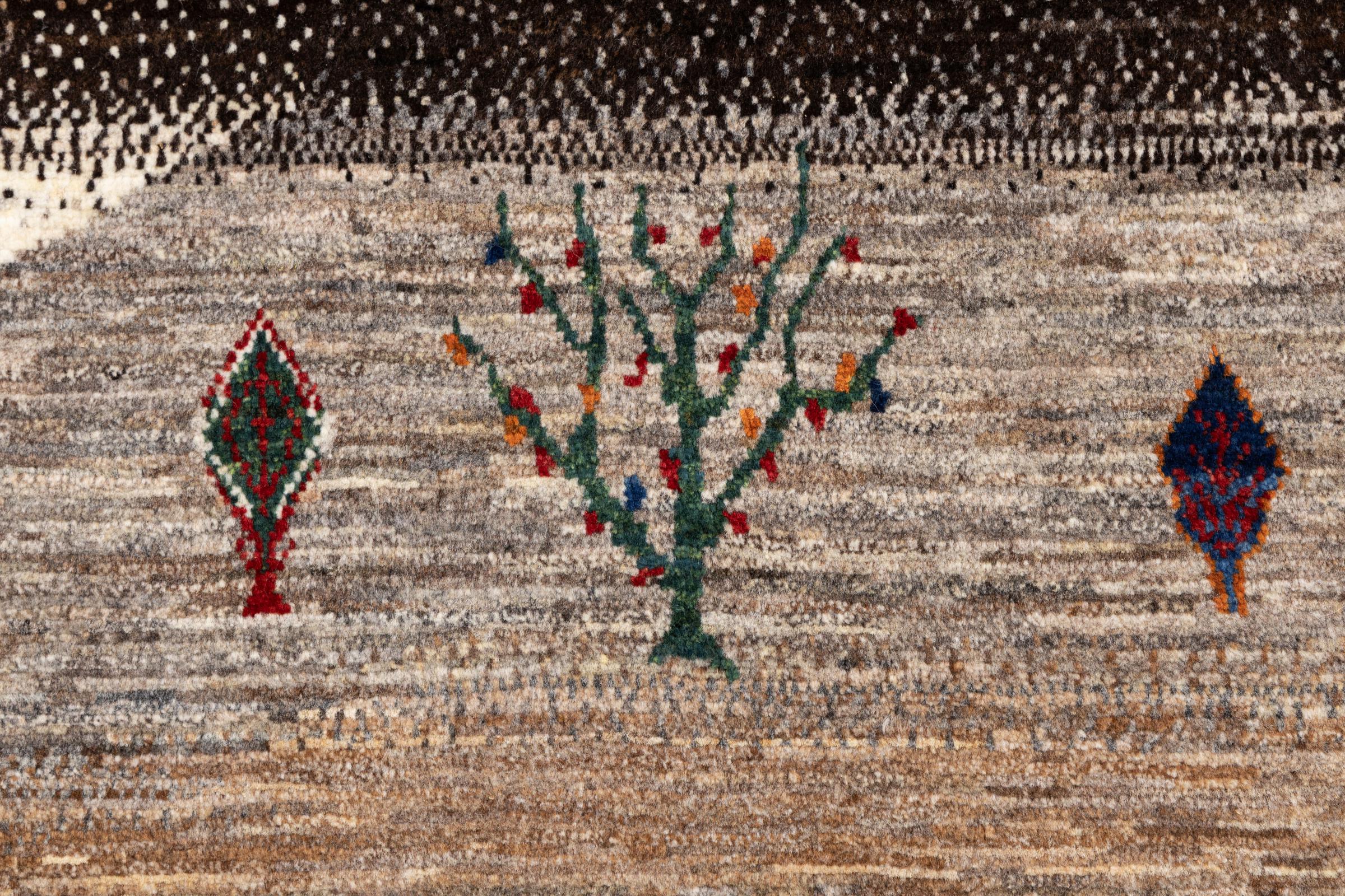Dit prachtige tapijt is een Perzisch Gabbeh-tapijt en behoort daarom tot de hoogste kwaliteit Gabbeh-tapijten. De tapijten worden geknoopt door nomaden of semi-nomaden in Iran volgens traditioneel vakmanschap. De eenvoudige motieven en patronen zijn vooral geïnspireerd op de directe omgeving van de nomaden. Zo zijn er bijvoorbeeld kamelen, bomen of struiken te vinden op de traditionele tapijten. De Perzische Gabbeh-tapijten zijn gemaakt van wol van lokaal opgefokte kuddes schapen. De wol wordt dus meestal nog met de hand gesponnen. Elk van deze oosterse tapijten belichaamt dus een uniek karakter van de eeuwenoude cultuur.