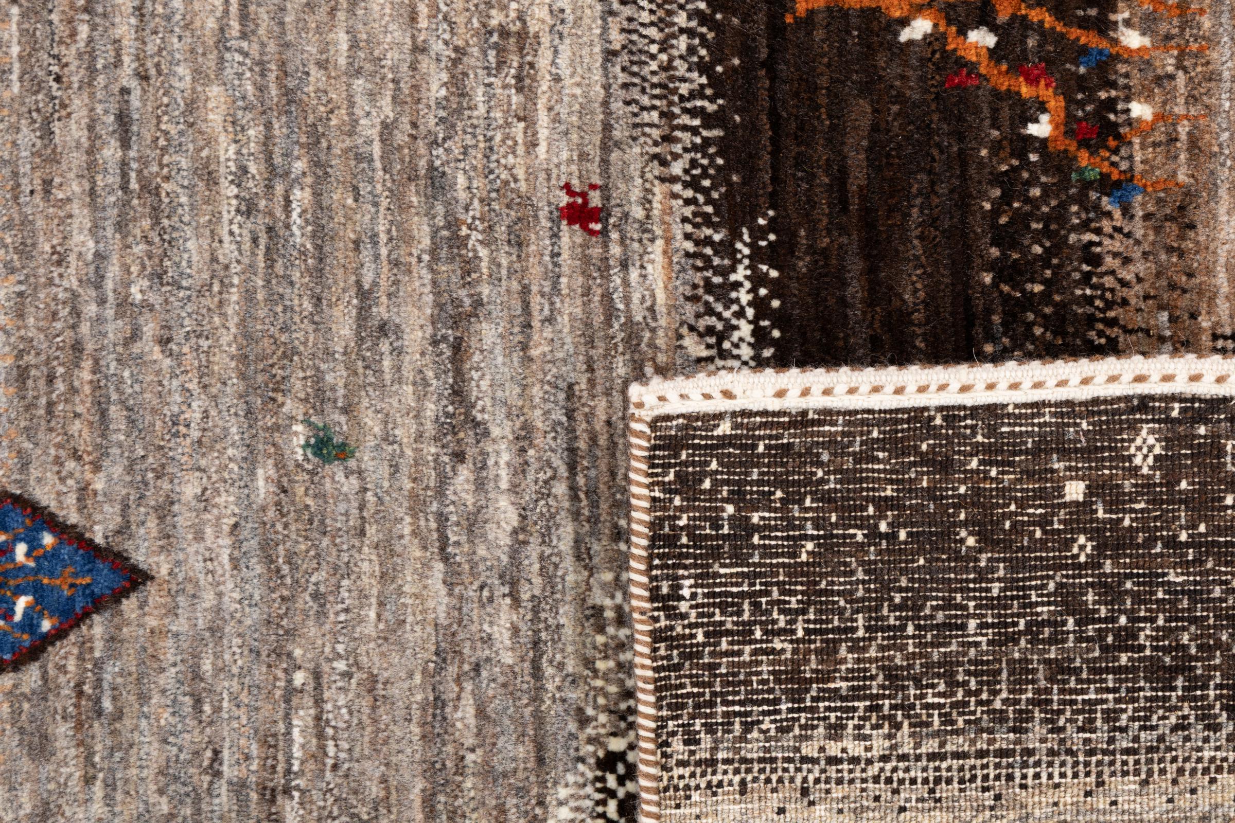 Een verfijning van de al bekende Gabbeh-tapijten: Dit is deze Perzische Gabbeh Loribaft. Het weet indruk te maken met zijn fijnere weefsel en prachtige ontwerp. Het werd door Loren in het zuiden van Perzië met de hand geknoopt van de beste handgesponnen schapenwol. Voor het verven van de wol worden uitsluitend pure plantaardige kleurstoffen gebruikt. Met dit vloerkleed haal je de hoogste standaard van een Gabbeh-tapijt in huis.