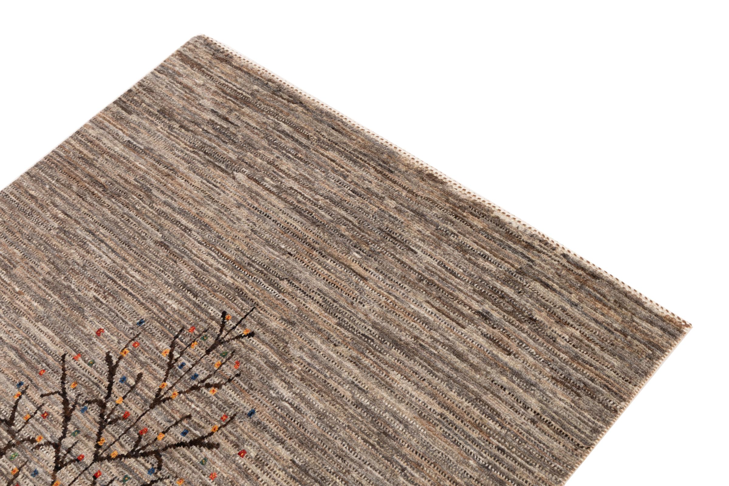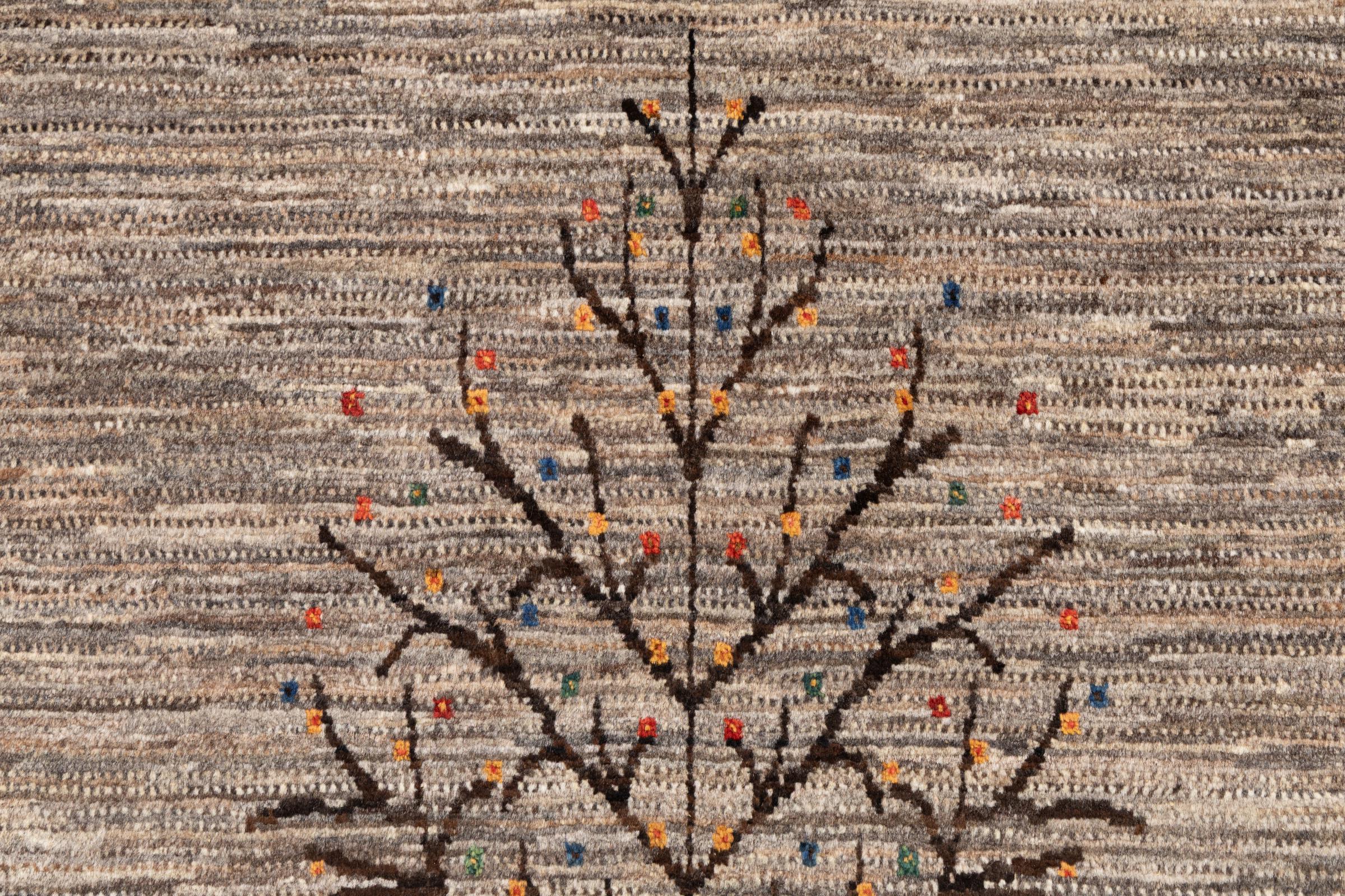 Dit prachtige tapijt is een Perzisch Gabbeh-tapijt en behoort daarom tot de hoogste kwaliteit Gabbeh-tapijten. De tapijten worden geknoopt door nomaden of semi-nomaden in Iran volgens traditioneel vakmanschap. De eenvoudige motieven en patronen zijn vooral geïnspireerd op de directe omgeving van de nomaden. Zo zijn er bijvoorbeeld kamelen, bomen of struiken te vinden op de traditionele tapijten. De Perzische Gabbeh-tapijten zijn gemaakt van wol van lokaal opgefokte kuddes schapen. De wol wordt dus meestal nog met de hand gesponnen. Elk van deze oosterse tapijten belichaamt dus een uniek karakter van de eeuwenoude cultuur.