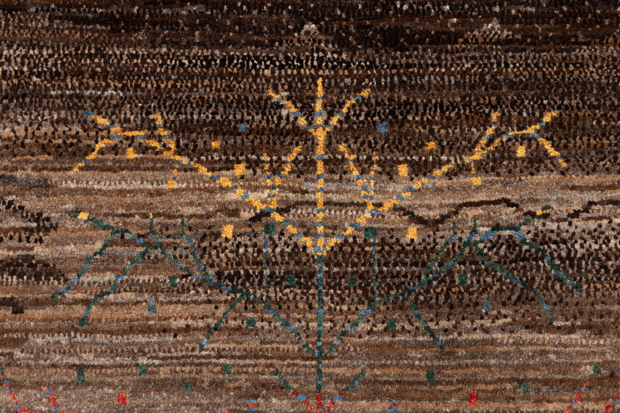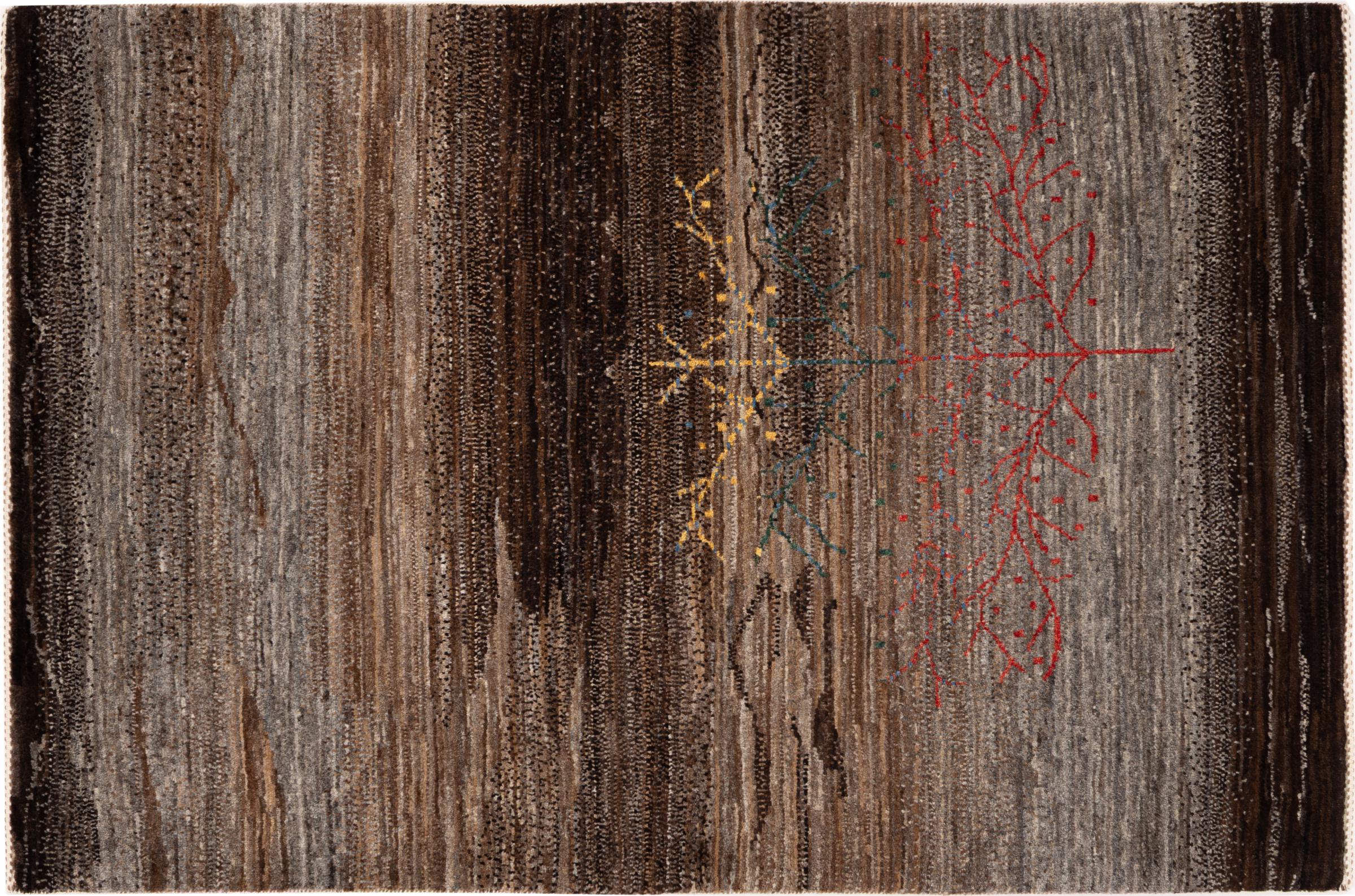Dit prachtige tapijt is een Perzisch Gabbeh-tapijt en behoort daarom tot de hoogste kwaliteit Gabbeh-tapijten. De tapijten worden geknoopt door nomaden of semi-nomaden in Iran volgens traditioneel vakmanschap. De eenvoudige motieven en patronen zijn vooral geïnspireerd op de directe omgeving van de nomaden. Zo zijn er bijvoorbeeld kamelen, bomen of struiken te vinden op de traditionele tapijten. De Perzische Gabbeh-tapijten zijn gemaakt van wol van lokaal opgefokte kuddes schapen. De wol wordt dus meestal nog met de hand gesponnen. Elk van deze oosterse tapijten belichaamt dus een uniek karakter van de eeuwenoude cultuur.