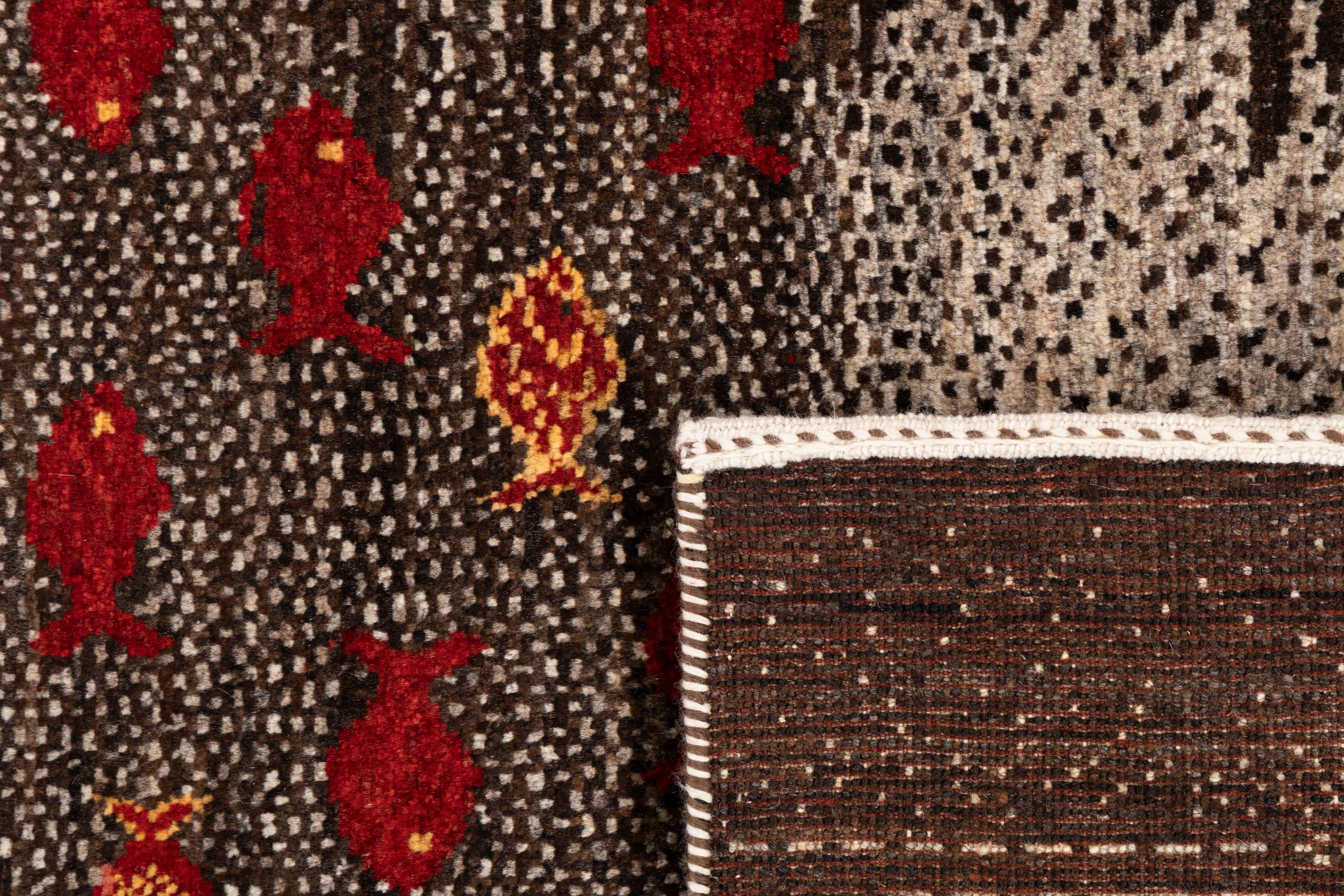 Een verfijning van de al bekende Gabbeh-tapijten: Dit is deze Perzische Gabbeh Loribaft. Het weet indruk te maken met zijn fijnere weefsel en prachtige ontwerp. Het werd door Loren in het zuiden van Perzië met de hand geknoopt van de beste handgesponnen schapenwol. Voor het verven van de wol worden uitsluitend pure plantaardige kleurstoffen gebruikt. Met dit vloerkleed haal je de hoogste standaard van een Gabbeh-tapijt in huis.