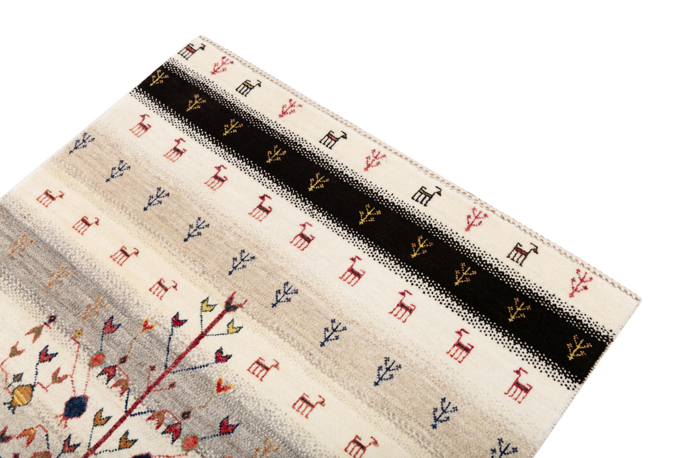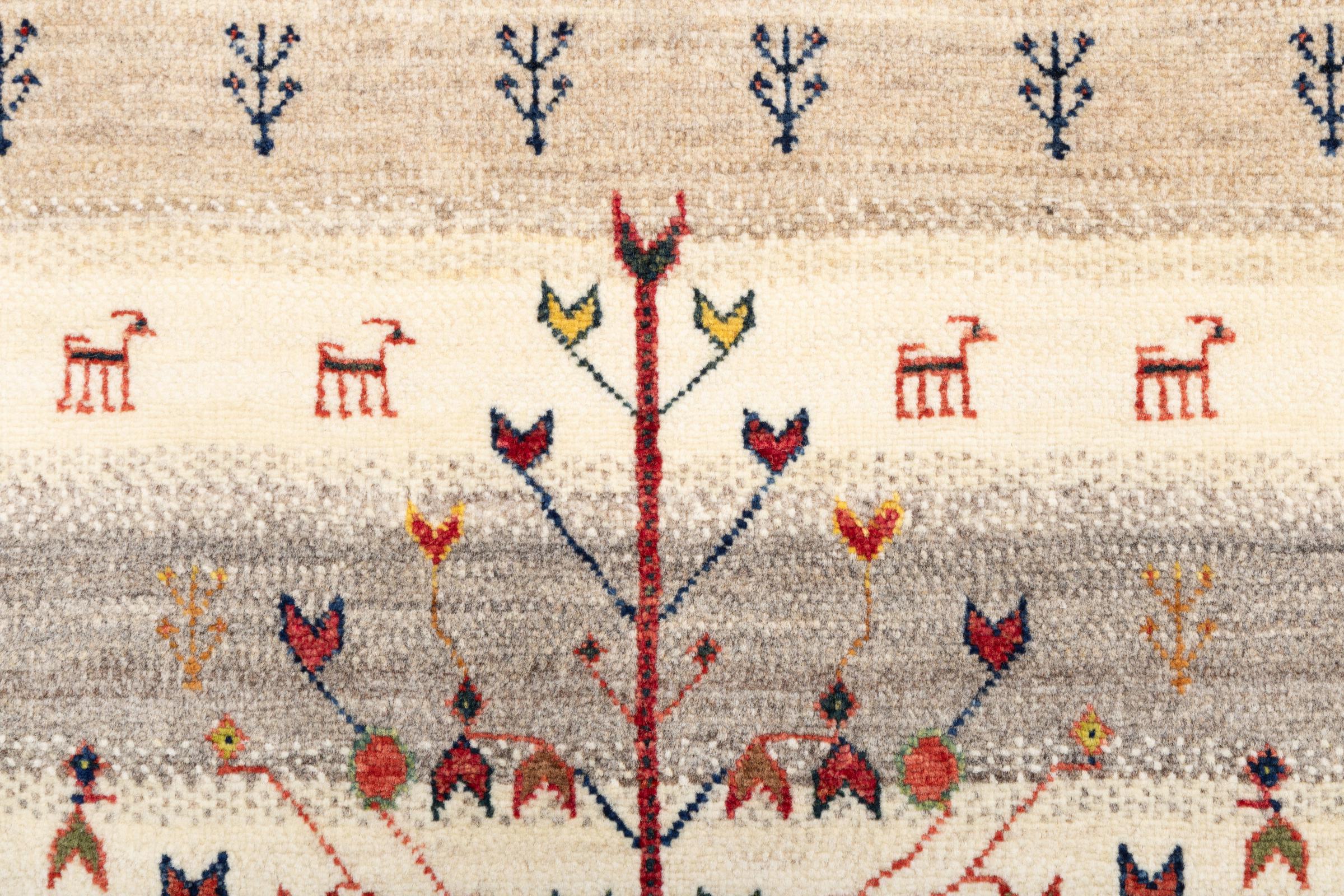 Een verfijning van de al bekende Gabbeh-tapijten: Dit is deze Perzische Gabbeh Loribaft. Het weet indruk te maken met zijn fijnere weefsel en prachtige ontwerp. Het werd door Loren in het zuiden van Perzië met de hand geknoopt van de beste handgesponnen schapenwol. Voor het verven van de wol worden uitsluitend pure plantaardige kleurstoffen gebruikt. Met dit vloerkleed haal je de hoogste standaard van een Gabbeh-tapijt in huis.