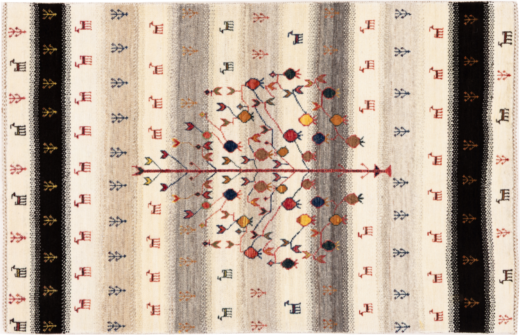 Dit prachtige tapijt is een Perzisch Gabbeh-tapijt en behoort daarom tot de hoogste kwaliteit Gabbeh-tapijten. De tapijten worden geknoopt door nomaden of semi-nomaden in Iran volgens traditioneel vakmanschap. De eenvoudige motieven en patronen zijn vooral geïnspireerd op de directe omgeving van de nomaden. Zo zijn er bijvoorbeeld kamelen, bomen of struiken te vinden op de traditionele tapijten. De Perzische Gabbeh-tapijten zijn gemaakt van wol van lokaal opgefokte kuddes schapen. De wol wordt dus meestal nog met de hand gesponnen. Elk van deze oosterse tapijten belichaamt dus een uniek karakter van de eeuwenoude cultuur.