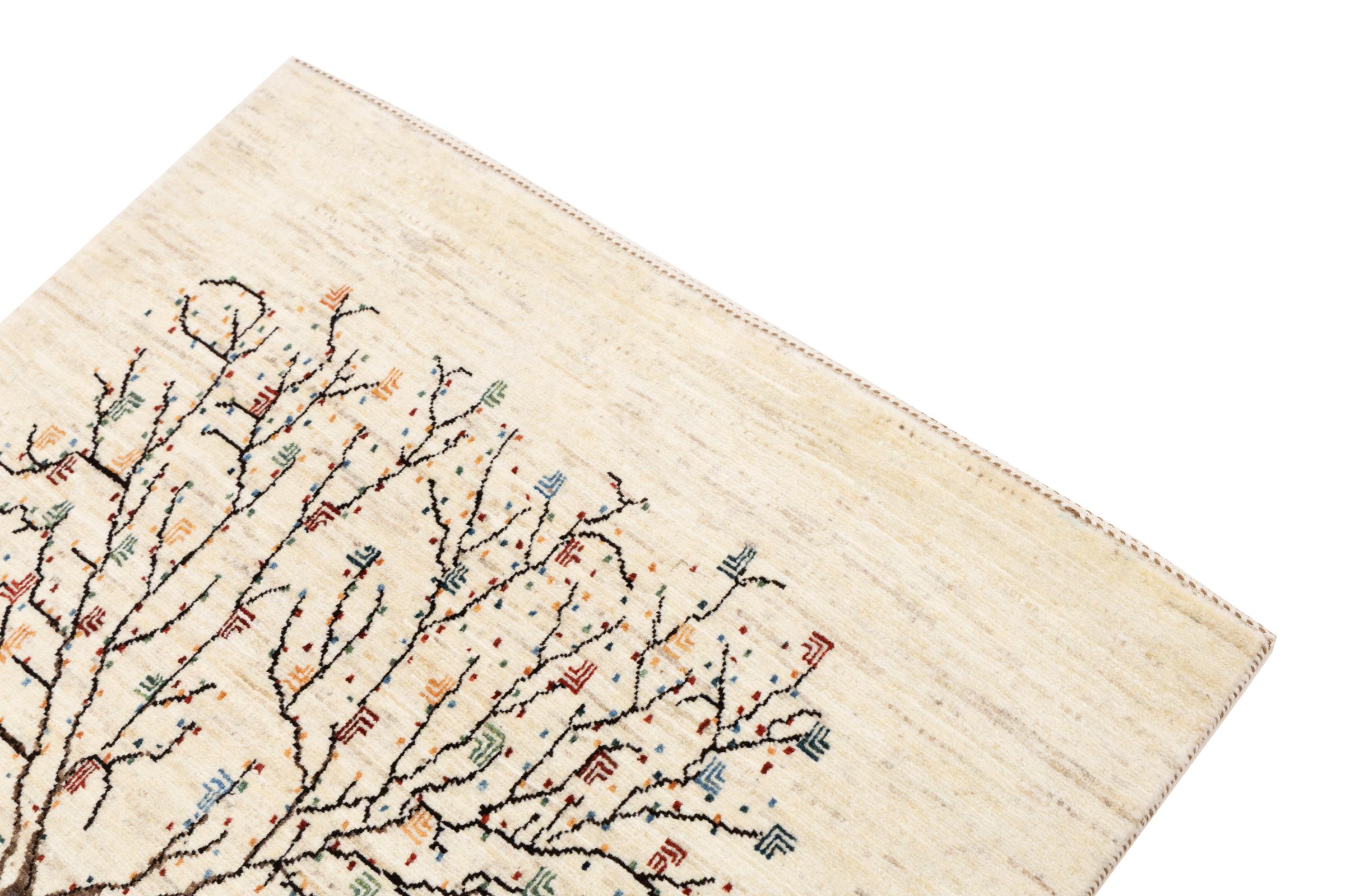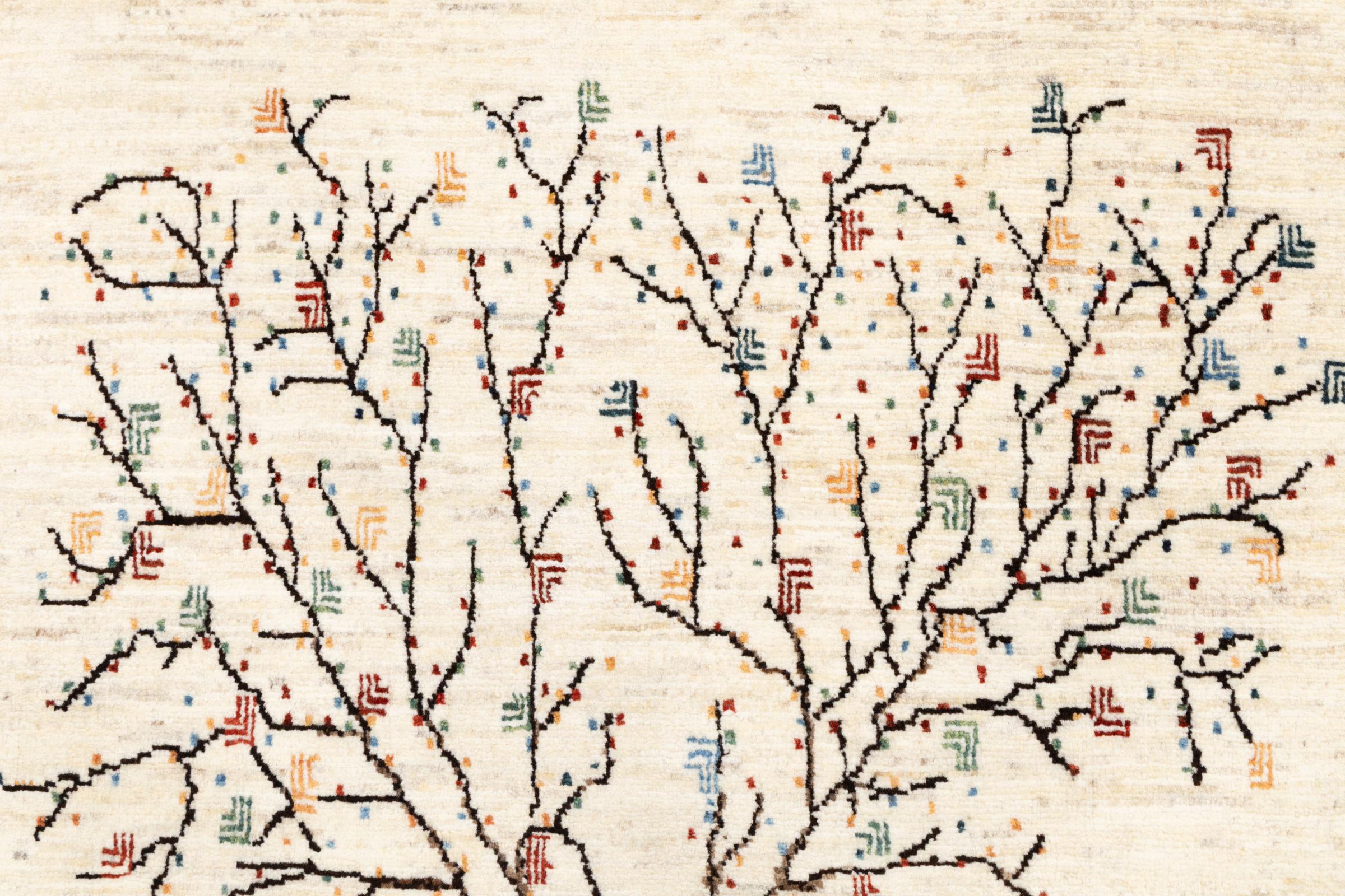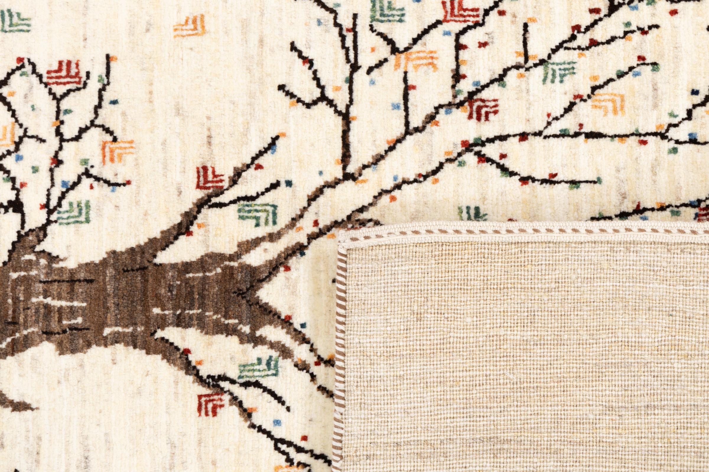 Dit prachtige tapijt is een Perzisch Gabbeh-tapijt en behoort daarom tot de hoogste kwaliteit Gabbeh-tapijten. De tapijten worden geknoopt door nomaden of semi-nomaden in Iran volgens traditioneel vakmanschap. De eenvoudige motieven en patronen zijn vooral geïnspireerd op de directe omgeving van de nomaden. Zo zijn er bijvoorbeeld kamelen, bomen of struiken te vinden op de traditionele tapijten. De Perzische Gabbeh-tapijten zijn gemaakt van wol van lokaal opgefokte kuddes schapen. De wol wordt dus meestal nog met de hand gesponnen. Elk van deze oosterse tapijten belichaamt dus een uniek karakter van de eeuwenoude cultuur.