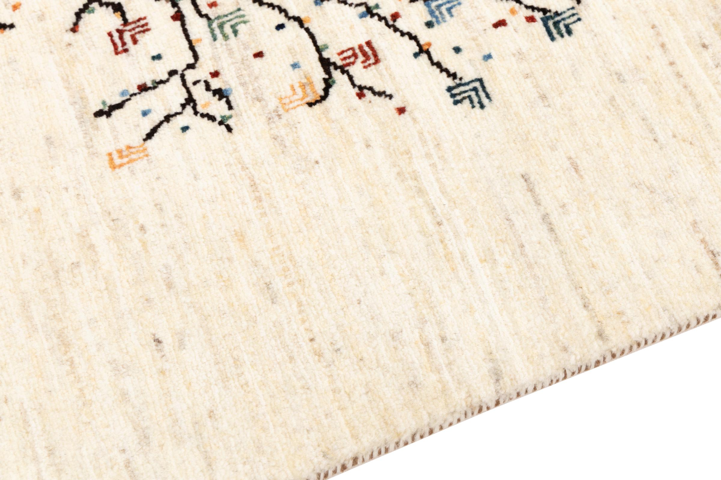 Een verfijning van de al bekende Gabbeh-tapijten: Dit is deze Perzische Gabbeh Loribaft. Het weet indruk te maken met zijn fijnere weefsel en prachtige ontwerp. Het werd door Loren in het zuiden van Perzië met de hand geknoopt van de beste handgesponnen schapenwol. Voor het verven van de wol worden uitsluitend pure plantaardige kleurstoffen gebruikt. Met dit vloerkleed haal je de hoogste standaard van een Gabbeh-tapijt in huis.