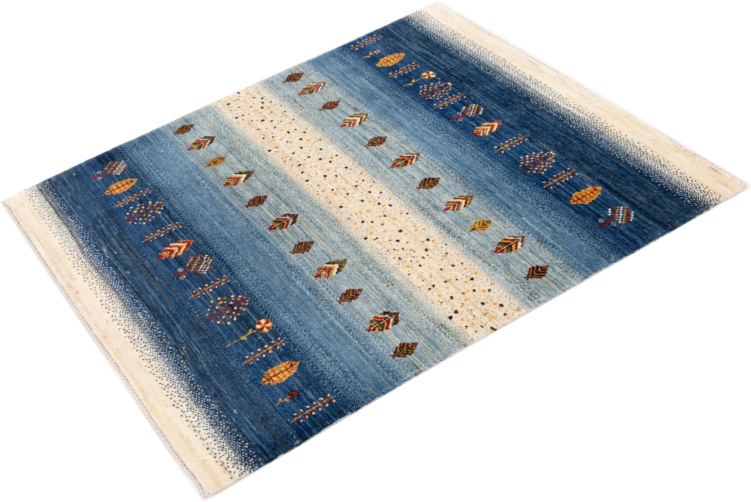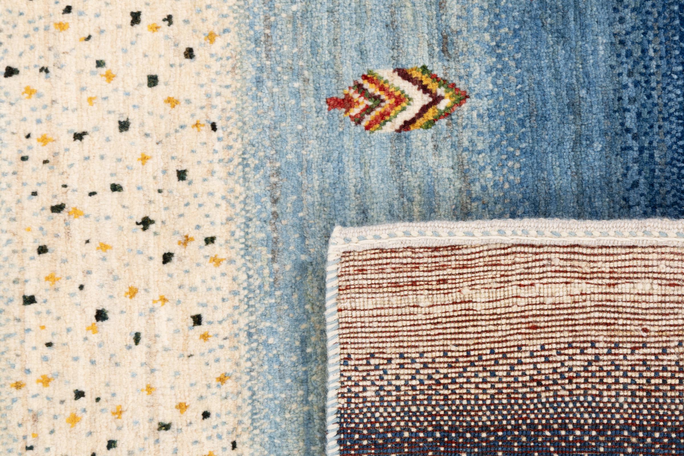 Een verfijning van de al bekende Gabbeh-tapijten: Dit is deze Perzische Gabbeh Loribaft. Het weet indruk te maken met zijn fijnere weefsel en prachtige ontwerp. Het werd door Loren in het zuiden van Perzië met de hand geknoopt van de beste handgesponnen schapenwol. Voor het verven van de wol worden uitsluitend pure plantaardige kleurstoffen gebruikt. Met dit vloerkleed haal je de hoogste standaard van een Gabbeh-tapijt in huis.