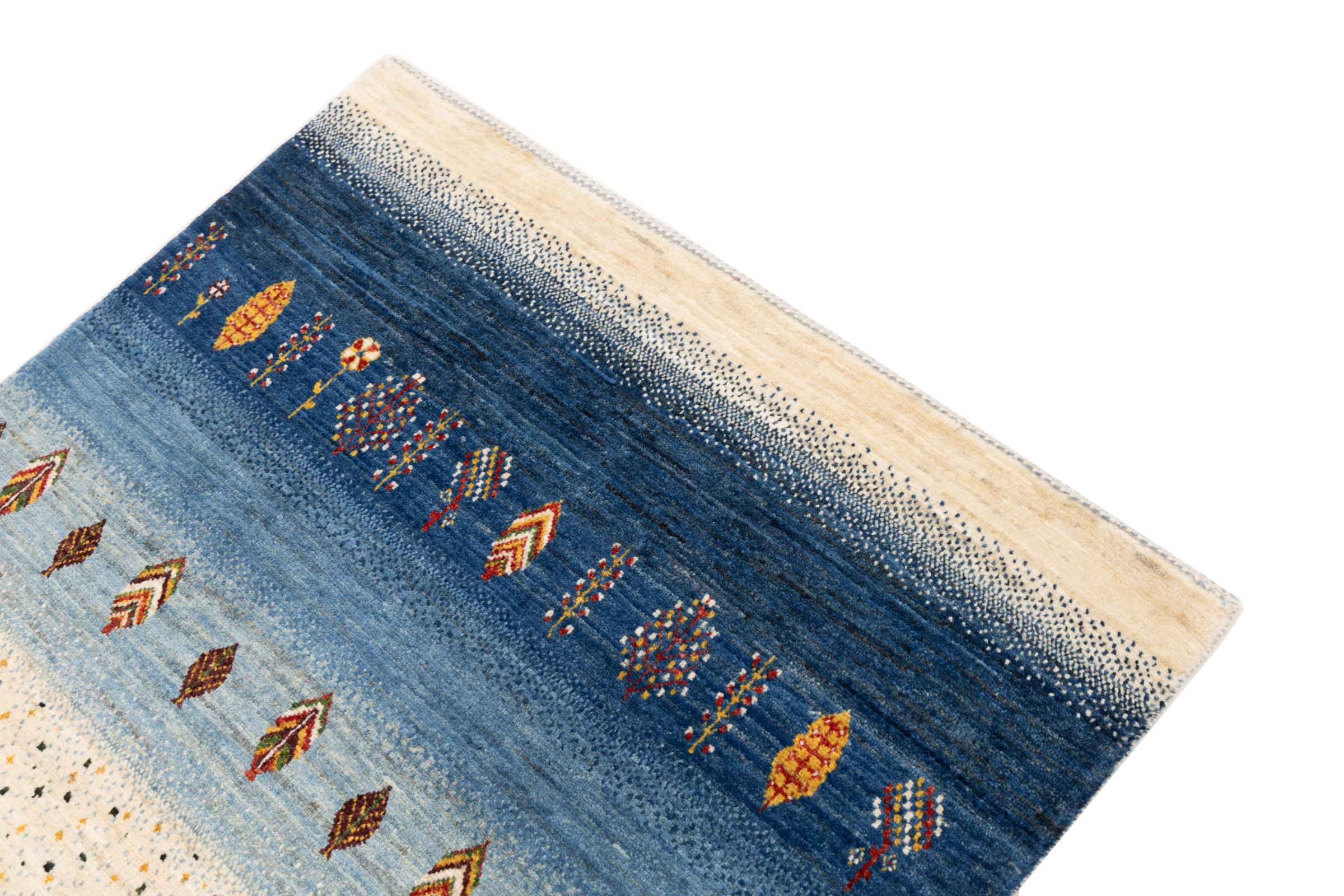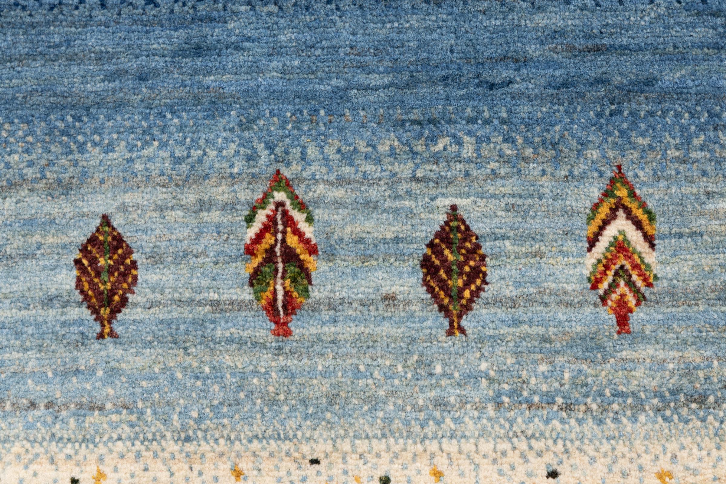 Dit prachtige tapijt is een Perzisch Gabbeh-tapijt en behoort daarom tot de hoogste kwaliteit Gabbeh-tapijten. De tapijten worden geknoopt door nomaden of semi-nomaden in Iran volgens traditioneel vakmanschap. De eenvoudige motieven en patronen zijn vooral geïnspireerd op de directe omgeving van de nomaden. Zo zijn er bijvoorbeeld kamelen, bomen of struiken te vinden op de traditionele tapijten. De Perzische Gabbeh-tapijten zijn gemaakt van wol van lokaal opgefokte kuddes schapen. De wol wordt dus meestal nog met de hand gesponnen. Elk van deze oosterse tapijten belichaamt dus een uniek karakter van de eeuwenoude cultuur.