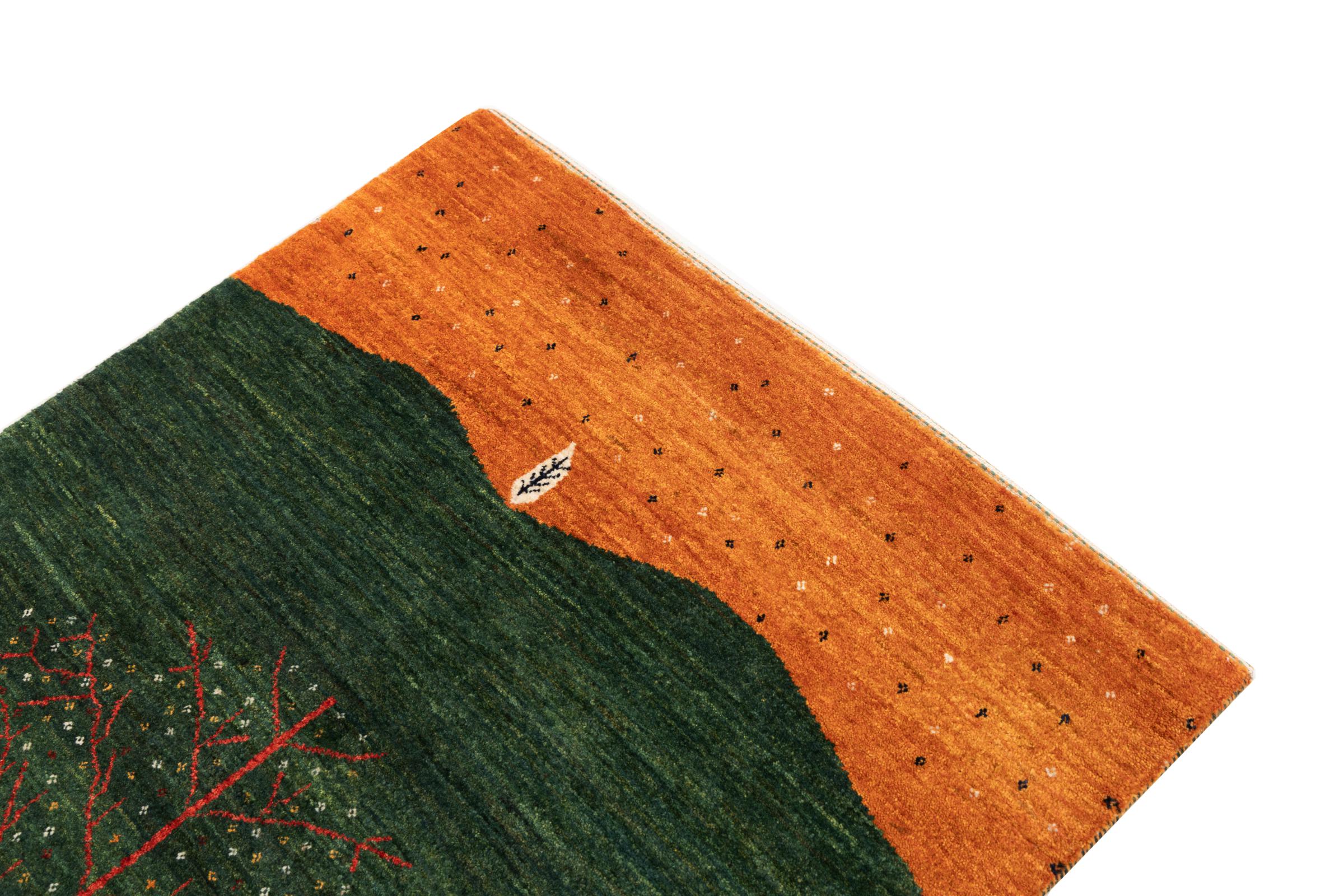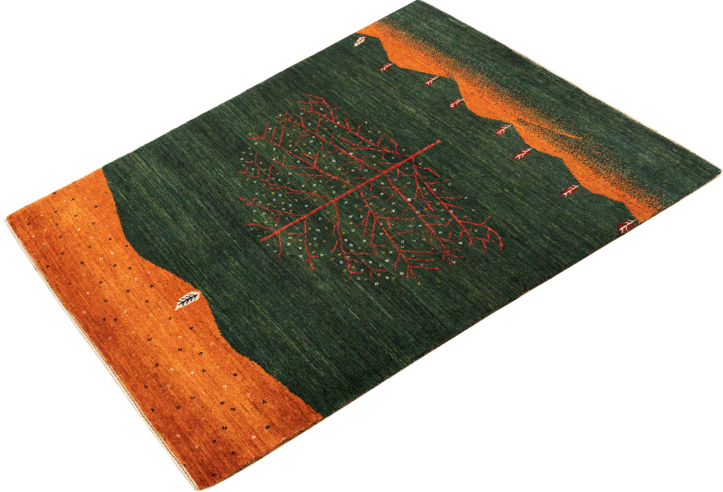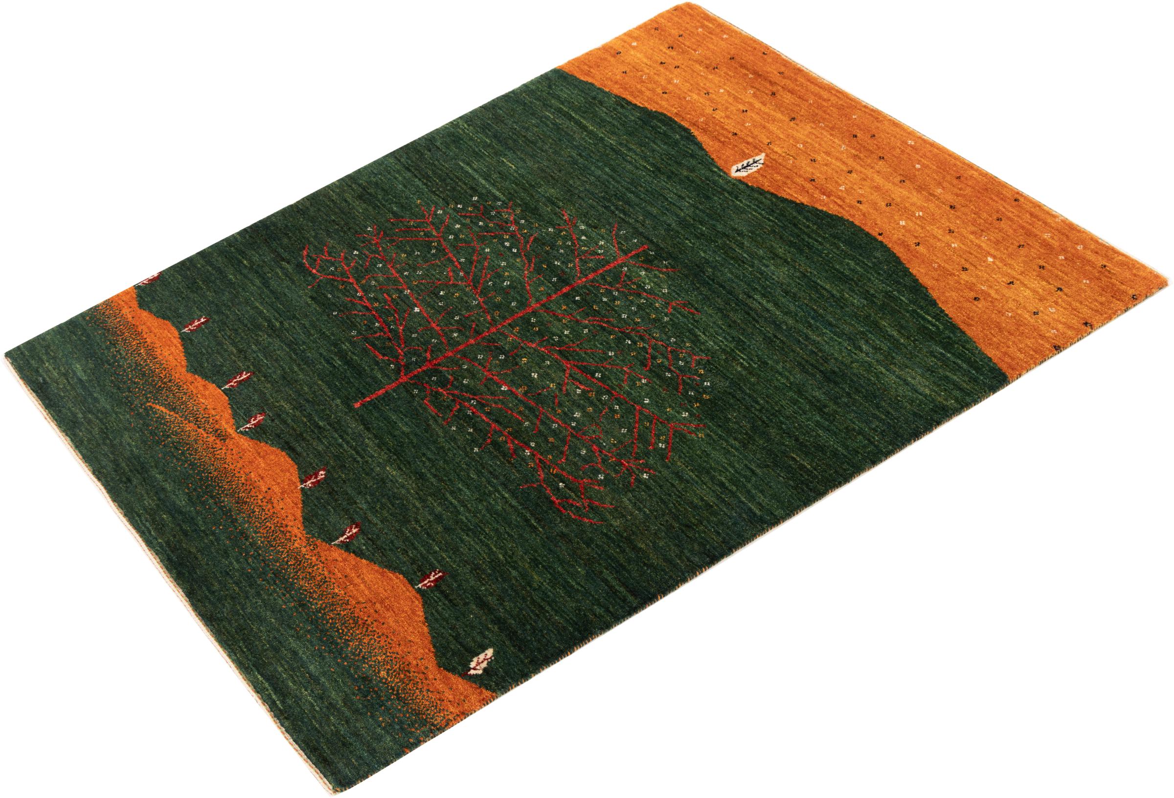 Dit prachtige tapijt is een Perzisch Gabbeh-tapijt en behoort daarom tot de hoogste kwaliteit Gabbeh-tapijten. De tapijten worden geknoopt door nomaden of semi-nomaden in Iran volgens traditioneel vakmanschap. De eenvoudige motieven en patronen zijn vooral geïnspireerd op de directe omgeving van de nomaden. Zo zijn er bijvoorbeeld kamelen, bomen of struiken te vinden op de traditionele tapijten. De Perzische Gabbeh-tapijten zijn gemaakt van wol van lokaal opgefokte kuddes schapen. De wol wordt dus meestal nog met de hand gesponnen. Elk van deze oosterse tapijten belichaamt dus een uniek karakter van de eeuwenoude cultuur.