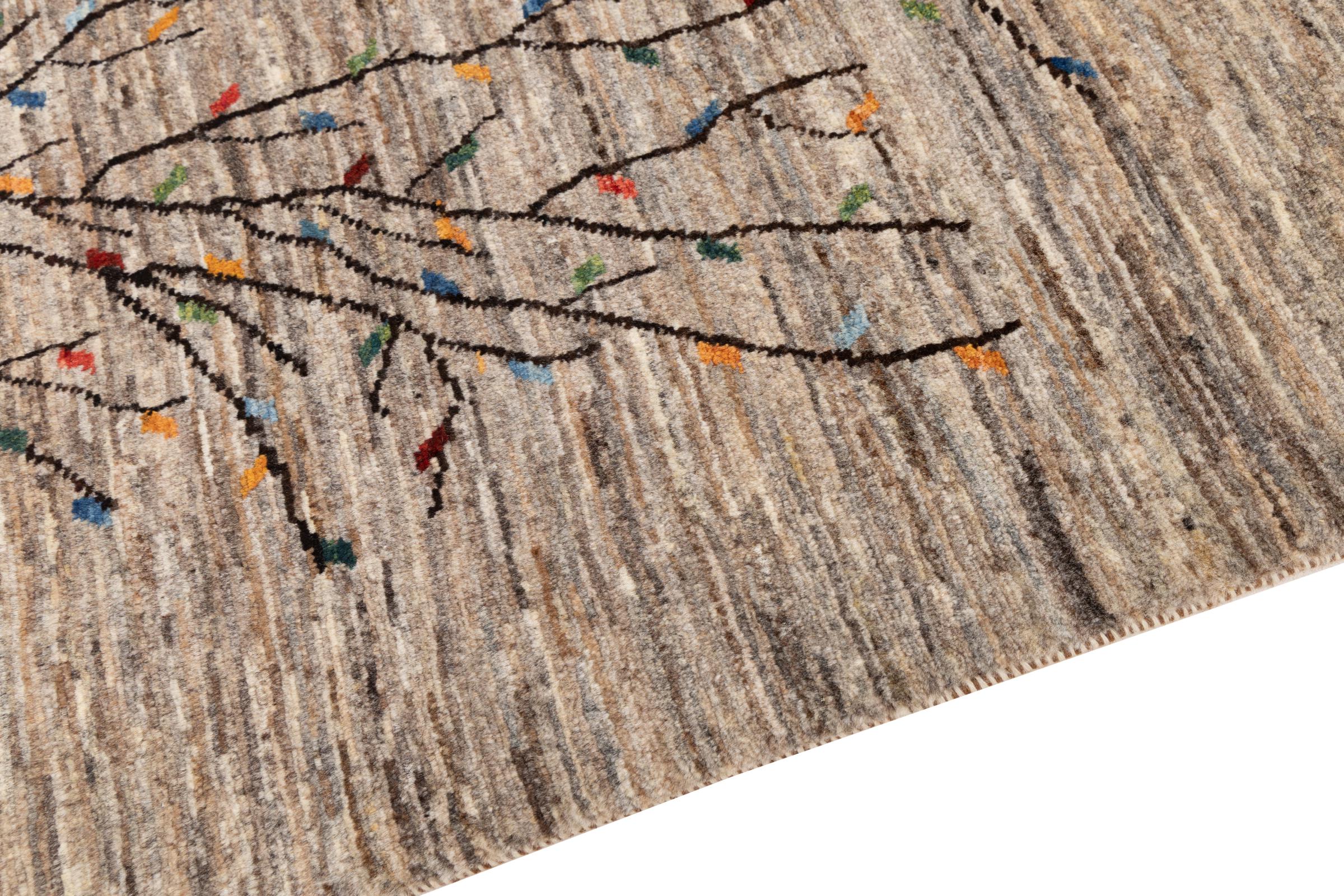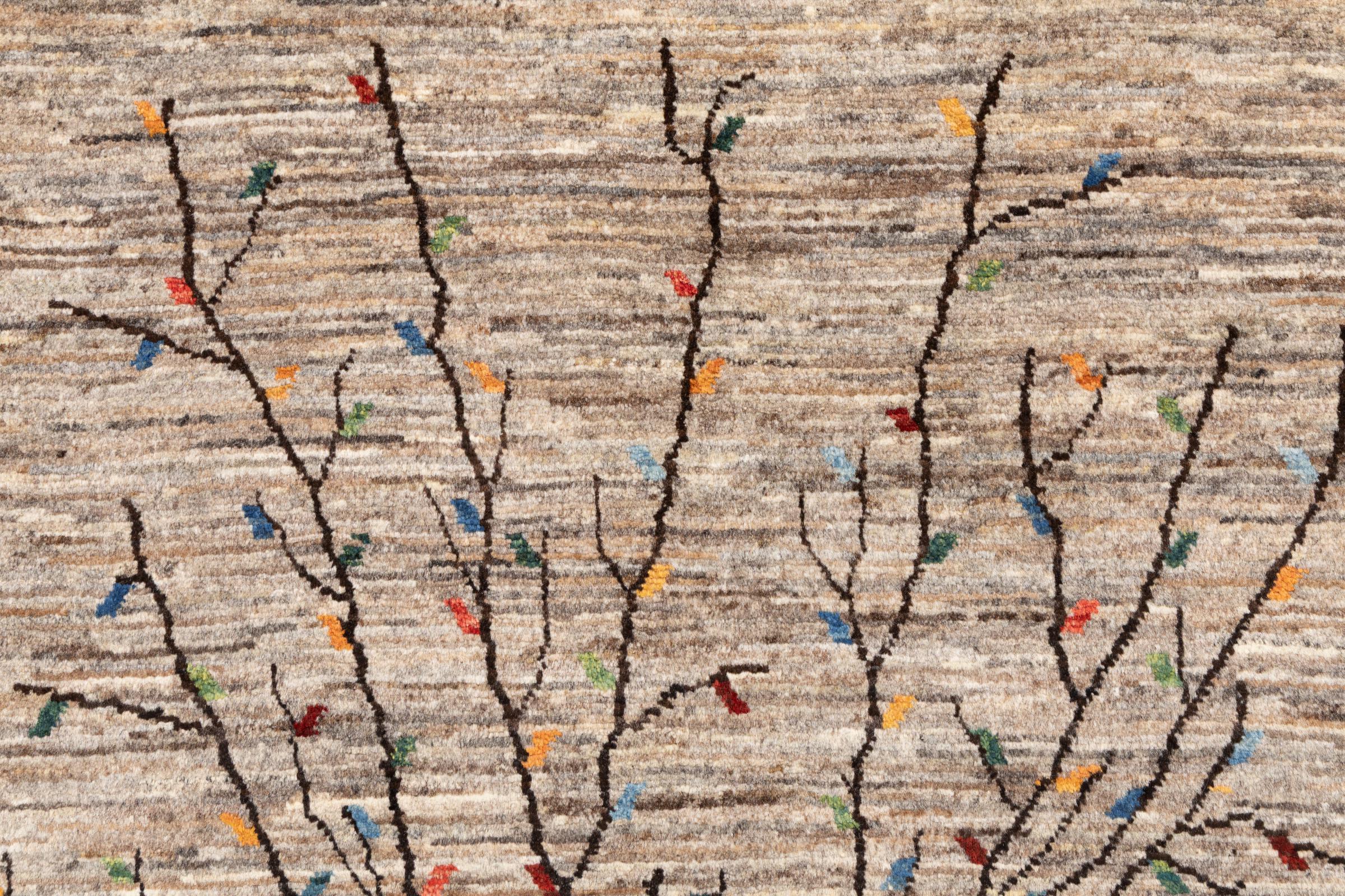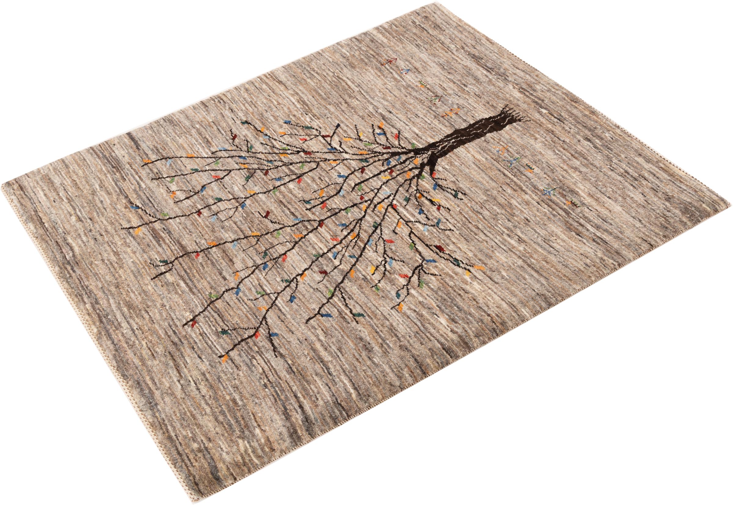 Dit prachtige tapijt is een Perzisch Gabbeh-tapijt en behoort daarom tot de hoogste kwaliteit Gabbeh-tapijten. De tapijten worden geknoopt door nomaden of semi-nomaden in Iran volgens traditioneel vakmanschap. De eenvoudige motieven en patronen zijn vooral geïnspireerd op de directe omgeving van de nomaden. Zo zijn er bijvoorbeeld kamelen, bomen of struiken te vinden op de traditionele tapijten. De Perzische Gabbeh-tapijten zijn gemaakt van wol van lokaal opgefokte kuddes schapen. De wol wordt dus meestal nog met de hand gesponnen. Elk van deze oosterse tapijten belichaamt dus een uniek karakter van de eeuwenoude cultuur.