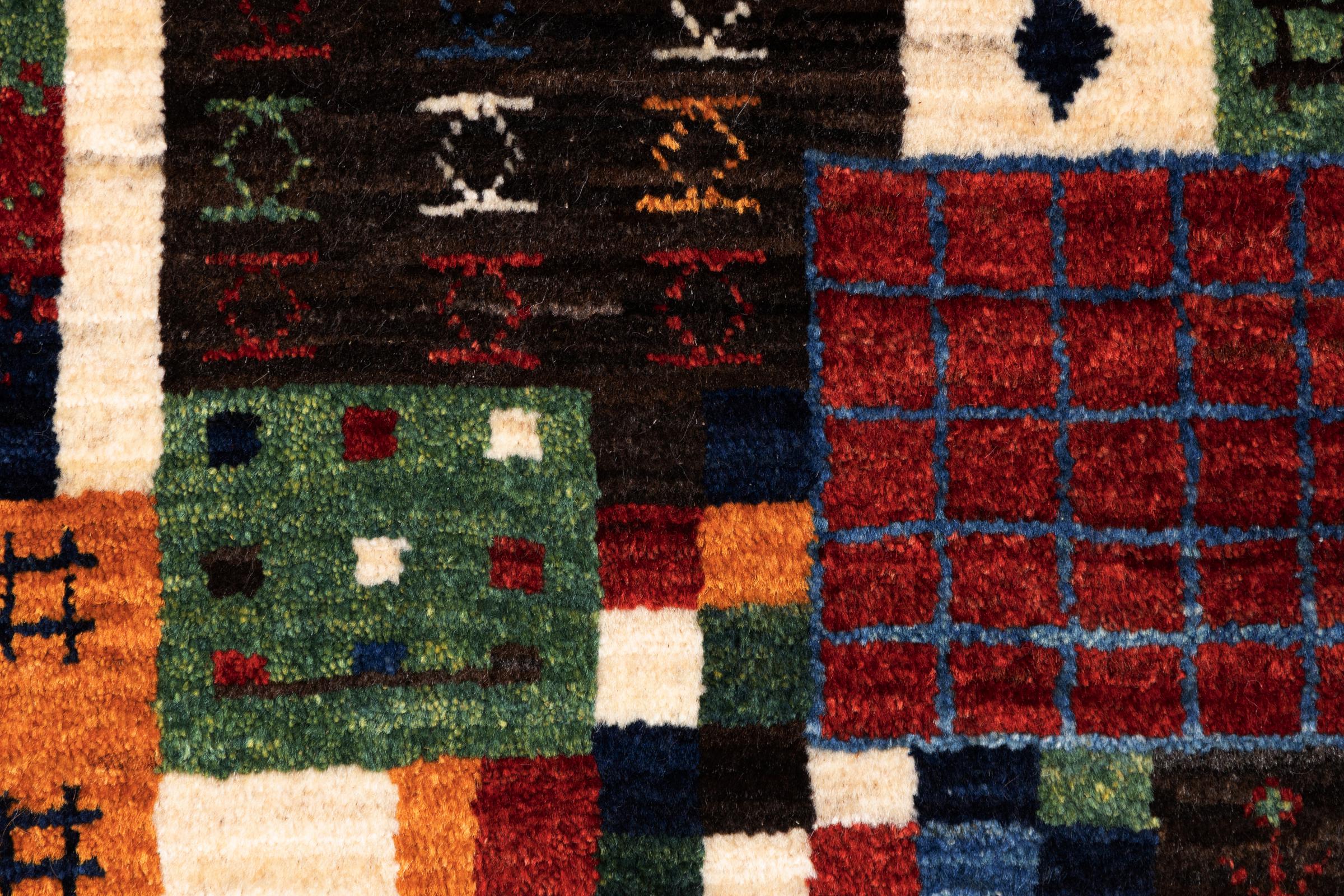 Een verfijning van de al bekende Gabbeh-tapijten: Dit is deze Perzische Gabbeh Loribaft. Het weet indruk te maken met zijn fijnere weefsel en prachtige ontwerp. Het werd door Loren in het zuiden van Perzië met de hand geknoopt van de beste handgesponnen schapenwol. Voor het verven van de wol worden uitsluitend pure plantaardige kleurstoffen gebruikt. Met dit vloerkleed haal je de hoogste standaard van een Gabbeh-tapijt in huis.