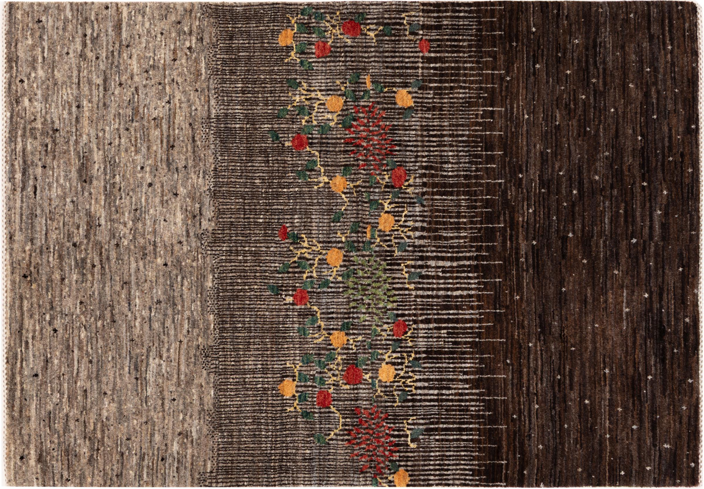 Dit prachtige tapijt is een Perzisch Gabbeh-tapijt en behoort daarom tot de hoogste kwaliteit Gabbeh-tapijten. De tapijten worden geknoopt door nomaden of semi-nomaden in Iran volgens traditioneel vakmanschap. De eenvoudige motieven en patronen zijn vooral geïnspireerd op de directe omgeving van de nomaden. Zo zijn er bijvoorbeeld kamelen, bomen of struiken te vinden op de traditionele tapijten. De Perzische Gabbeh-tapijten zijn gemaakt van wol van lokaal opgefokte kuddes schapen. De wol wordt dus meestal nog met de hand gesponnen. Elk van deze oosterse tapijten belichaamt dus een uniek karakter van de eeuwenoude cultuur.