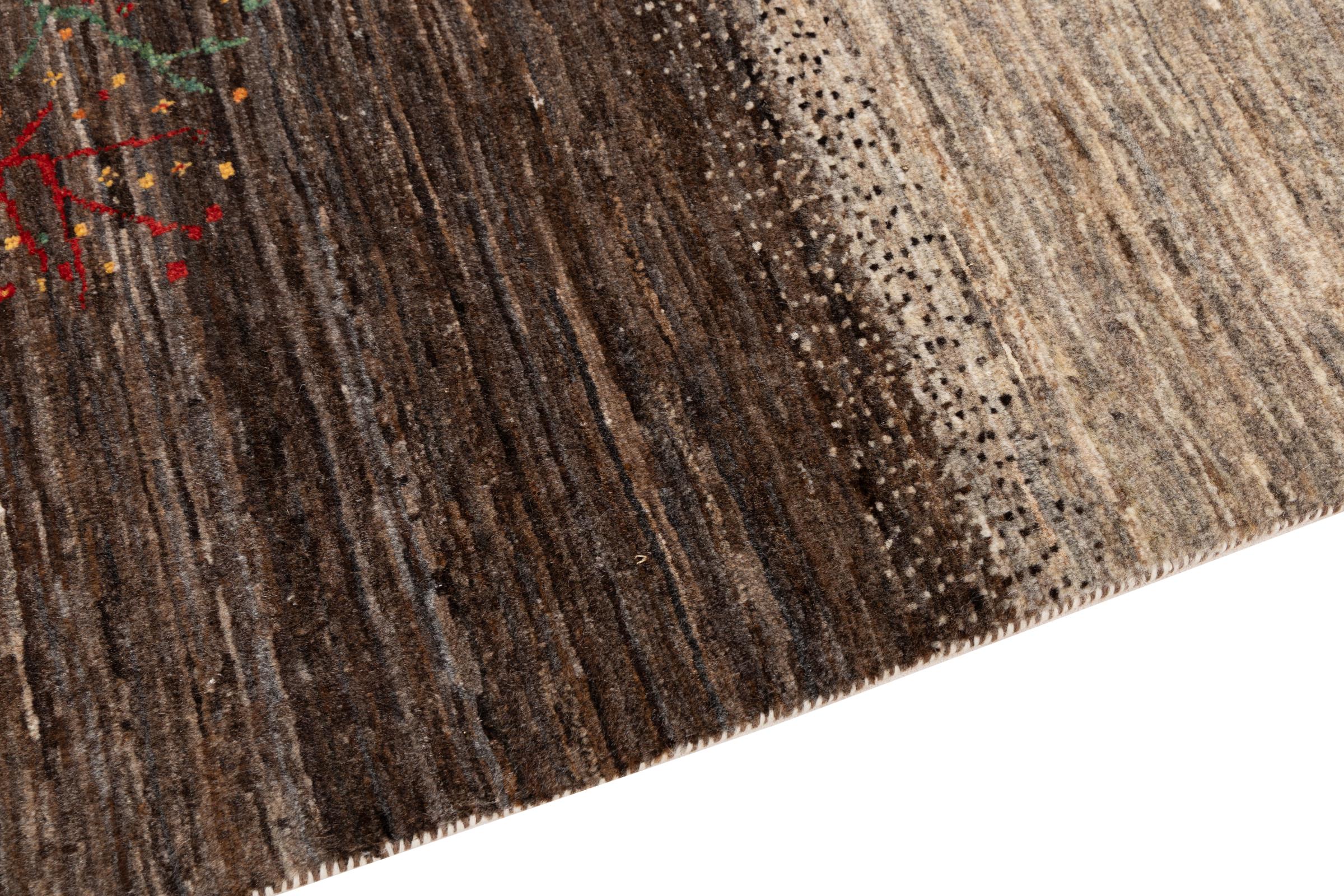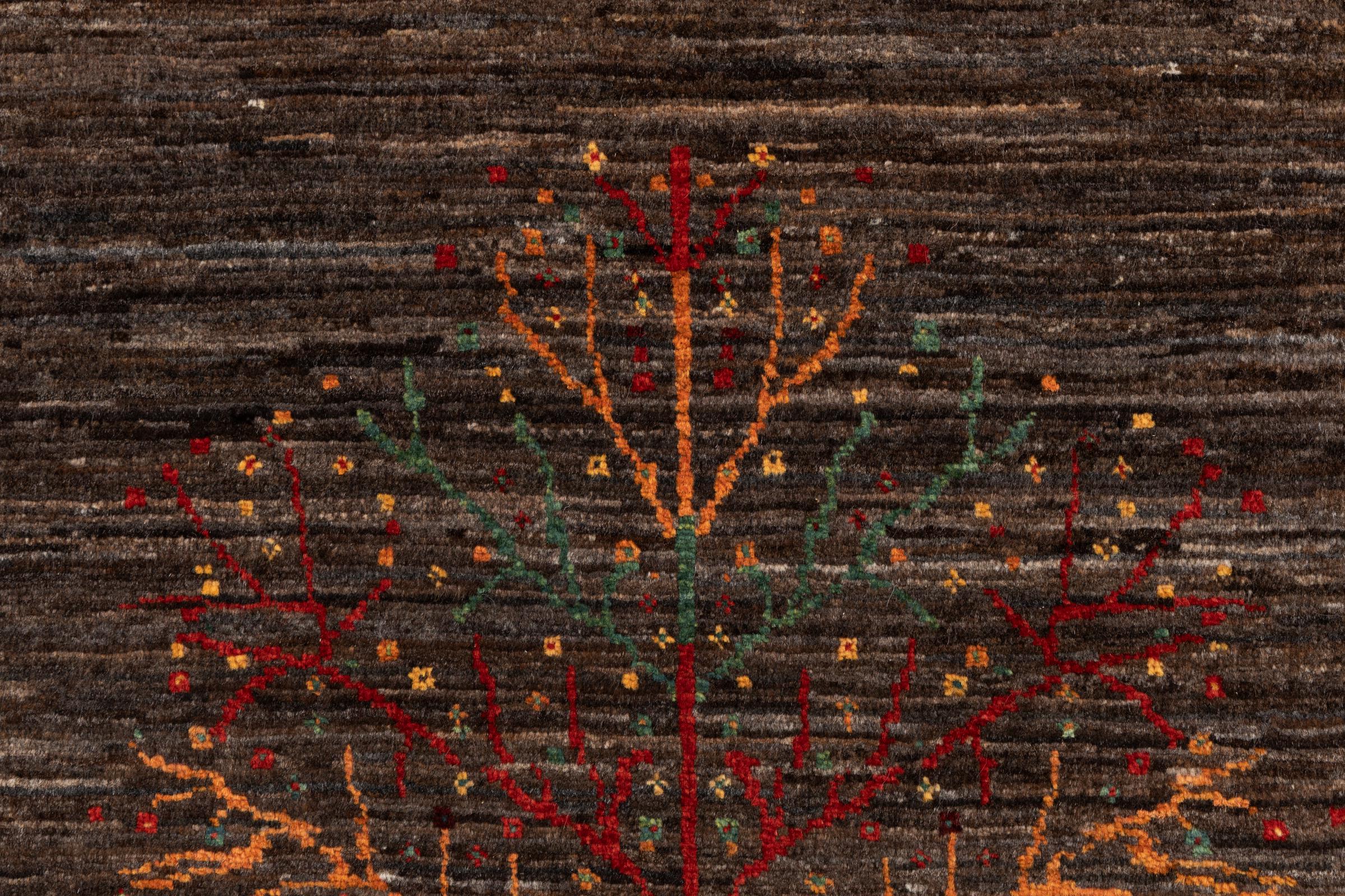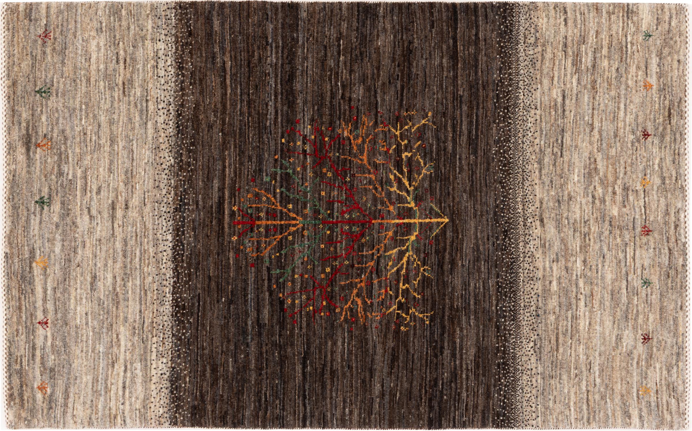 Dit prachtige tapijt is een Perzisch Gabbeh-tapijt en behoort daarom tot de hoogste kwaliteit Gabbeh-tapijten. De tapijten worden geknoopt door nomaden of semi-nomaden in Iran volgens traditioneel vakmanschap. De eenvoudige motieven en patronen zijn vooral geïnspireerd op de directe omgeving van de nomaden. Zo zijn er bijvoorbeeld kamelen, bomen of struiken te vinden op de traditionele tapijten. De Perzische Gabbeh-tapijten zijn gemaakt van wol van lokaal opgefokte kuddes schapen. De wol wordt dus meestal nog met de hand gesponnen. Elk van deze oosterse tapijten belichaamt dus een uniek karakter van de eeuwenoude cultuur.