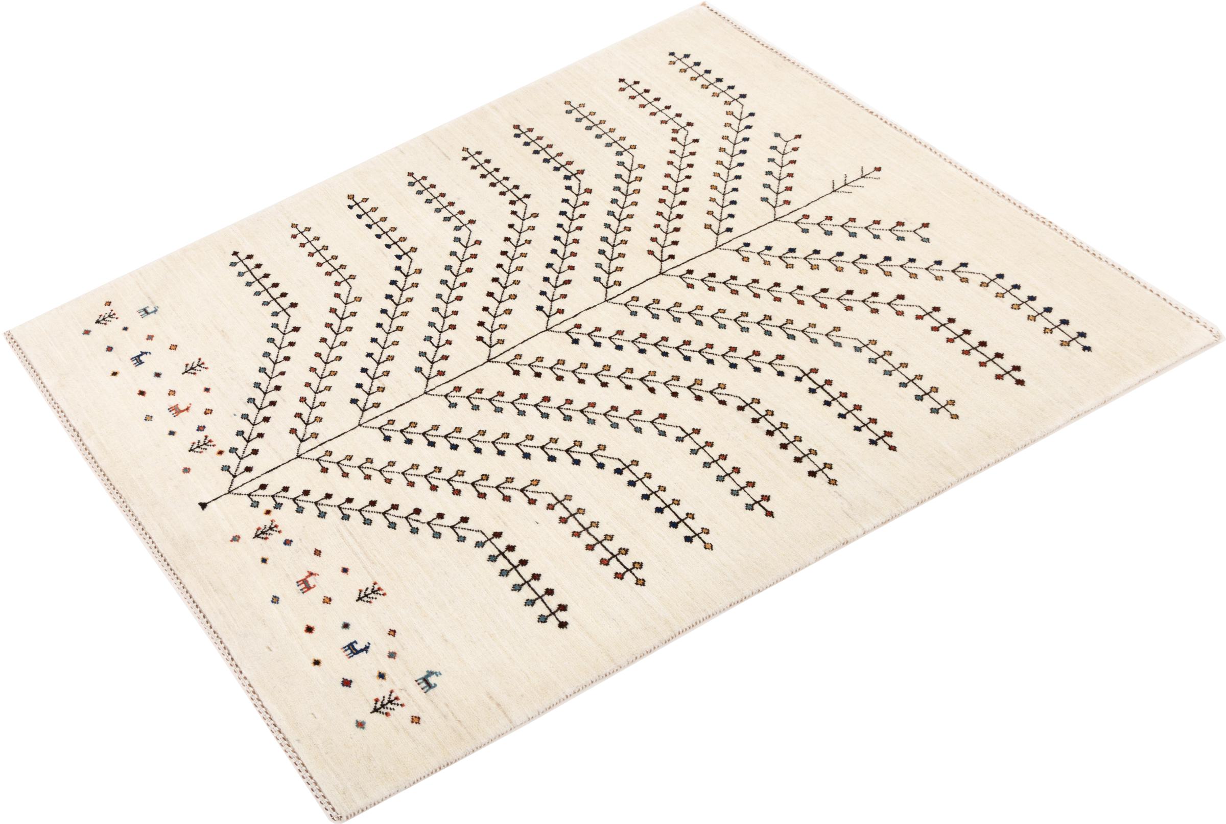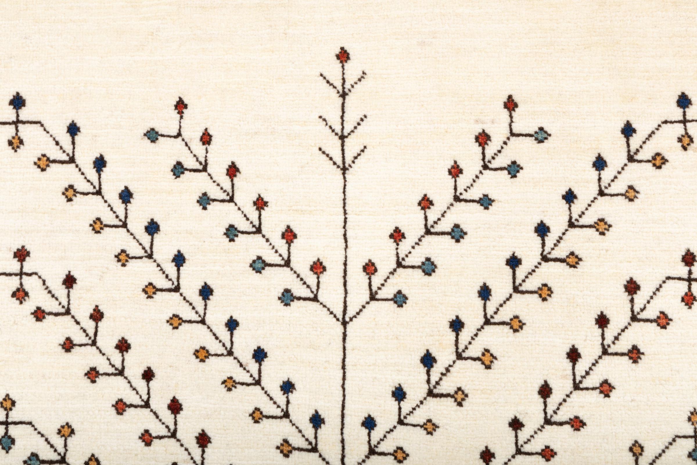 Dit prachtige tapijt is een Perzisch Gabbeh-tapijt en behoort daarom tot de hoogste kwaliteit Gabbeh-tapijten. De tapijten worden geknoopt door nomaden of semi-nomaden in Iran volgens traditioneel vakmanschap. De eenvoudige motieven en patronen zijn vooral geïnspireerd op de directe omgeving van de nomaden. Zo zijn er bijvoorbeeld kamelen, bomen of struiken te vinden op de traditionele tapijten. De Perzische Gabbeh-tapijten zijn gemaakt van wol van lokaal opgefokte kuddes schapen. De wol wordt dus meestal nog met de hand gesponnen. Elk van deze oosterse tapijten belichaamt dus een uniek karakter van de eeuwenoude cultuur.