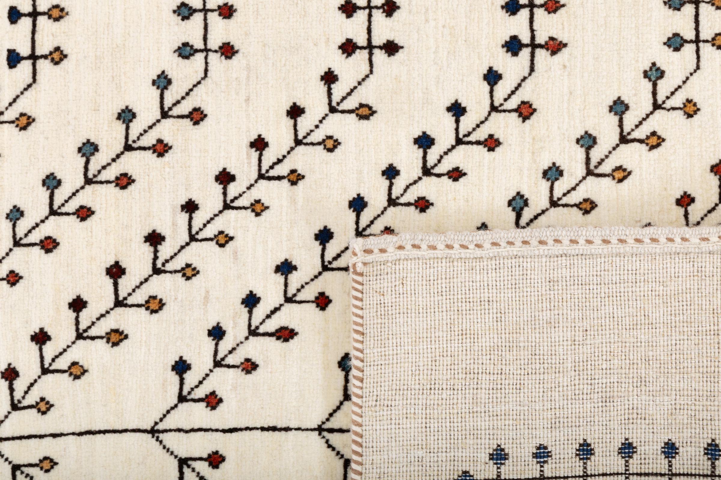 Een verfijning van de al bekende Gabbeh-tapijten: Dit is deze Perzische Gabbeh Loribaft. Het weet indruk te maken met zijn fijnere weefsel en prachtige ontwerp. Het werd door Loren in het zuiden van Perzië met de hand geknoopt van de beste handgesponnen schapenwol. Voor het verven van de wol worden uitsluitend pure plantaardige kleurstoffen gebruikt. Met dit vloerkleed haal je de hoogste standaard van een Gabbeh-tapijt in huis.
