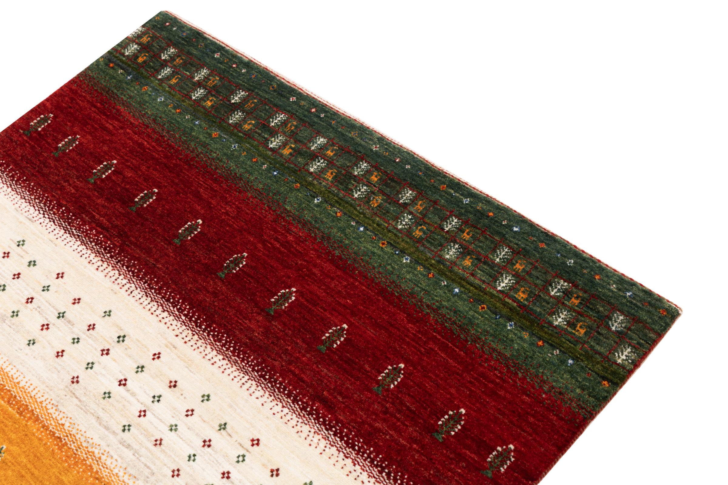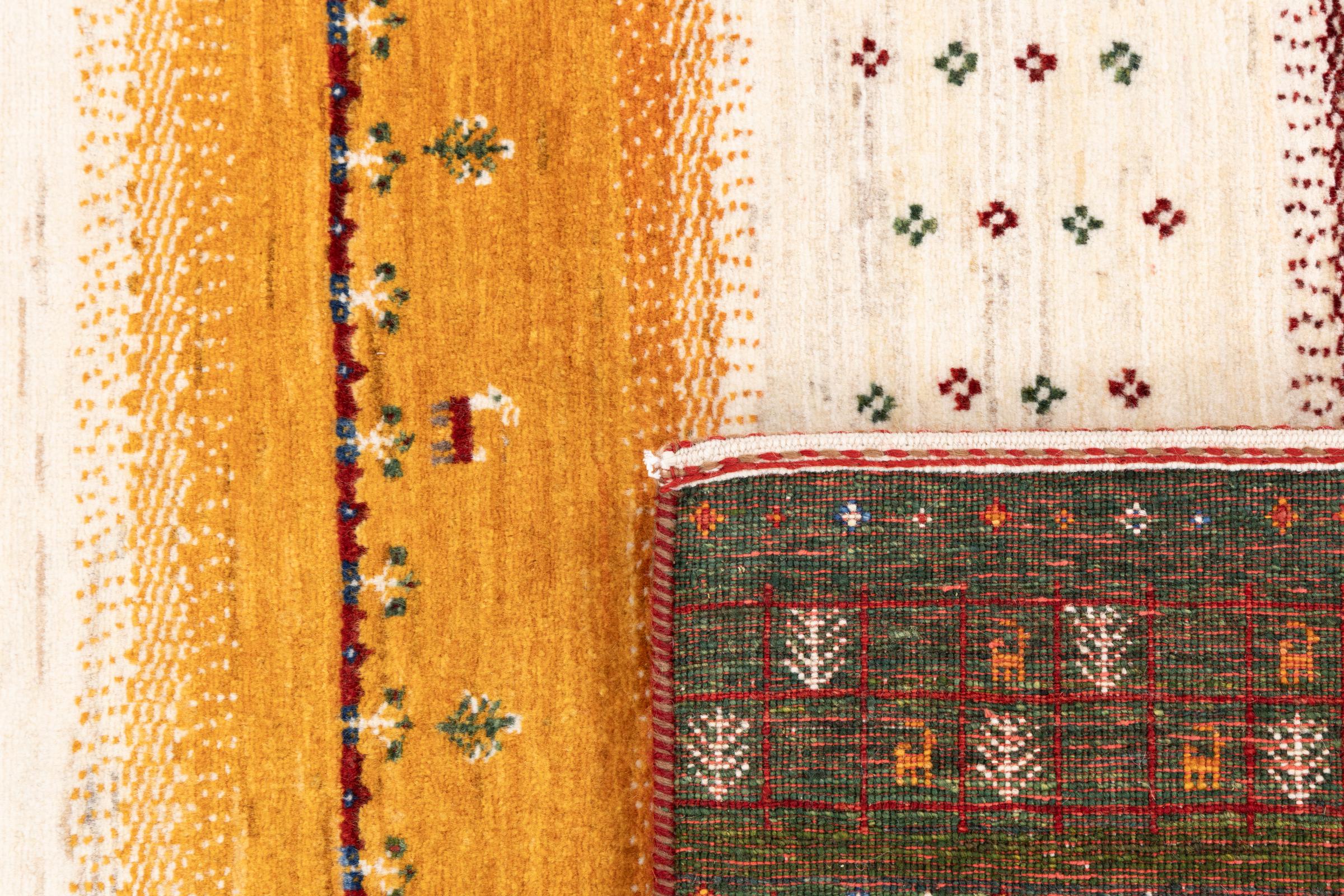 Een verfijning van de al bekende Gabbeh-tapijten: Dit is deze Perzische Gabbeh Loribaft. Het weet indruk te maken met zijn fijnere weefsel en prachtige ontwerp. Het werd door Loren in het zuiden van Perzië met de hand geknoopt van de beste handgesponnen schapenwol. Voor het verven van de wol worden uitsluitend pure plantaardige kleurstoffen gebruikt. Met dit vloerkleed haal je de hoogste standaard van een Gabbeh-tapijt in huis.