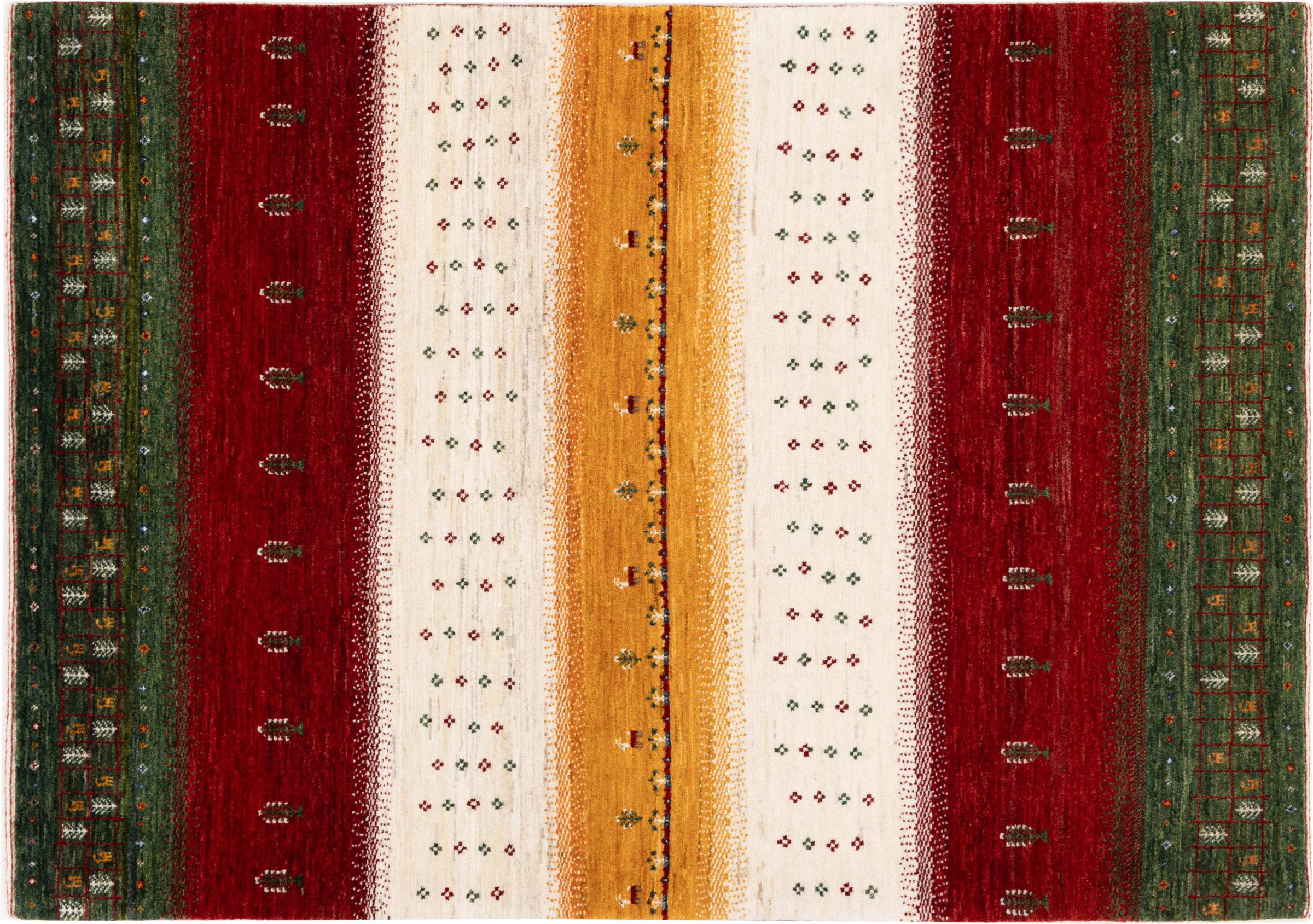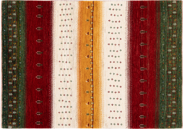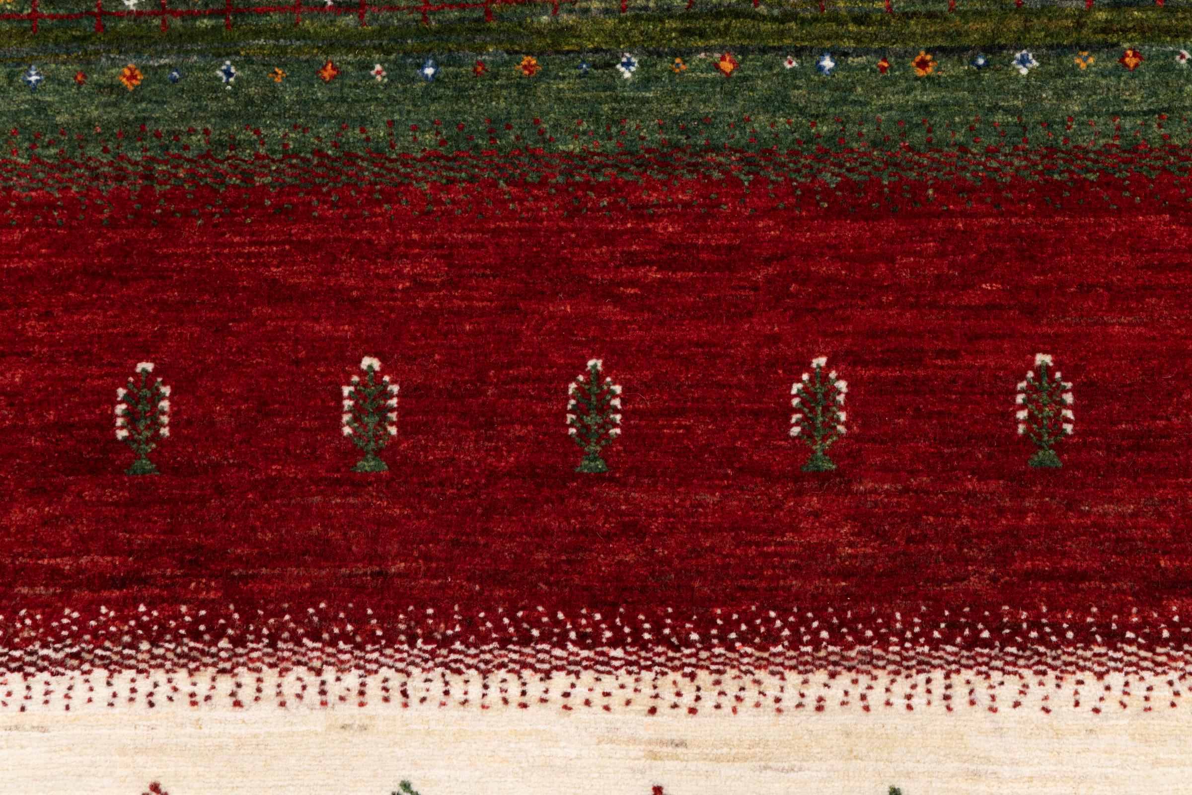 Dit prachtige tapijt is een Perzisch Gabbeh-tapijt en behoort daarom tot de hoogste kwaliteit Gabbeh-tapijten. De tapijten worden geknoopt door nomaden of semi-nomaden in Iran volgens traditioneel vakmanschap. De eenvoudige motieven en patronen zijn vooral geïnspireerd op de directe omgeving van de nomaden. Zo zijn er bijvoorbeeld kamelen, bomen of struiken te vinden op de traditionele tapijten. De Perzische Gabbeh-tapijten zijn gemaakt van wol van lokaal opgefokte kuddes schapen. De wol wordt dus meestal nog met de hand gesponnen. Elk van deze oosterse tapijten belichaamt dus een uniek karakter van de eeuwenoude cultuur.