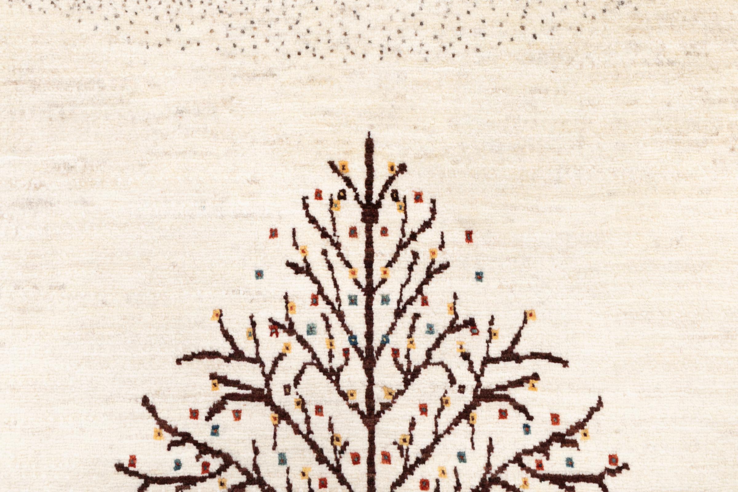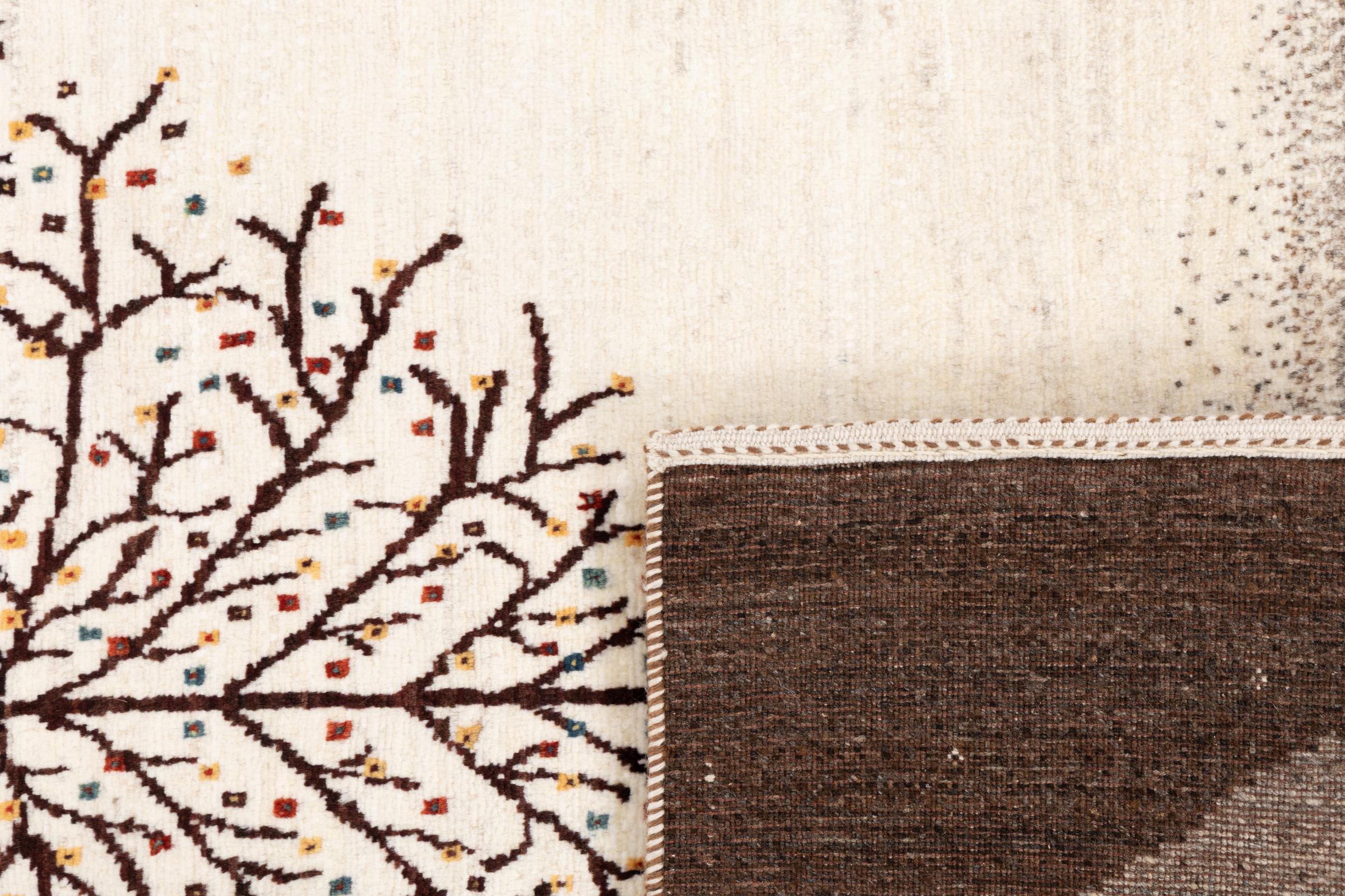 Dit prachtige tapijt is een Perzisch Gabbeh-tapijt en behoort daarom tot de hoogste kwaliteit Gabbeh-tapijten. De tapijten worden geknoopt door nomaden of semi-nomaden in Iran volgens traditioneel vakmanschap. De eenvoudige motieven en patronen zijn vooral geïnspireerd op de directe omgeving van de nomaden. Zo zijn er bijvoorbeeld kamelen, bomen of struiken te vinden op de traditionele tapijten. De Perzische Gabbeh-tapijten zijn gemaakt van wol van lokaal opgefokte kuddes schapen. De wol wordt dus meestal nog met de hand gesponnen. Elk van deze oosterse tapijten belichaamt dus een uniek karakter van de eeuwenoude cultuur.