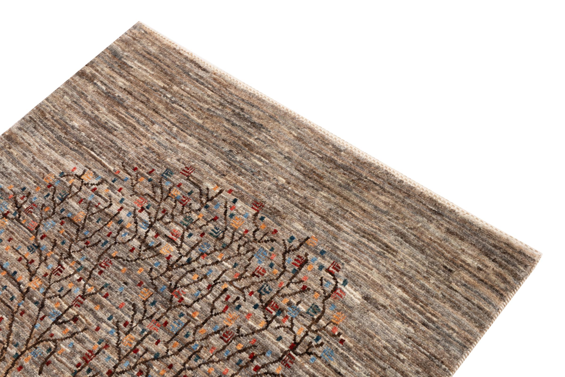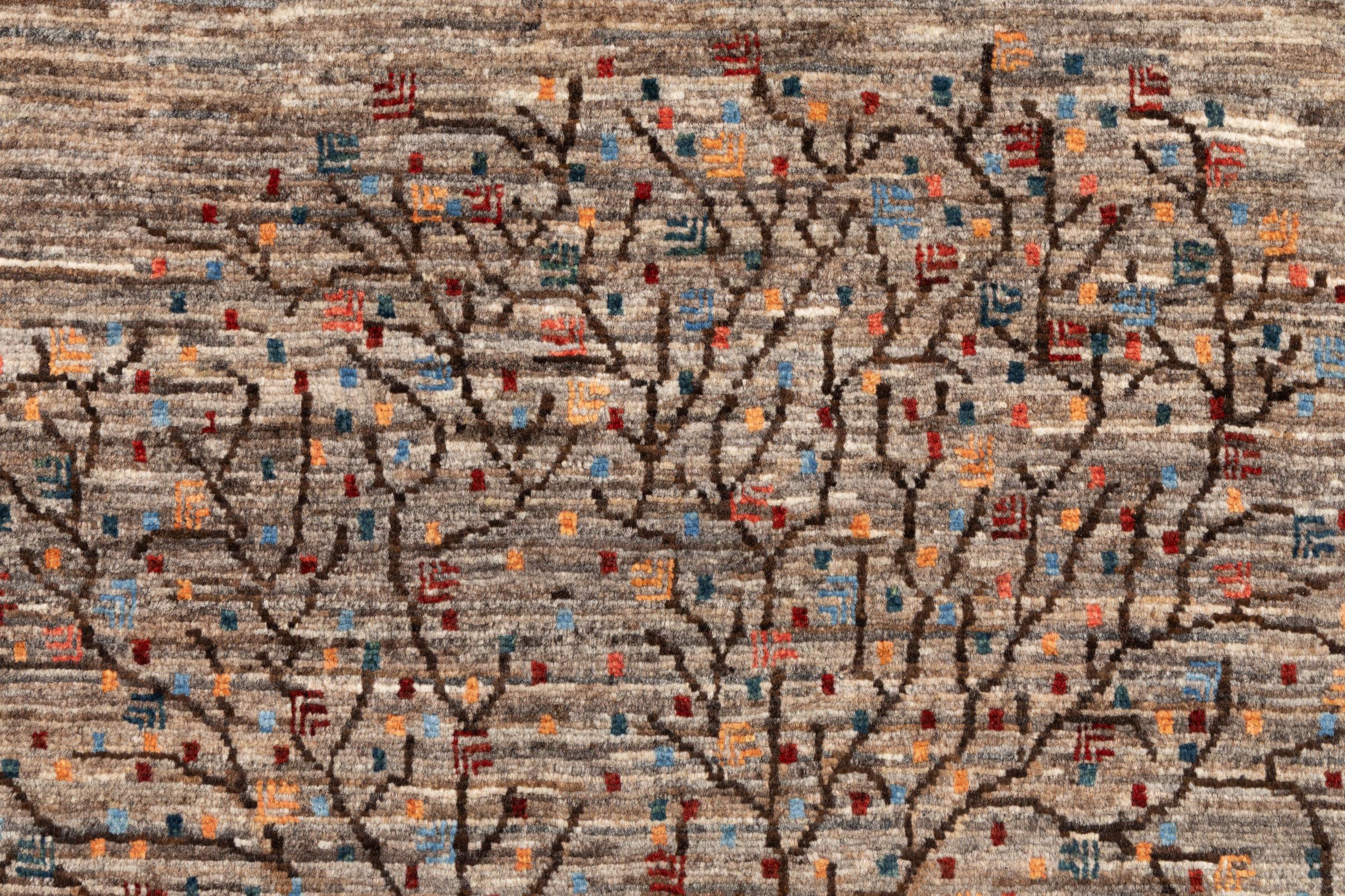 Dit prachtige tapijt is een Perzisch Gabbeh-tapijt en behoort daarom tot de hoogste kwaliteit Gabbeh-tapijten. De tapijten worden geknoopt door nomaden of semi-nomaden in Iran volgens traditioneel vakmanschap. De eenvoudige motieven en patronen zijn vooral geïnspireerd op de directe omgeving van de nomaden. Zo zijn er bijvoorbeeld kamelen, bomen of struiken te vinden op de traditionele tapijten. De Perzische Gabbeh-tapijten zijn gemaakt van wol van lokaal opgefokte kuddes schapen. De wol wordt dus meestal nog met de hand gesponnen. Elk van deze oosterse tapijten belichaamt dus een uniek karakter van de eeuwenoude cultuur.