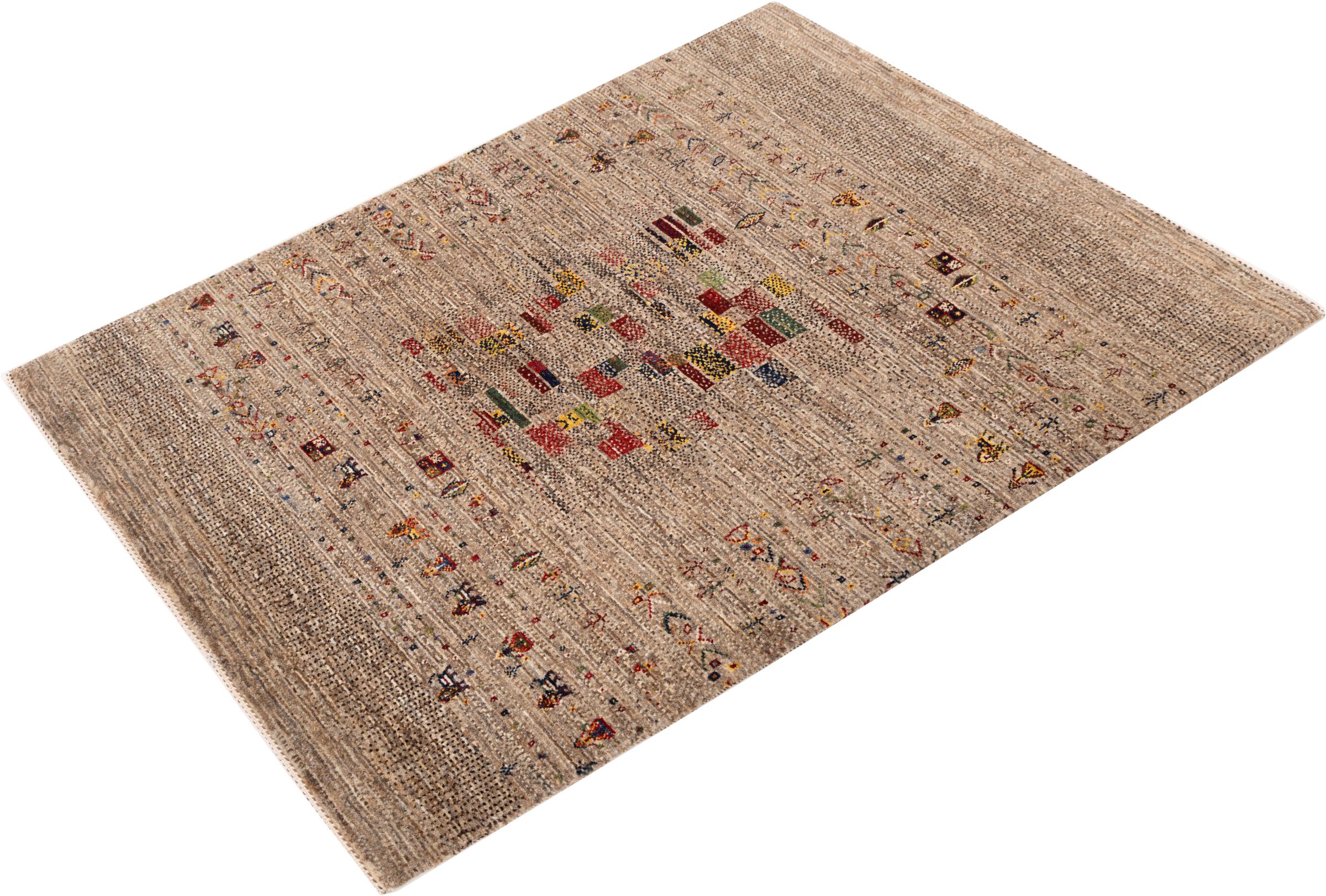 Een verfijning van de al bekende Gabbeh-tapijten: Dit is deze Perzische Gabbeh Loribaft. Het weet indruk te maken met zijn fijnere weefsel en prachtige ontwerp. Het werd door Loren in het zuiden van Perzië met de hand geknoopt van de beste handgesponnen schapenwol. Voor het verven van de wol worden uitsluitend pure plantaardige kleurstoffen gebruikt. Met dit vloerkleed haal je de hoogste standaard van een Gabbeh-tapijt in huis.