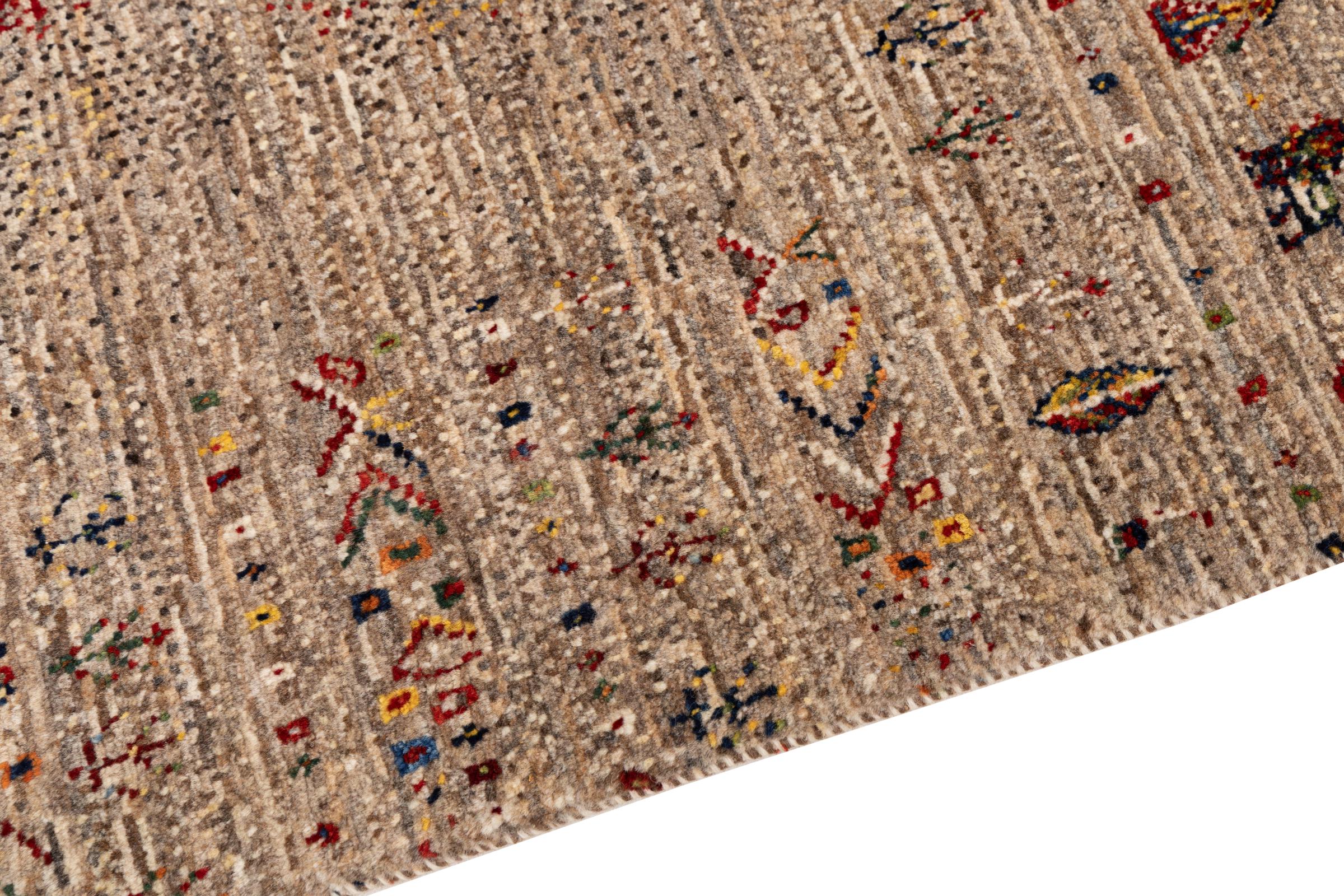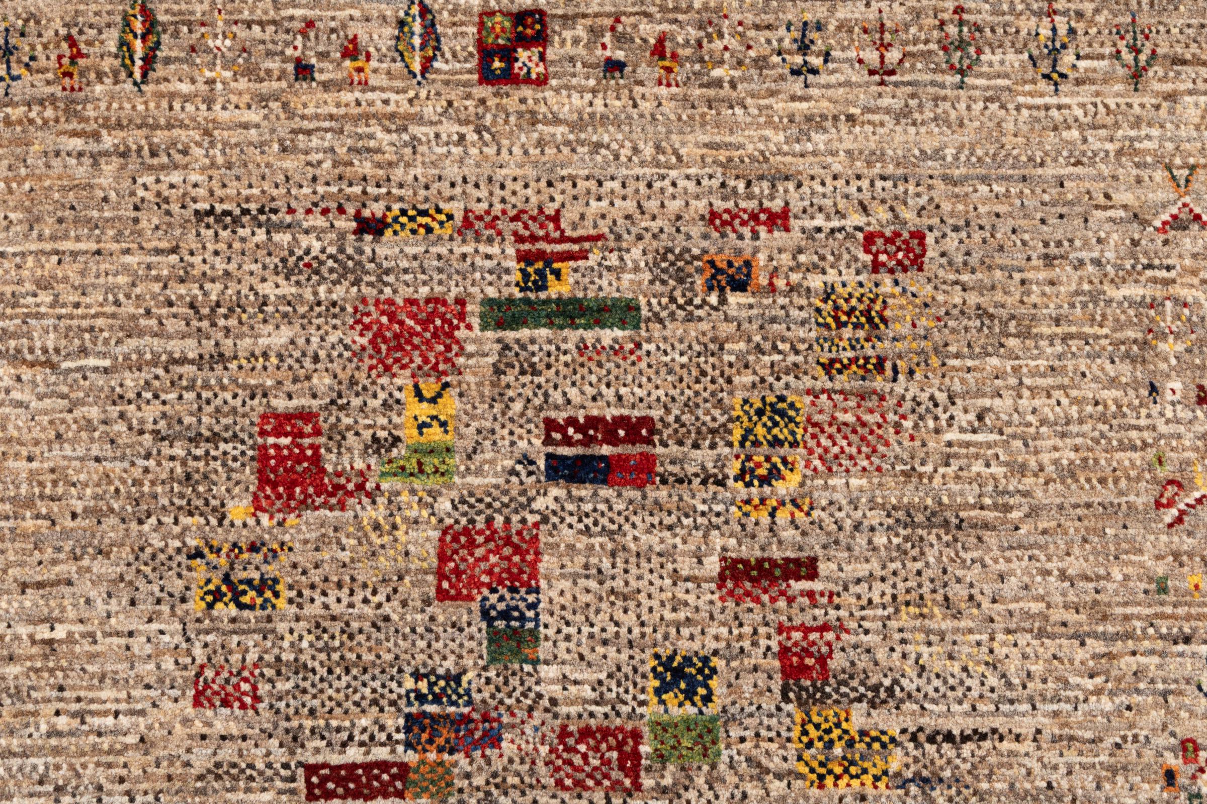 Dit prachtige tapijt is een Perzisch Gabbeh-tapijt en behoort daarom tot de hoogste kwaliteit Gabbeh-tapijten. De tapijten worden geknoopt door nomaden of semi-nomaden in Iran volgens traditioneel vakmanschap. De eenvoudige motieven en patronen zijn vooral geïnspireerd op de directe omgeving van de nomaden. Zo zijn er bijvoorbeeld kamelen, bomen of struiken te vinden op de traditionele tapijten. De Perzische Gabbeh-tapijten zijn gemaakt van wol van lokaal opgefokte kuddes schapen. De wol wordt dus meestal nog met de hand gesponnen. Elk van deze oosterse tapijten belichaamt dus een uniek karakter van de eeuwenoude cultuur.