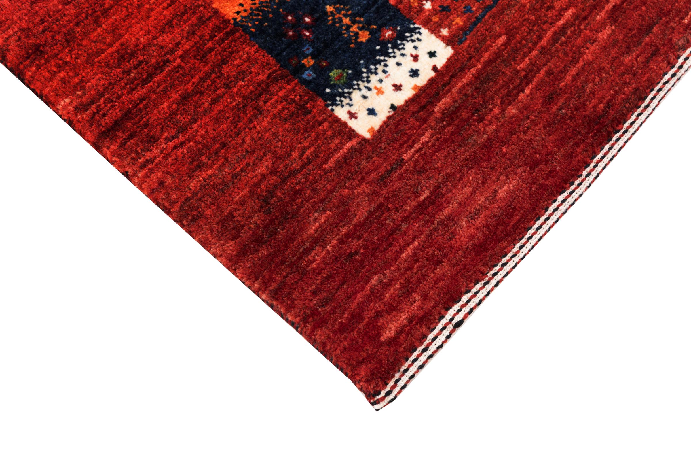 Een verfijning van de al bekende Gabbeh-tapijten: Dit is deze Perzische Gabbeh Loribaft. Het weet indruk te maken met zijn fijnere weefsel en prachtige ontwerp. Het werd door Loren in het zuiden van Perzië met de hand geknoopt van de beste handgesponnen schapenwol. Voor het verven van de wol worden uitsluitend pure plantaardige kleurstoffen gebruikt. Met dit vloerkleed haal je de hoogste standaard van een Gabbeh-tapijt in huis.