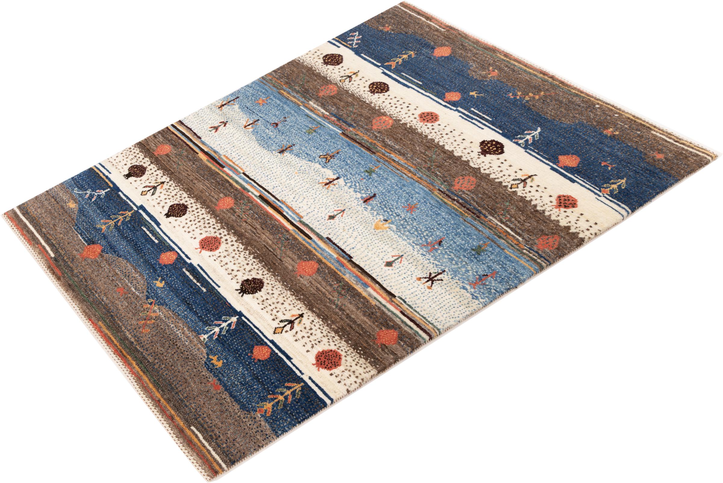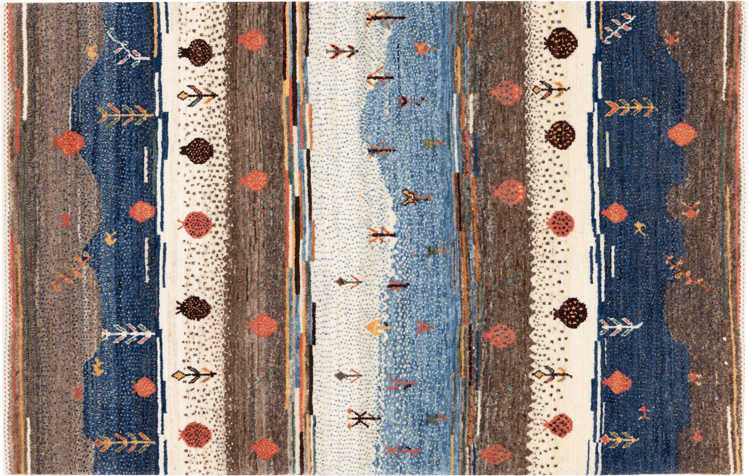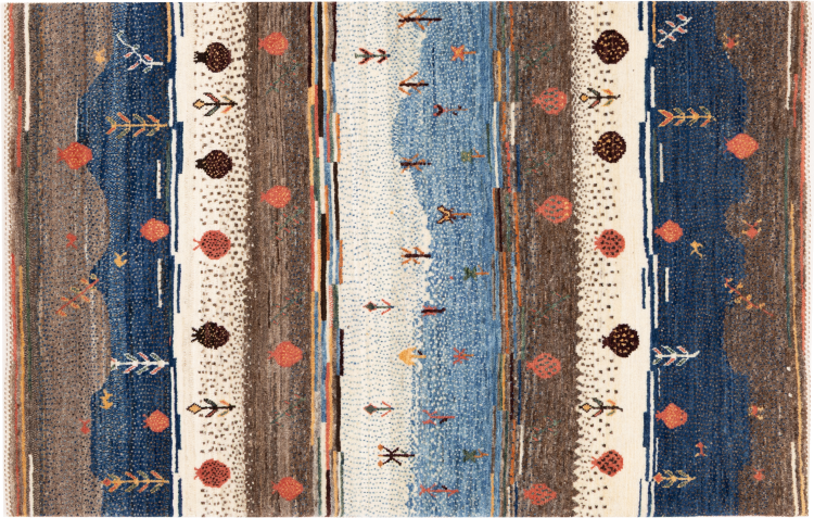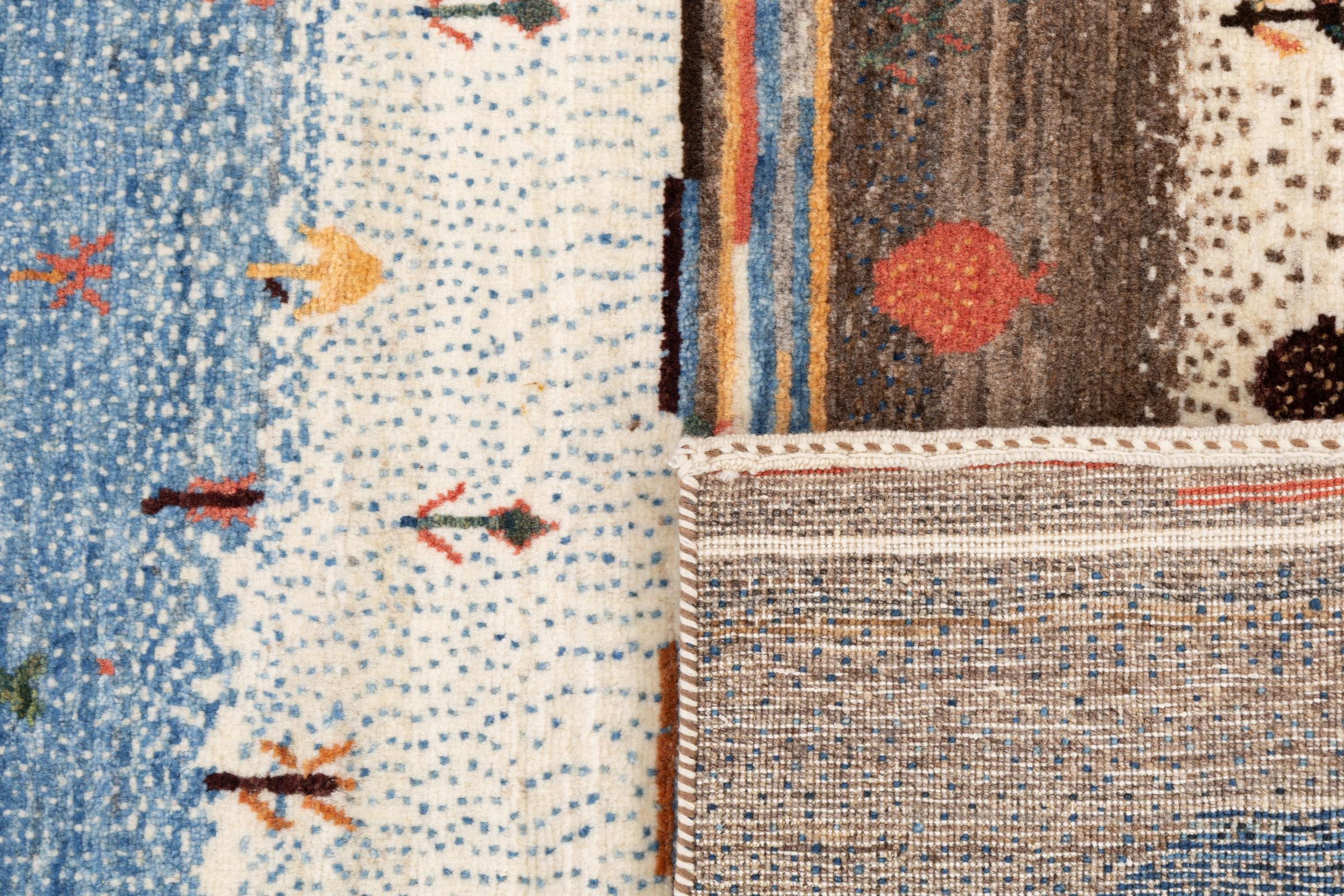 Dit prachtige tapijt is een Perzisch Gabbeh-tapijt en behoort daarom tot de hoogste kwaliteit Gabbeh-tapijten. De tapijten worden geknoopt door nomaden of semi-nomaden in Iran volgens traditioneel vakmanschap. De eenvoudige motieven en patronen zijn vooral geïnspireerd op de directe omgeving van de nomaden. Zo zijn er bijvoorbeeld kamelen, bomen of struiken te vinden op de traditionele tapijten. De Perzische Gabbeh-tapijten zijn gemaakt van wol van lokaal opgefokte kuddes schapen. De wol wordt dus meestal nog met de hand gesponnen. Elk van deze oosterse tapijten belichaamt dus een uniek karakter van de eeuwenoude cultuur.