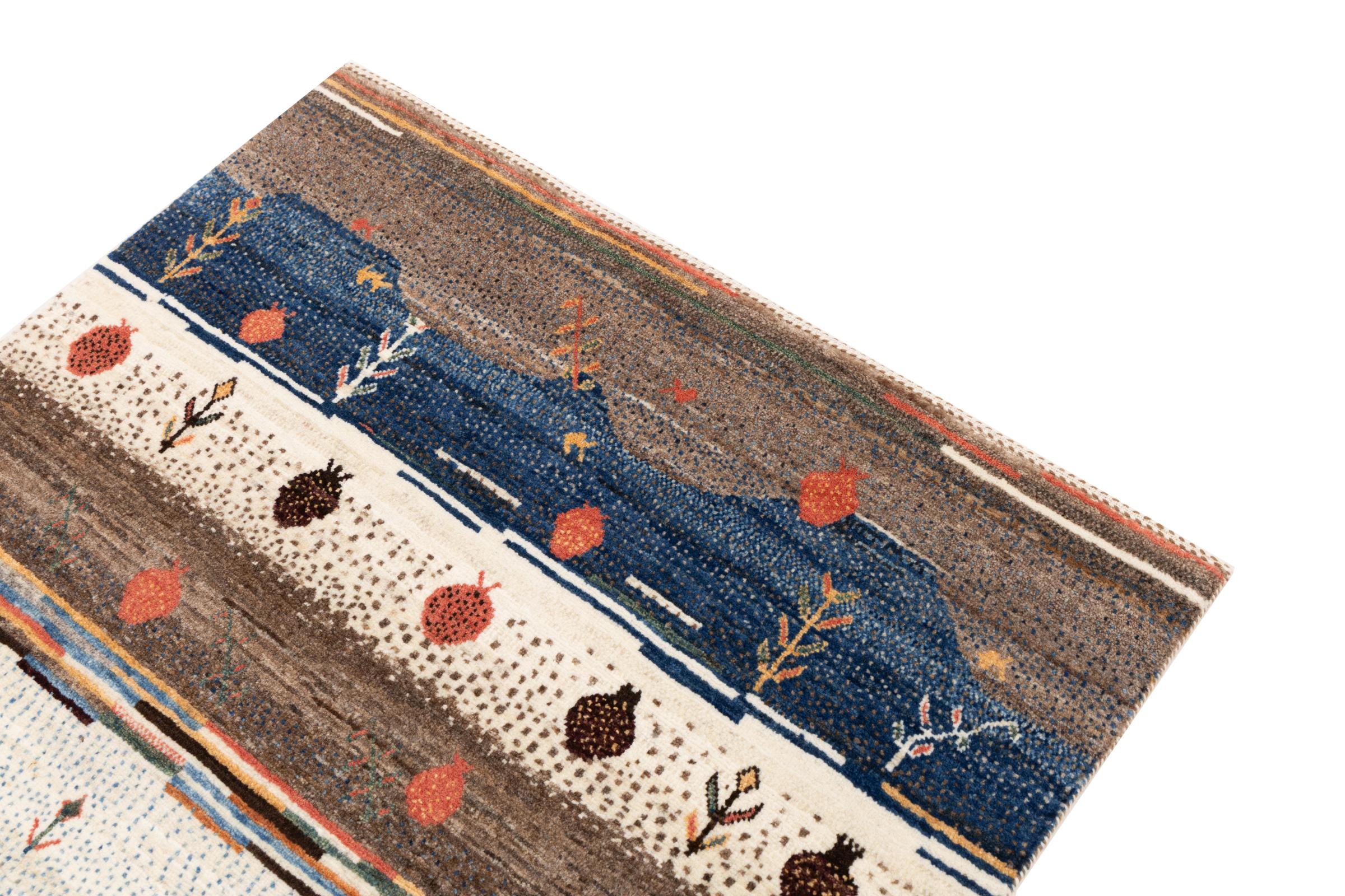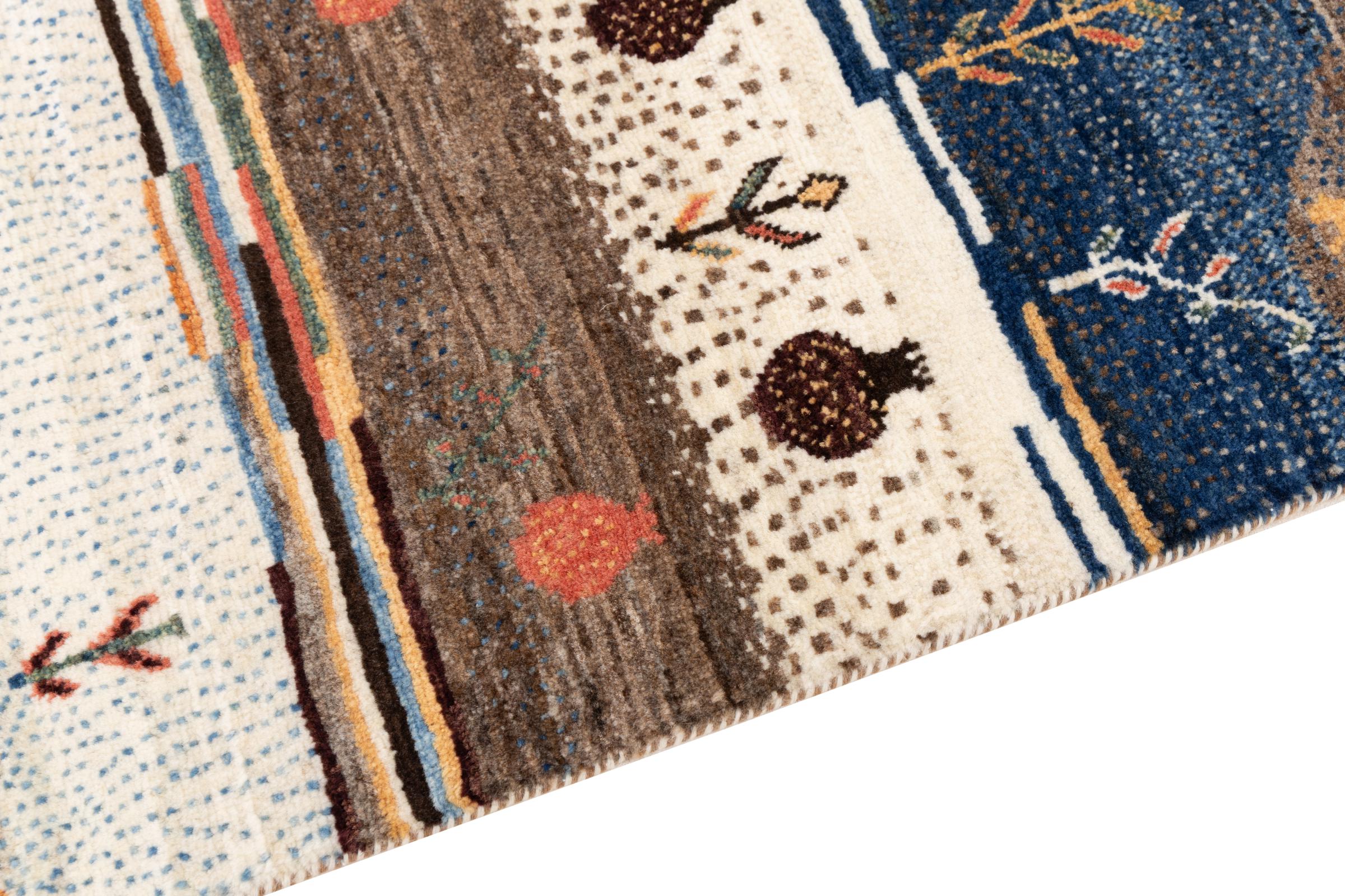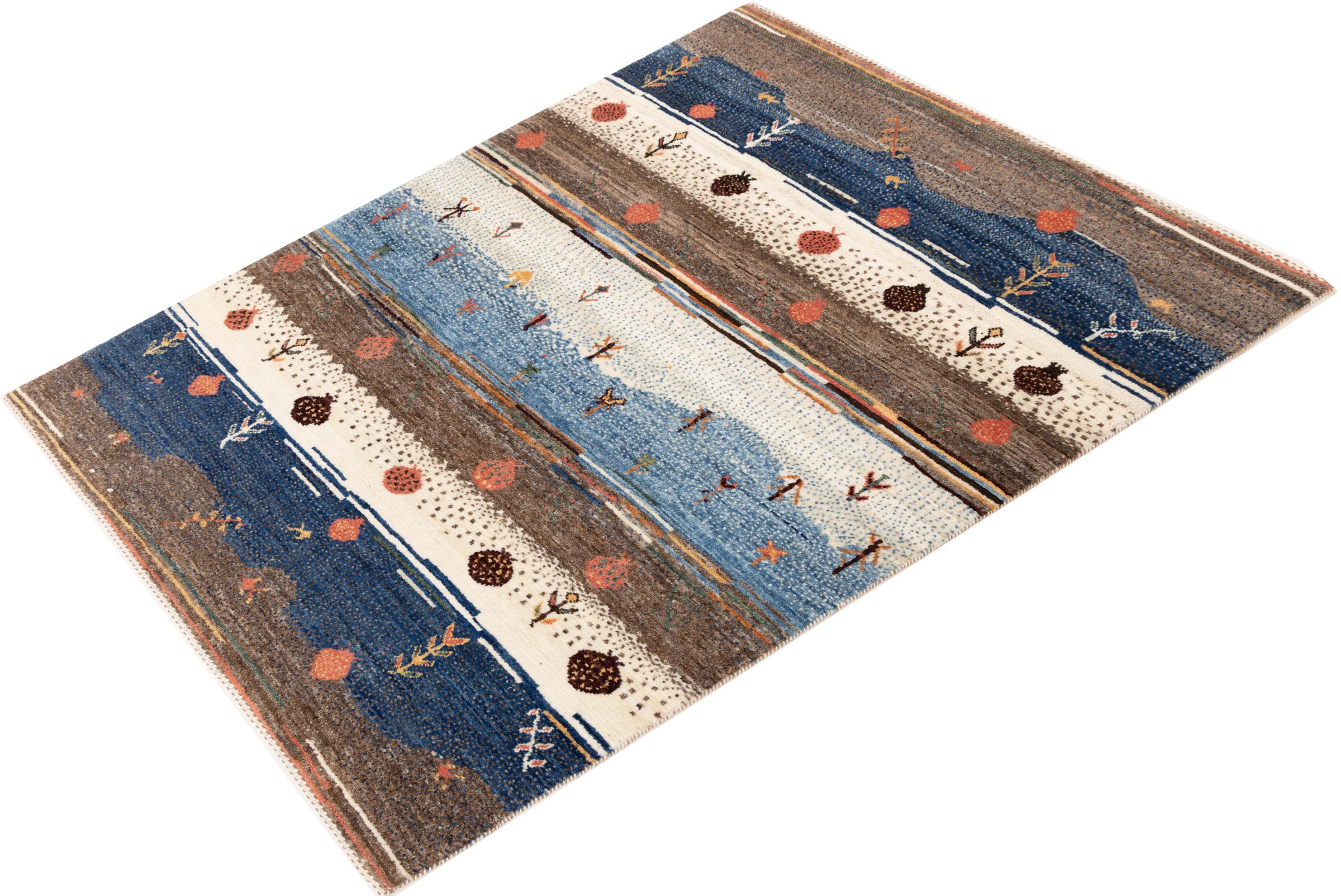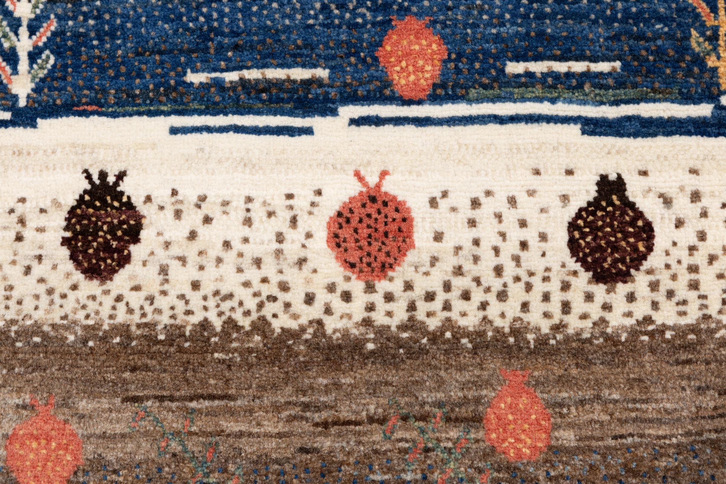 Een verfijning van de al bekende Gabbeh-tapijten: Dit is deze Perzische Gabbeh Loribaft. Het weet indruk te maken met zijn fijnere weefsel en prachtige ontwerp. Het werd door Loren in het zuiden van Perzië met de hand geknoopt van de beste handgesponnen schapenwol. Voor het verven van de wol worden uitsluitend pure plantaardige kleurstoffen gebruikt. Met dit vloerkleed haal je de hoogste standaard van een Gabbeh-tapijt in huis.